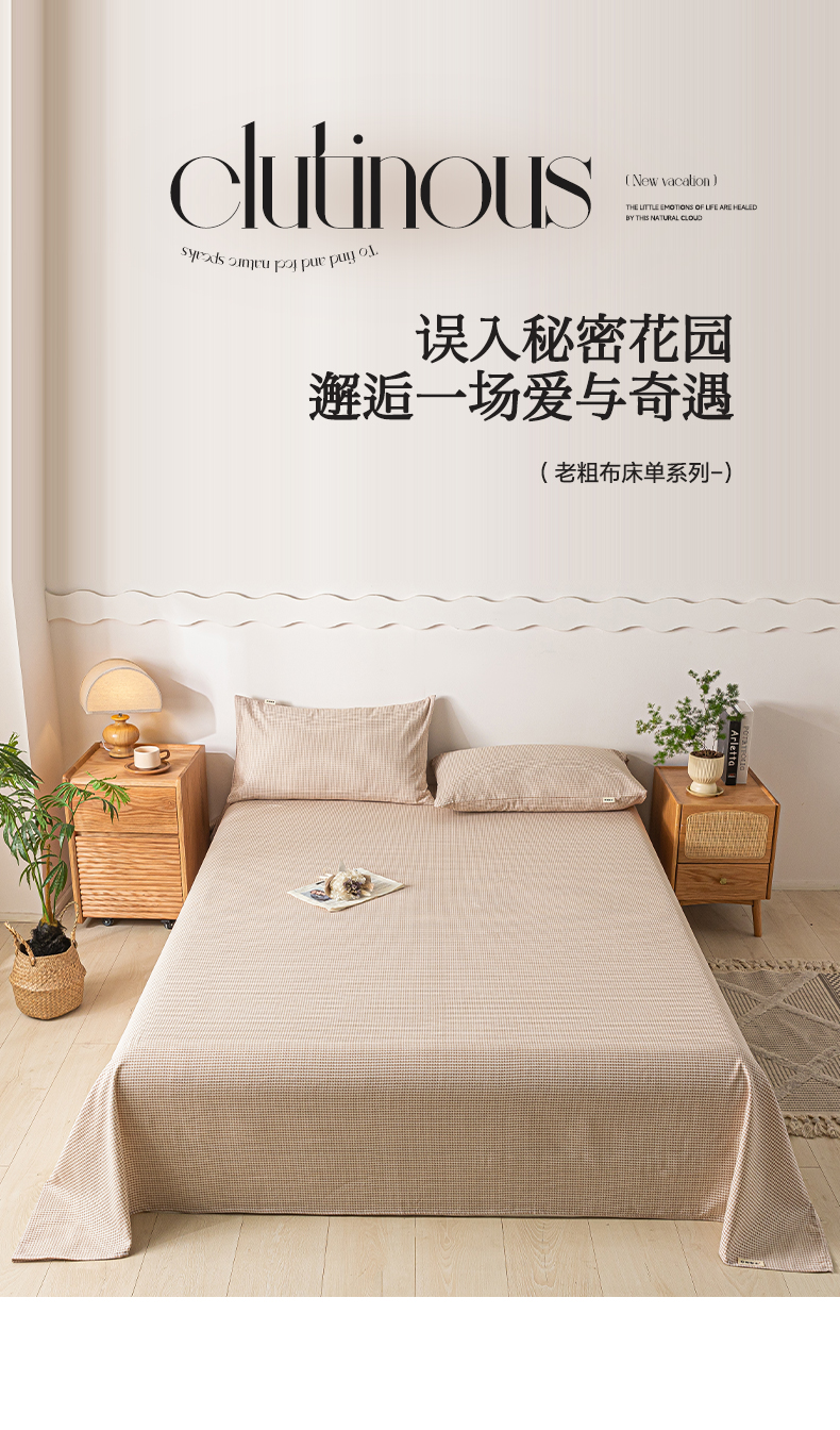 阿亮家居 2025新款原棉老粗布床单系列 绿小格