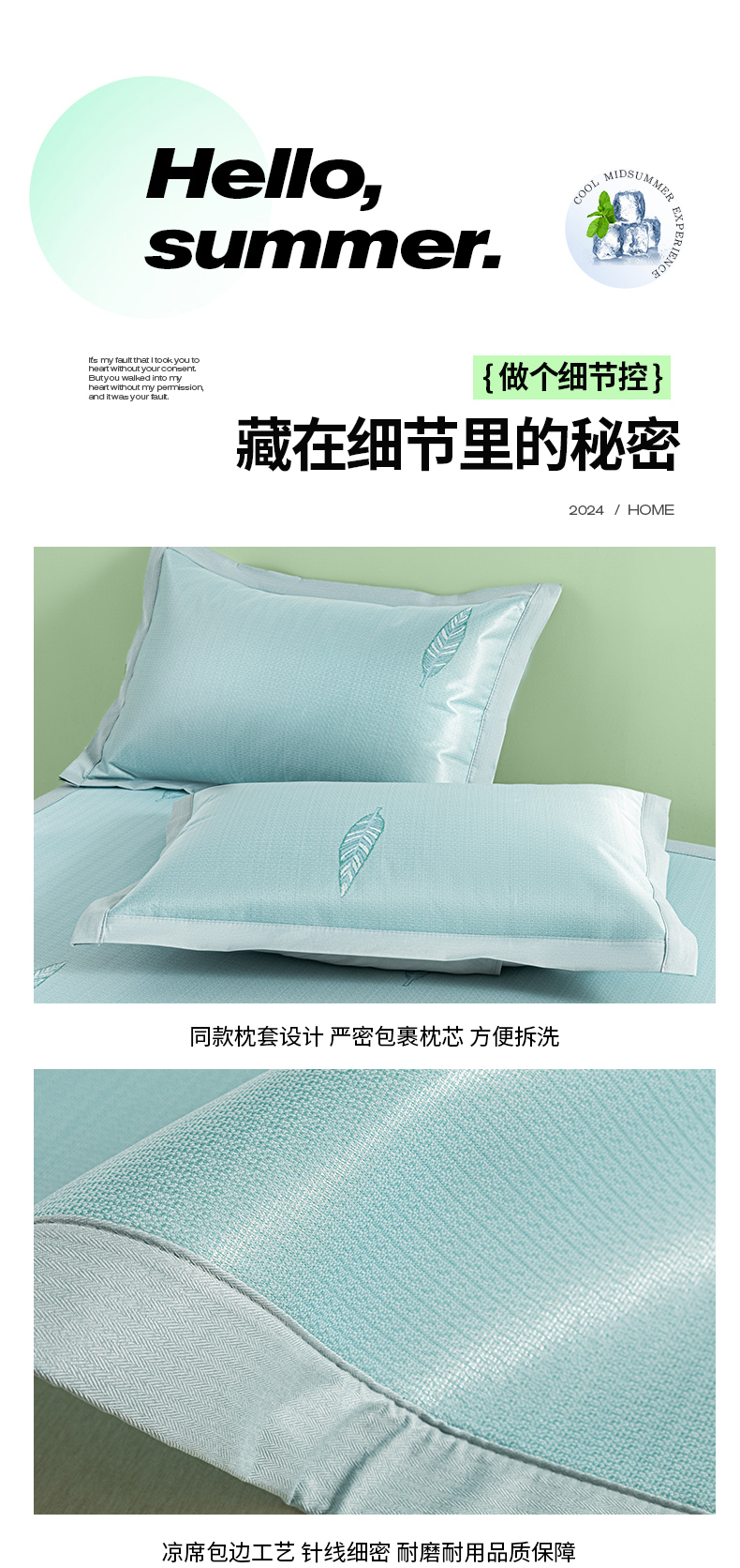 商品名称:阿亮家居 2025新款凉席碳光席冰丝席三件套 叶语芊芊-绿-绿