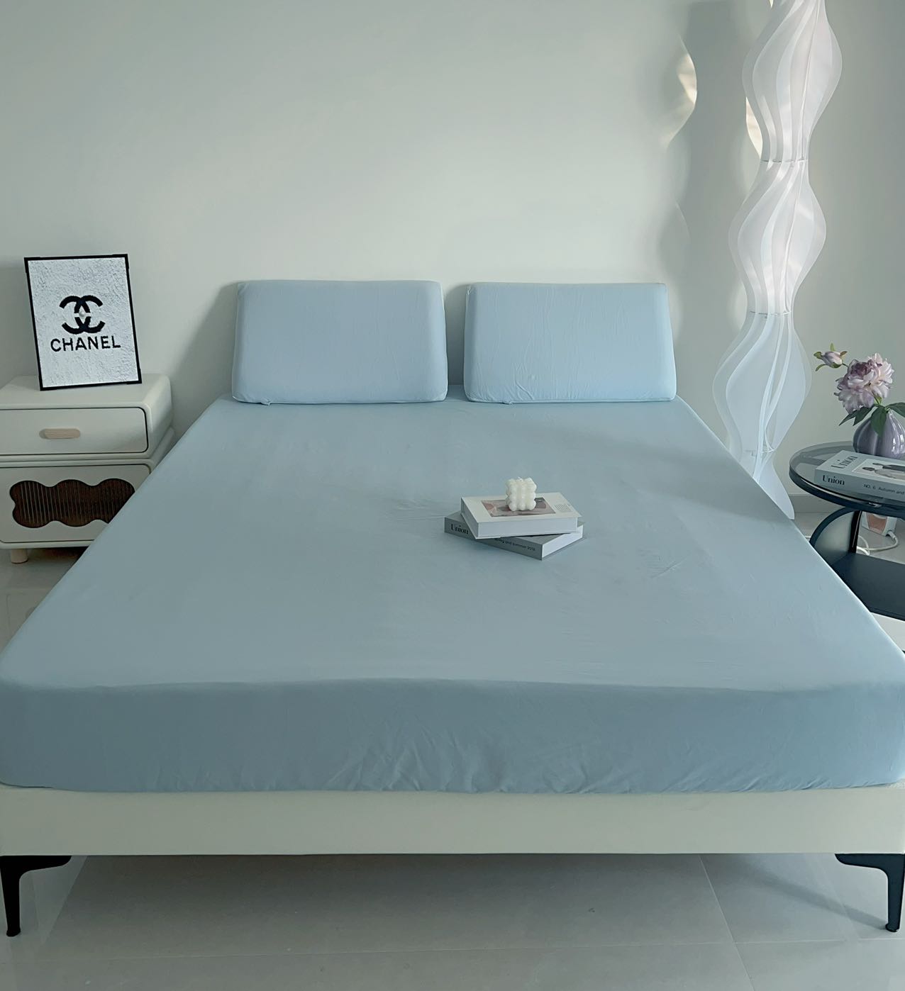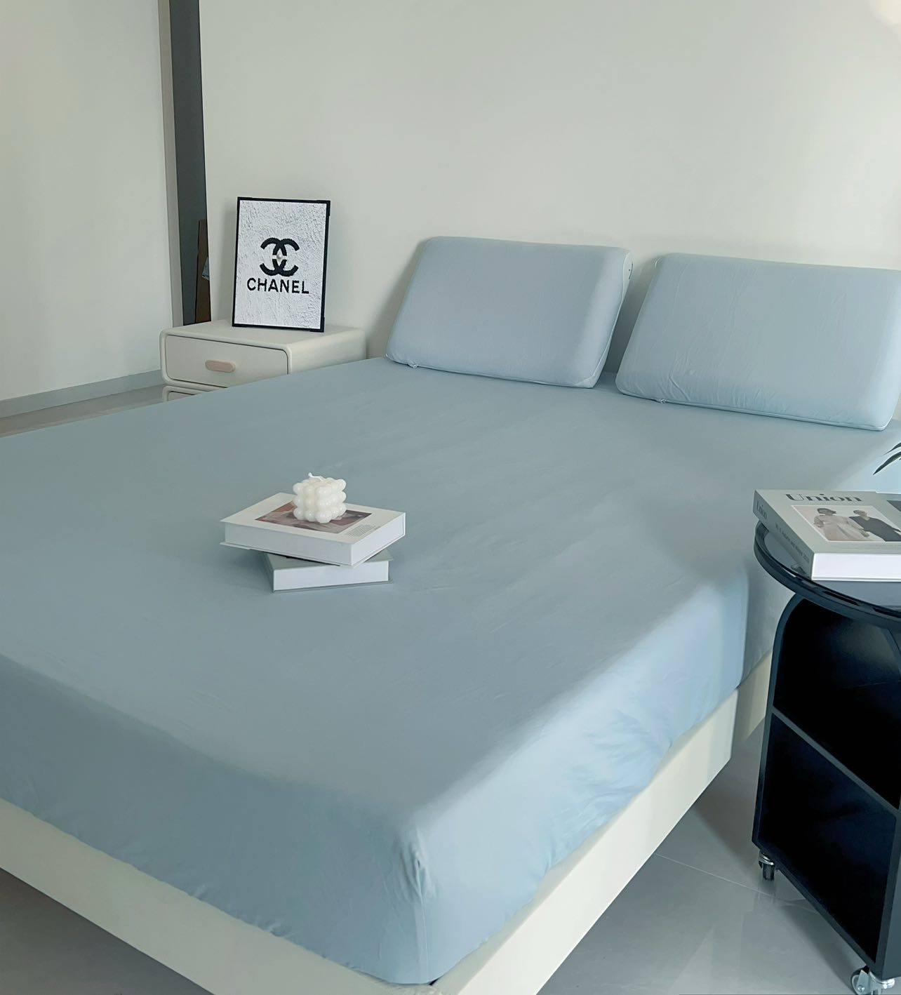 兜米家居 2025新款纯色全棉床笠 静湖蓝