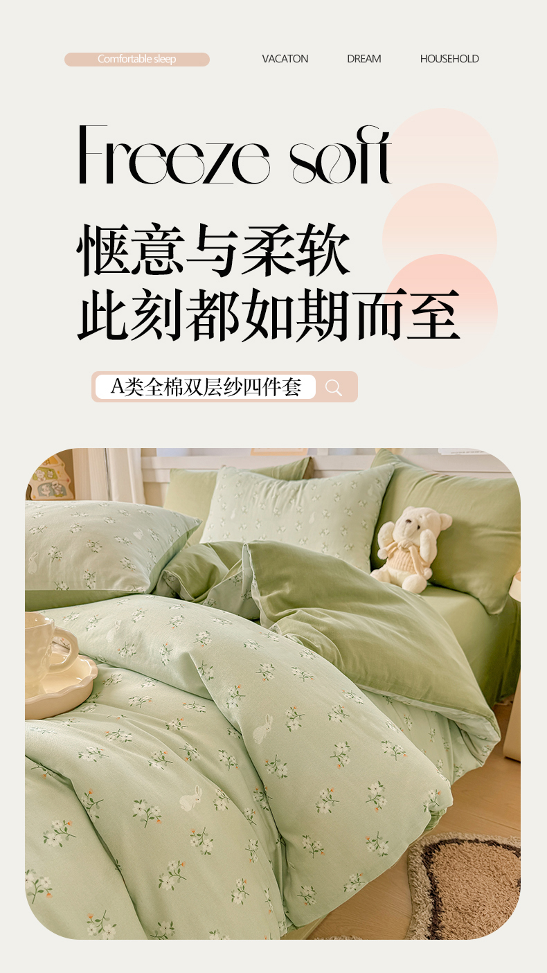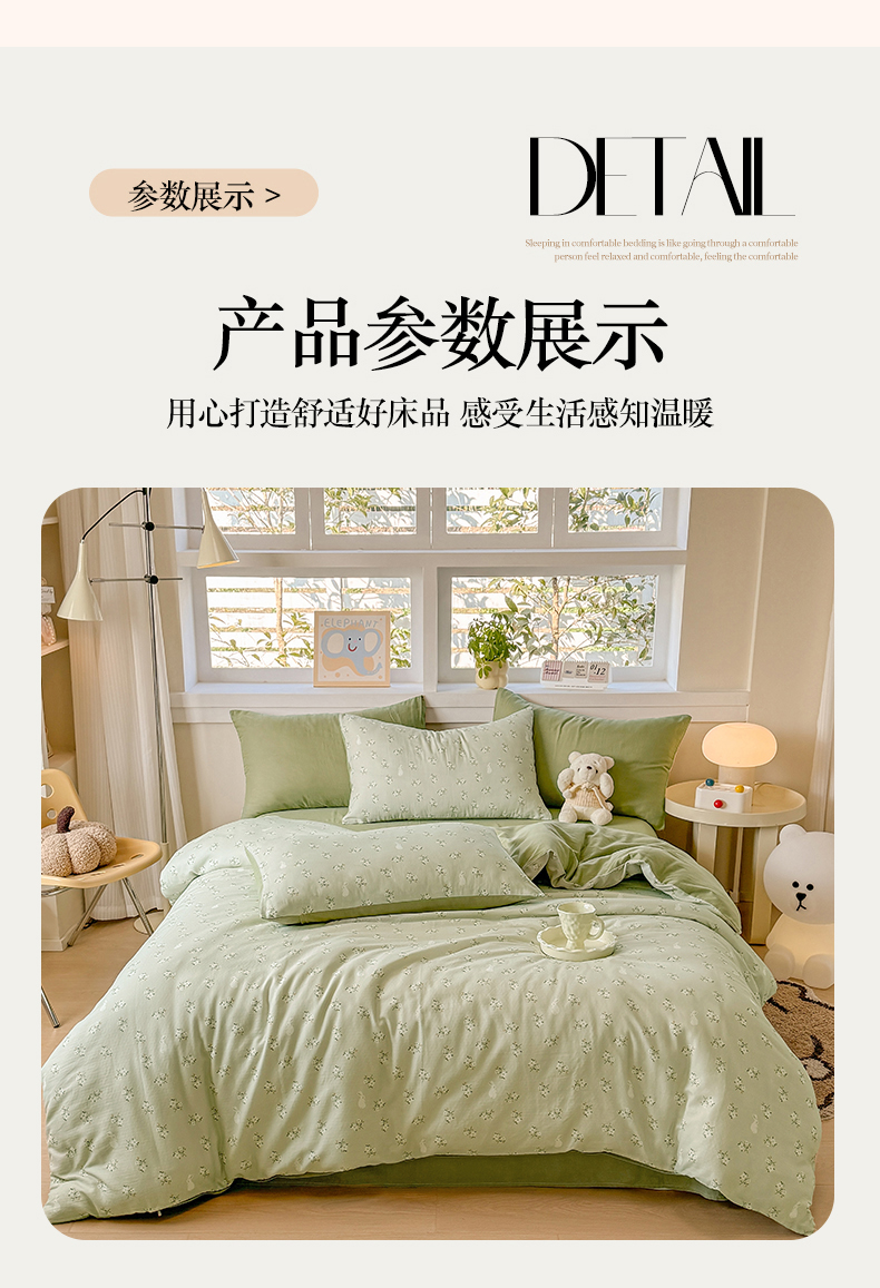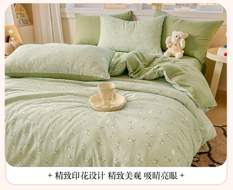 当前位置: 91家纺网 > 商品网购 > 床品套件 > 四件套 > 其它四件套 > 2025新款40s全棉双层纱圆角吊边款四件套 白月光-绿
