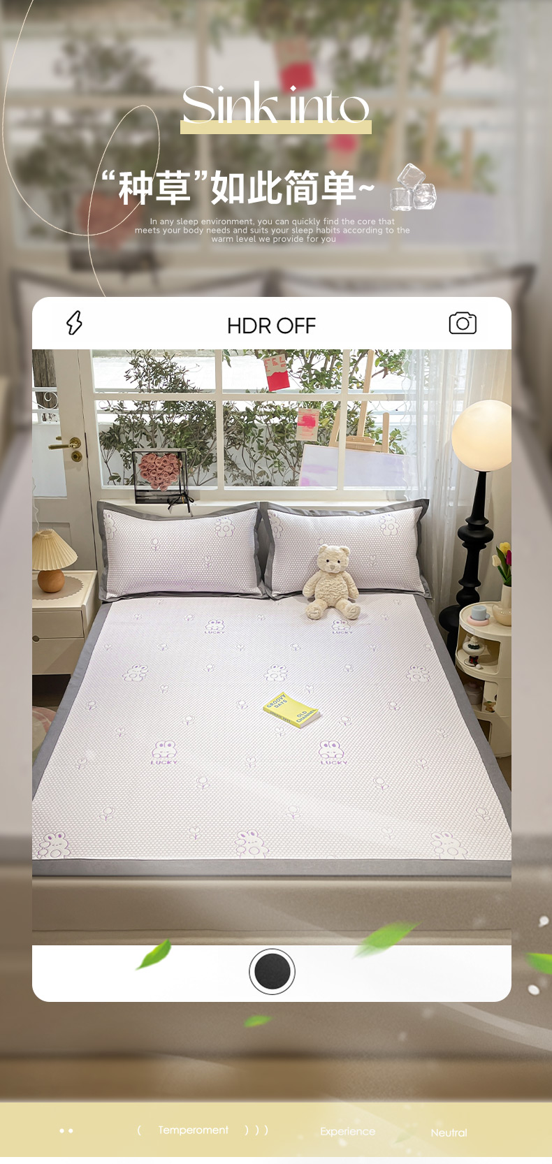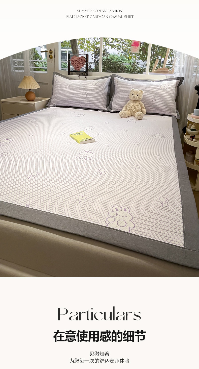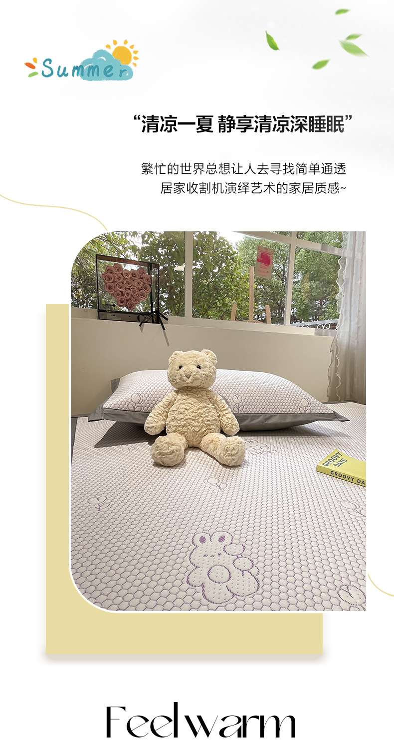 商品名称:雅居纺家纺 2025春夏新款A类加厚三明治底提花凉感席床席款 小兔郁金香-蓝
