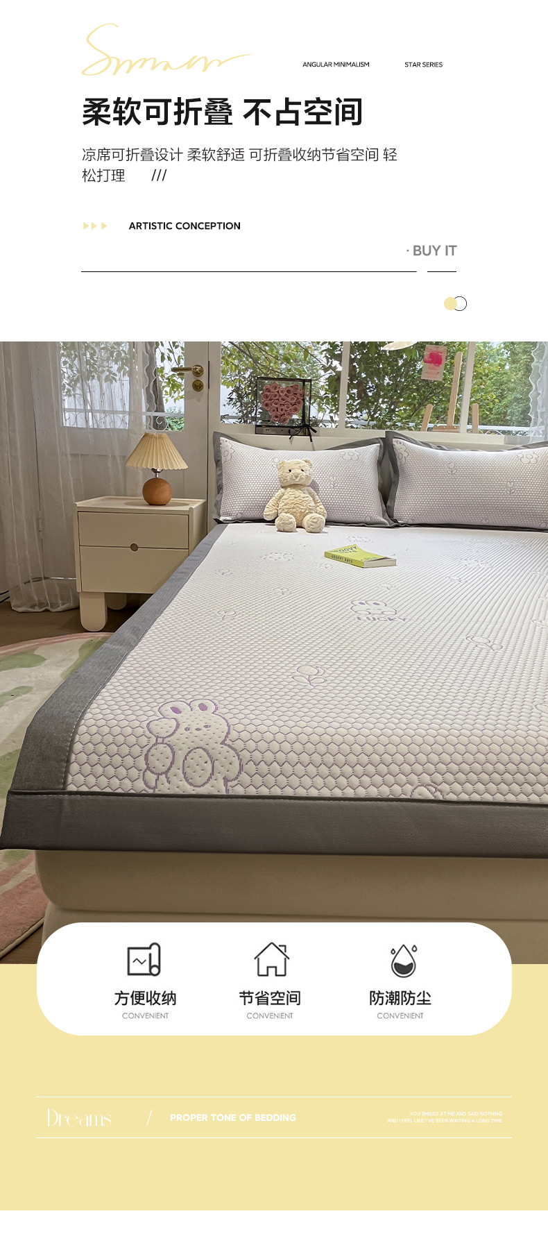 雅居纺家纺 2025春夏新款A类加厚三明治底提花凉感席床席款 小兔郁金香-蓝