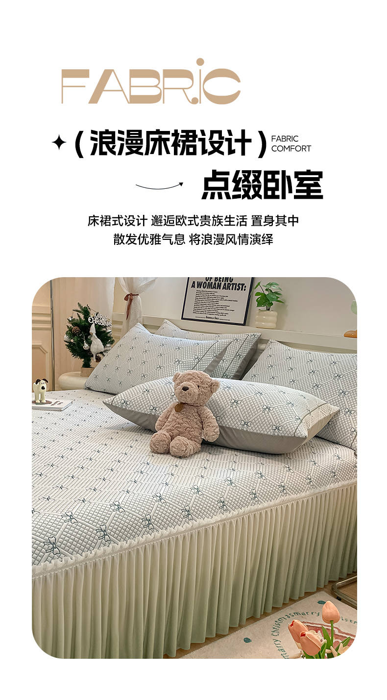 商品名称:雅居纺家纺 2025新款加厚三明治底床裙款凉感席 蝴蝶结爱恋-绿