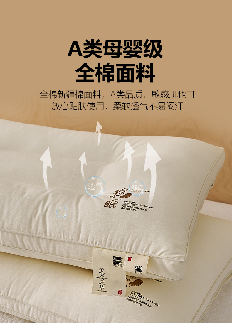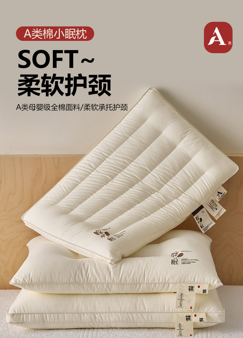 当前位置: 91家纺网 > 商品网购 > 枕头/枕芯/保健枕/颈椎枕 > 普通枕芯 > 乐可2025春夏新款A类棉小眠枕枕头枕芯 A类棉小眠-低平枕/一对