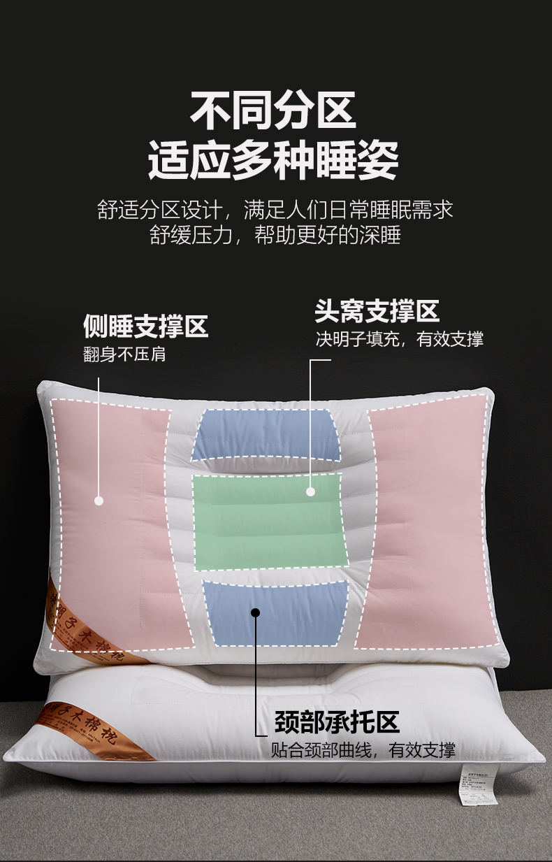 (总)乐可 2025新款分区两用牵引枕全棉双向枕 枕头枕芯,分区两用牵引枕