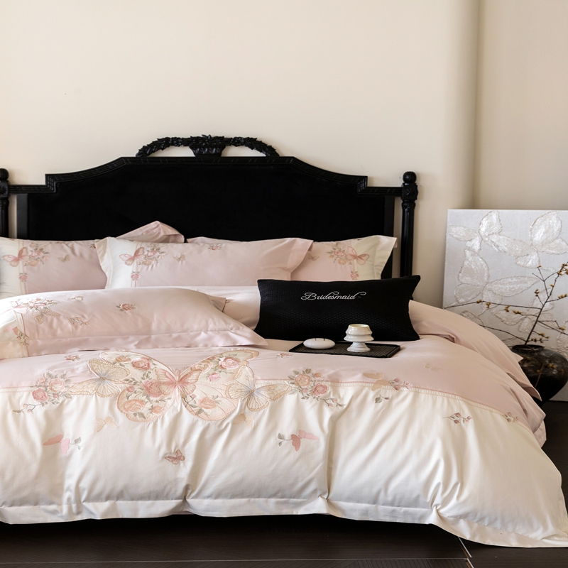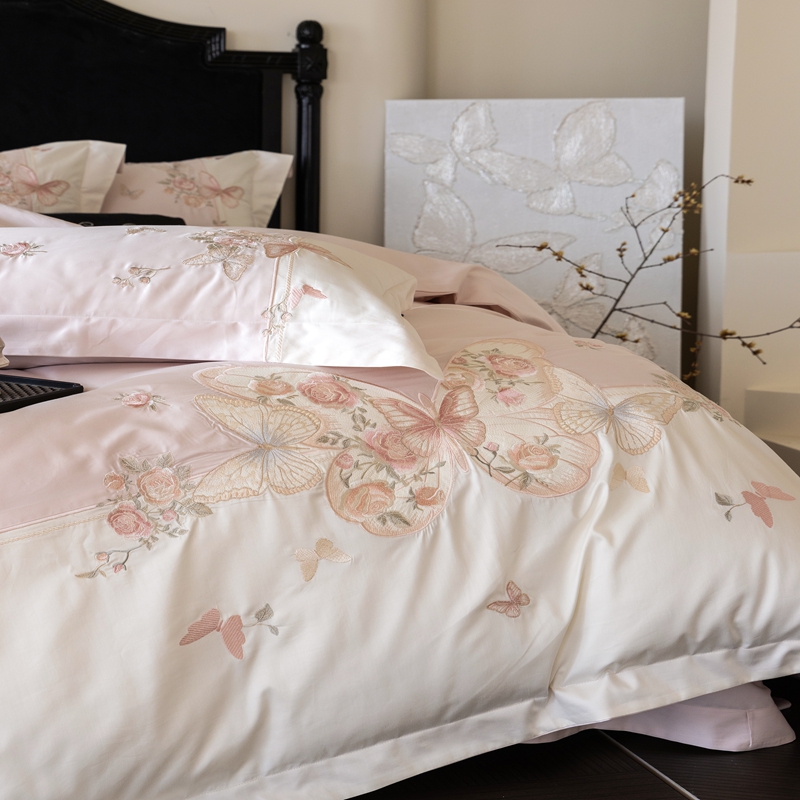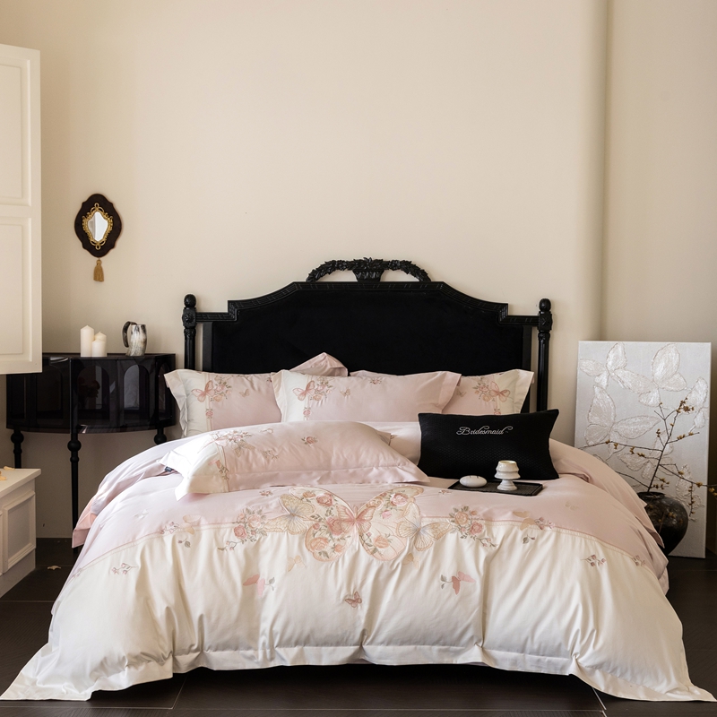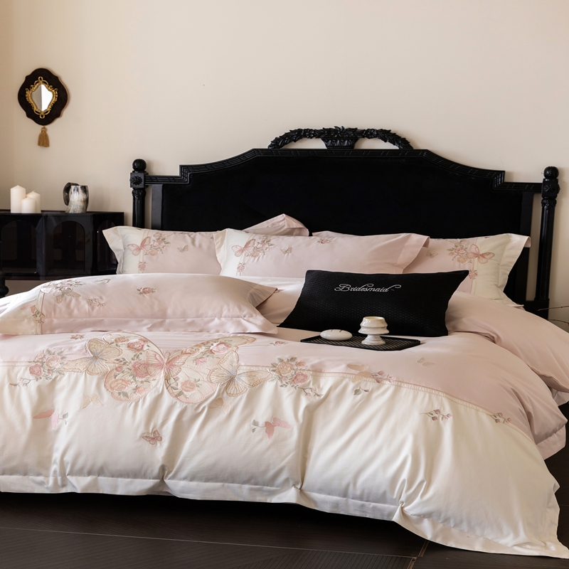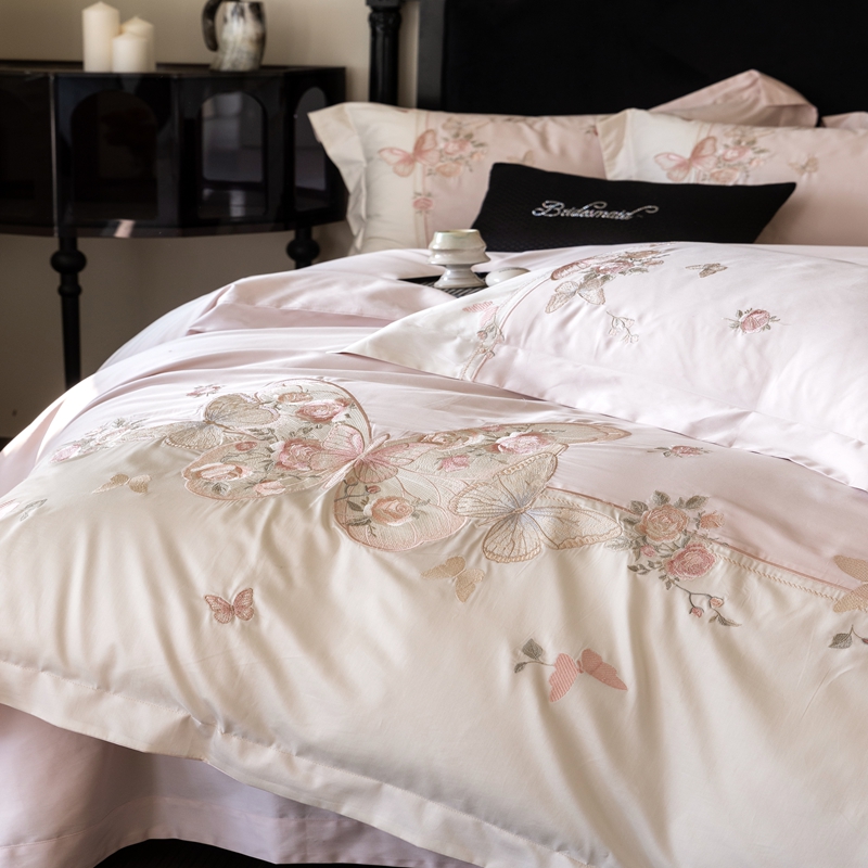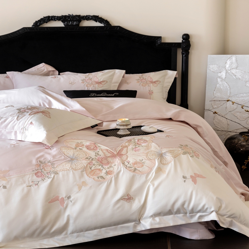 馨蕊家居 2025新款高定全棉绣花四件套 茉町-蔷薇粉