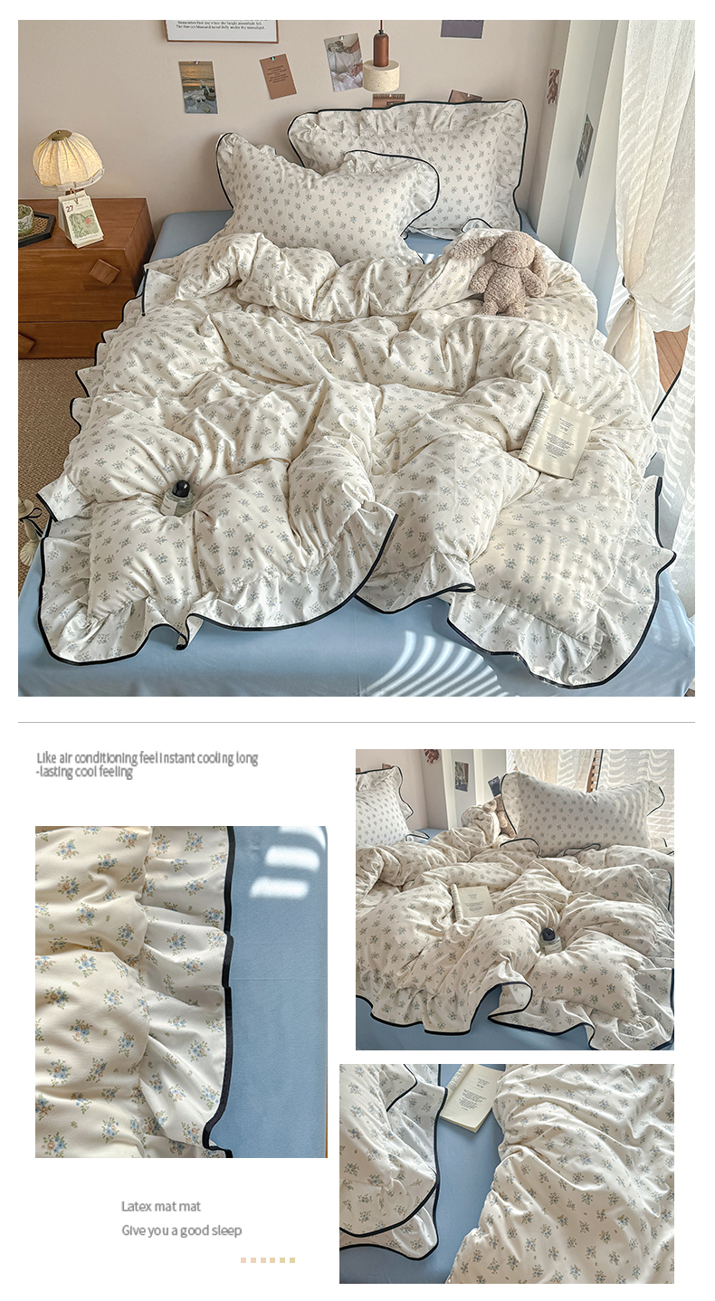 当前位置: 91家纺网 > 商品网购 > 床品套件 > 四件套 > 双层纱四件套 > 麦瑞家纺 2025新款A类韩版花边针织双层纱四件套 蔚蓝