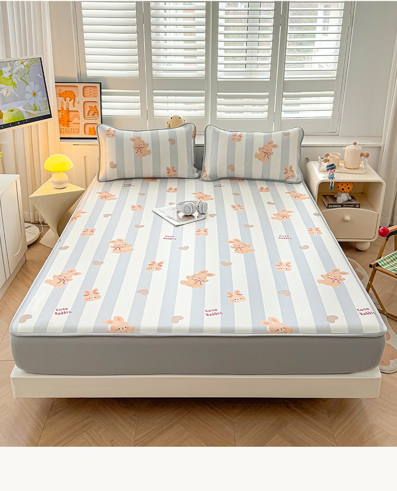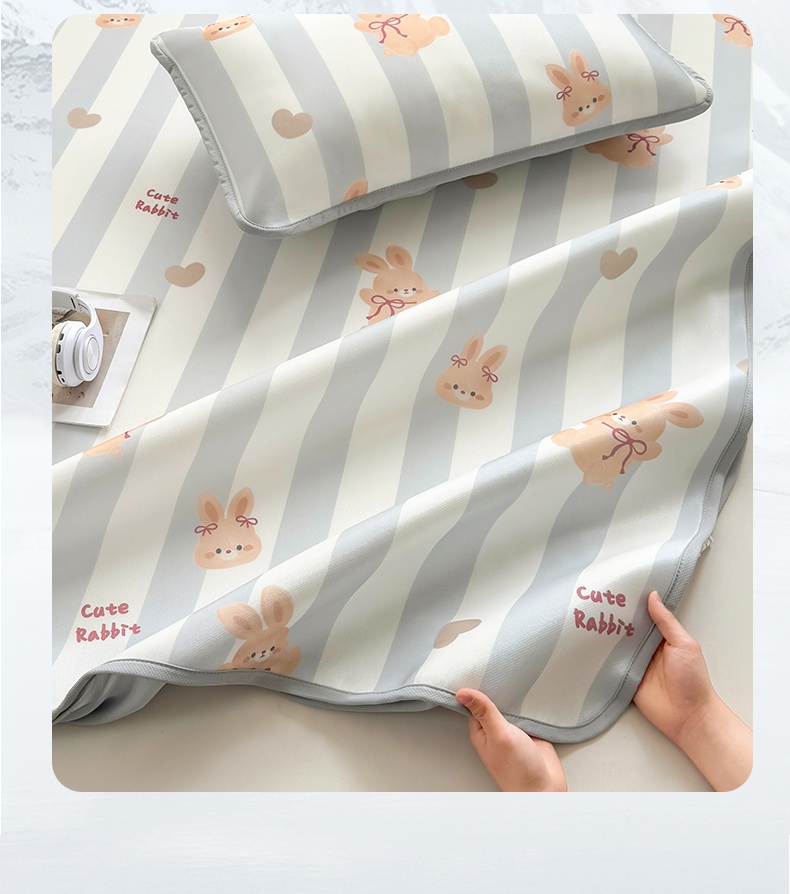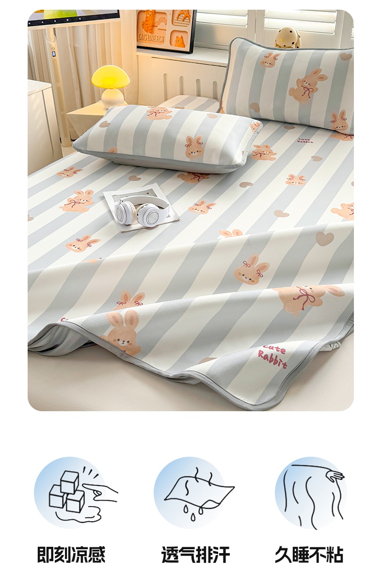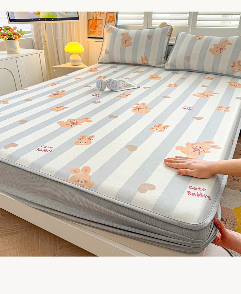 当前位置: 91家纺网 > 商品网购 > 床上用品 > 凉席 > 冰丝席 > 雯豆家纺 2025夏季新品碳光冰丝凉席床笠款三件套印花小清新绑带冰丝席床罩 碳光冰丝席-床笠款-条纹兔