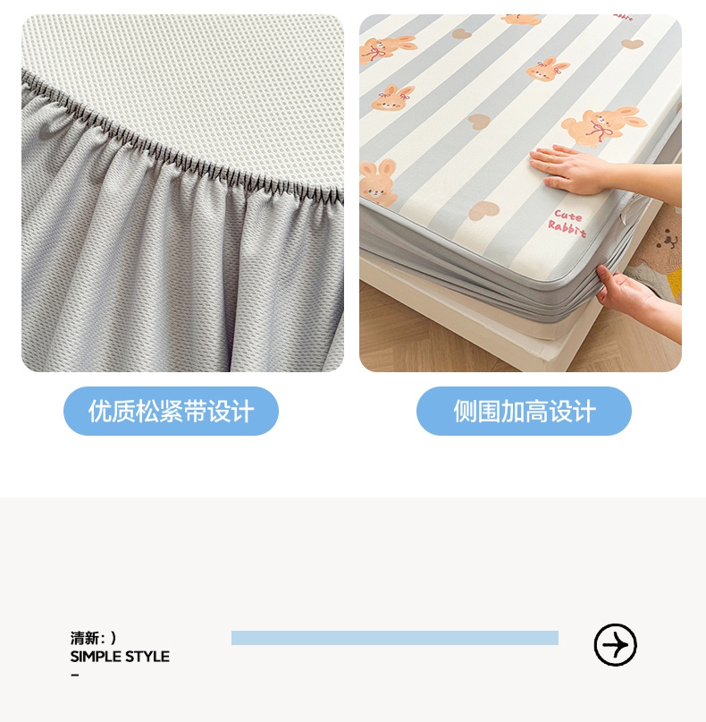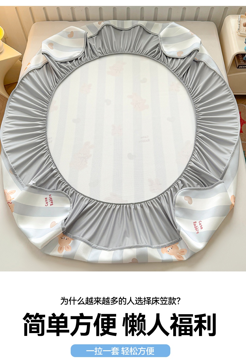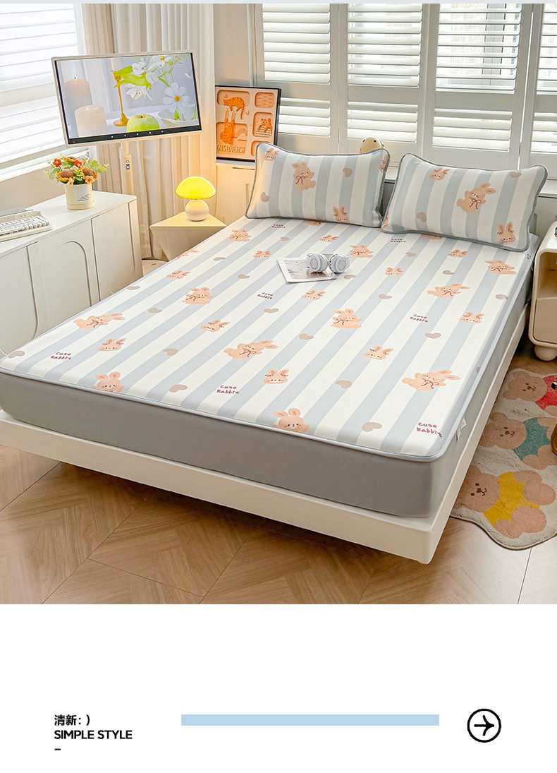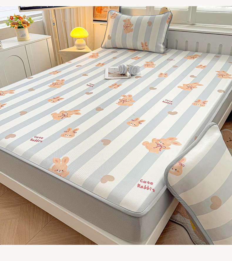 当前位置: 91家纺网 > 商品网购 > 床上用品 > 凉席 > 冰丝席 > 雯豆家纺 2025夏季新品碳光冰丝凉席床笠款三件套印花小清新绑带冰丝席床罩 碳光冰丝席-床笠款-条纹兔