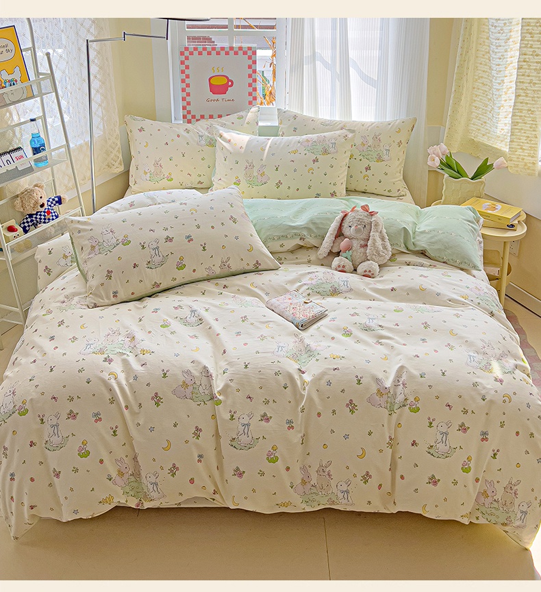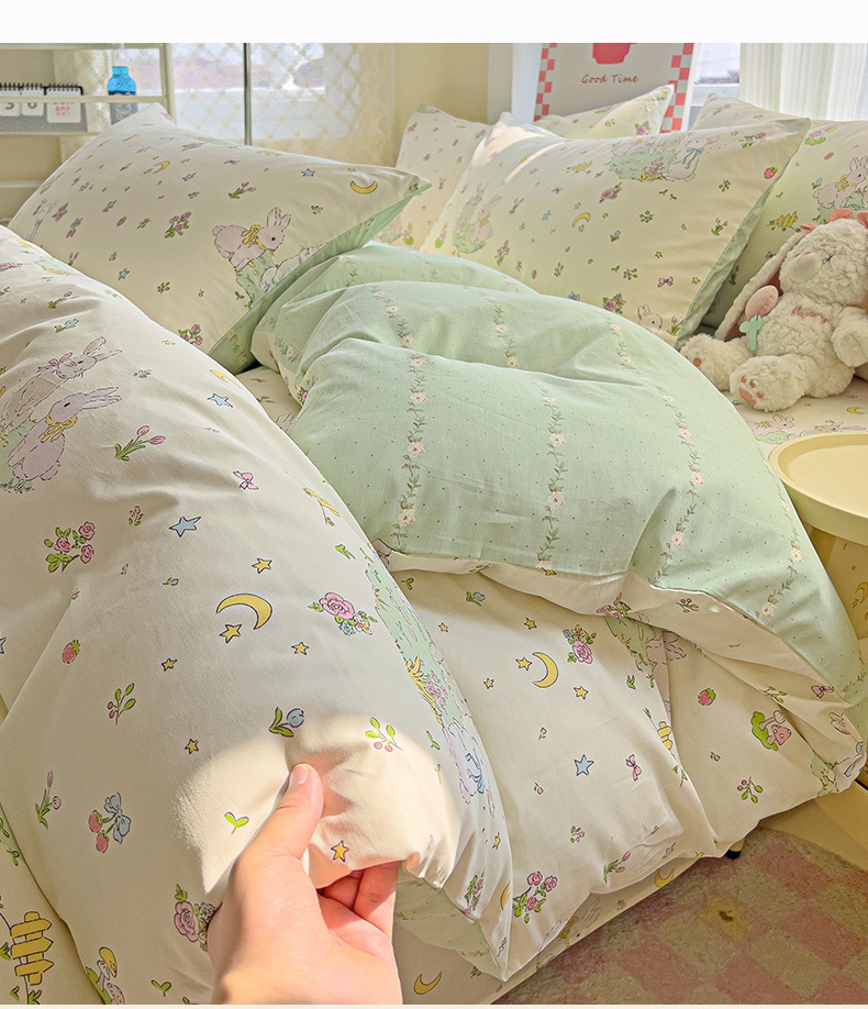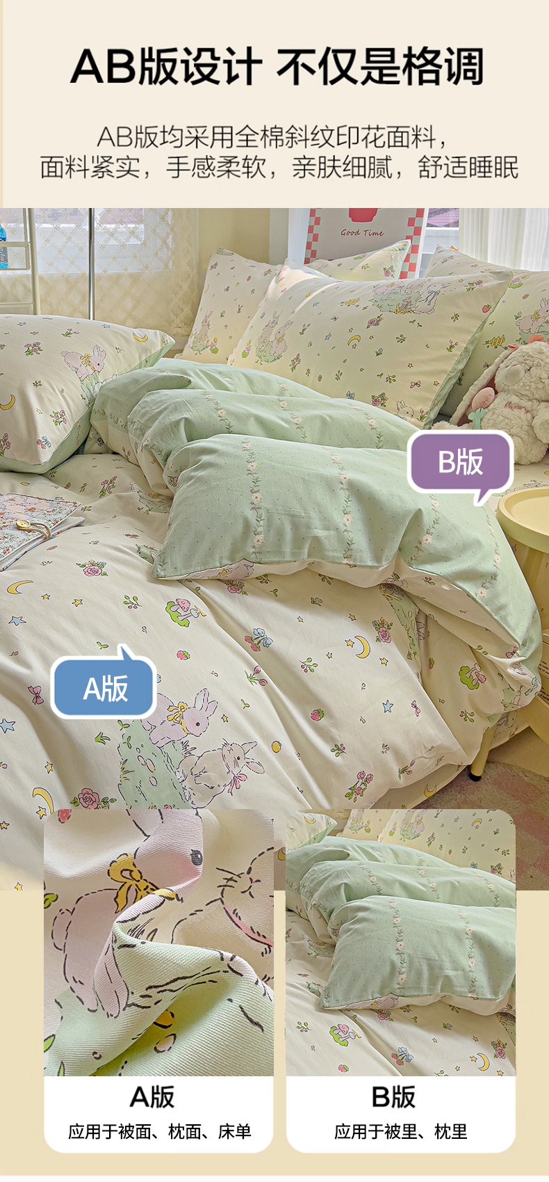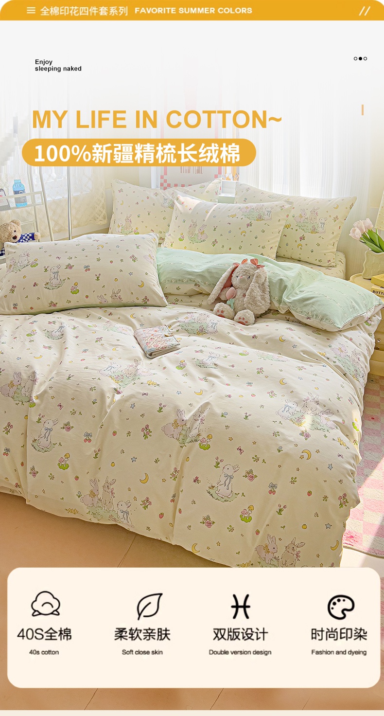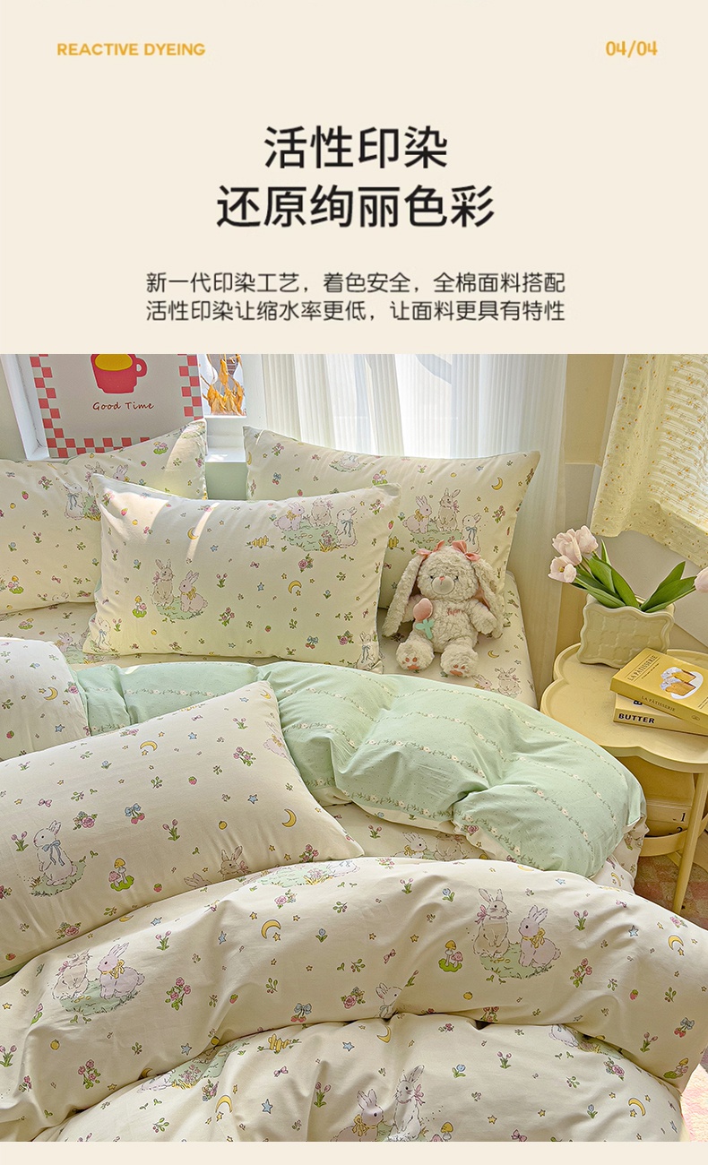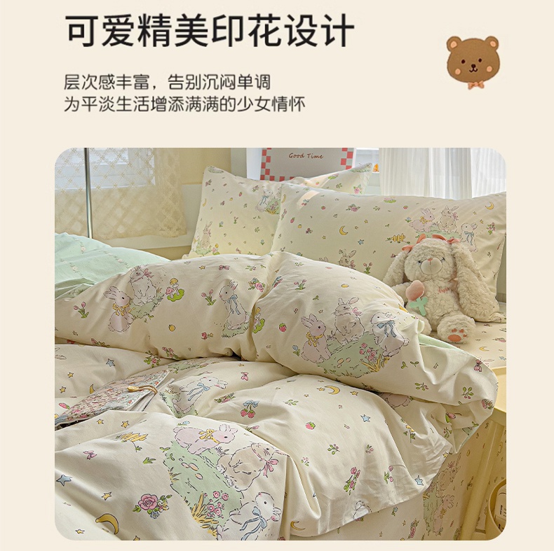 棉生活家纺 2025新款ins全棉小清新系列四件套 月下小兔