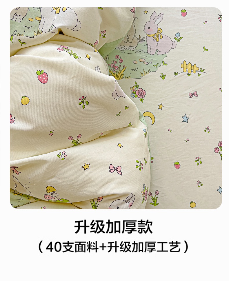 商品名称:棉生活家纺 2025新款ins全棉小清新系列四件套 月下小兔