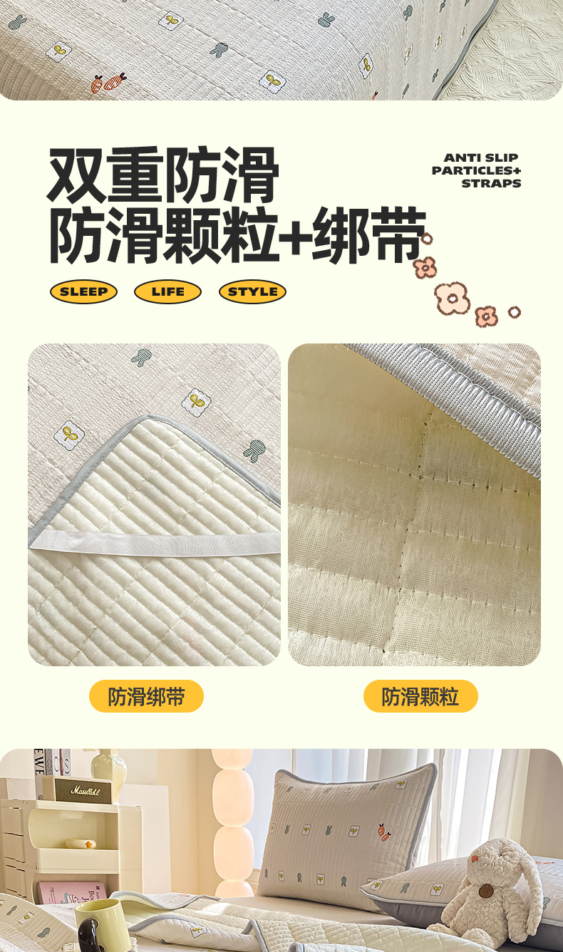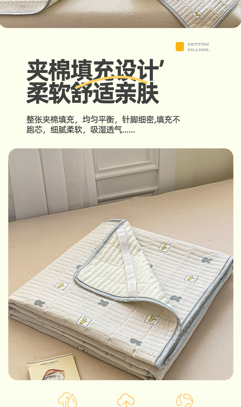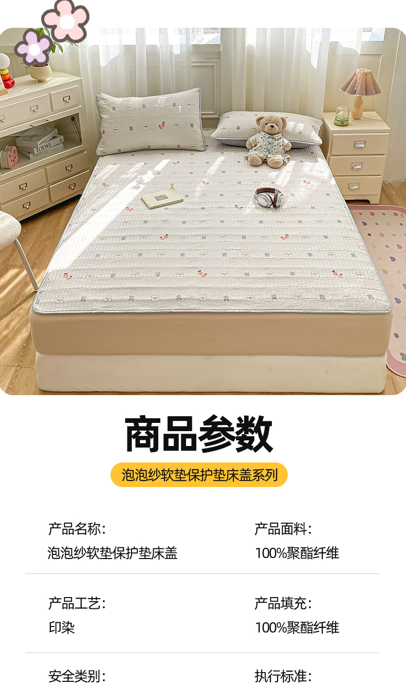 • 91家纺网 家纺一手货源 找家纺 美克家居 2025新款泡泡纱软垫床护垫床褥子床垫小清新印花床盖 小兰瓜床盖款