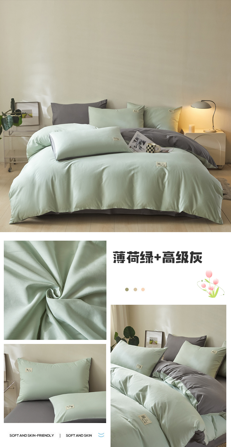 当前位置: 91家纺网 > 商品网购 > 床品套件 > 四件套 > 全棉普通四件套 > 莱通家纺 2025新款纯色双拼四件套 薄荷绿+高级灰