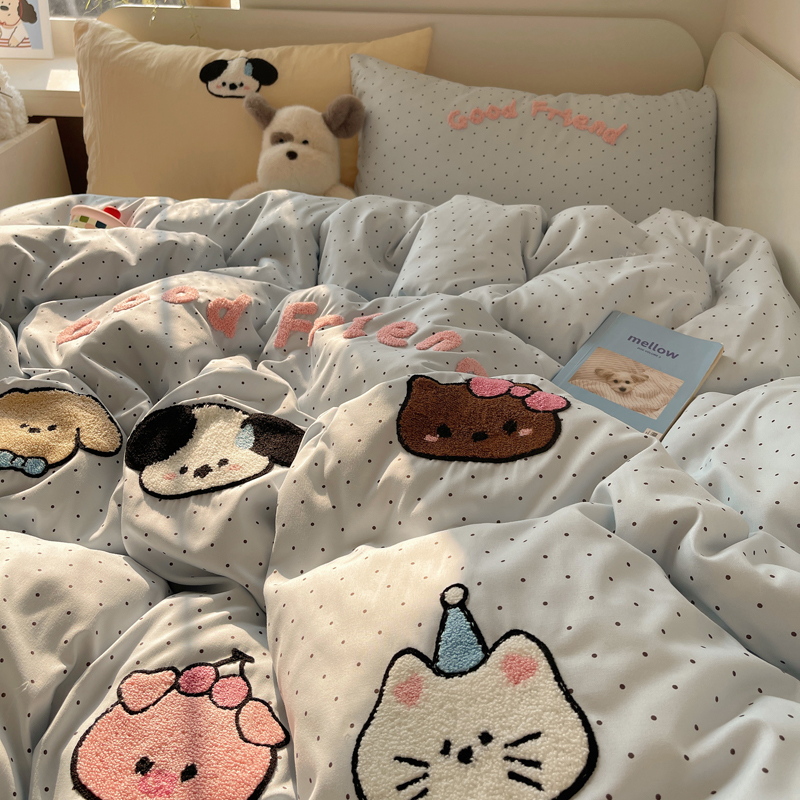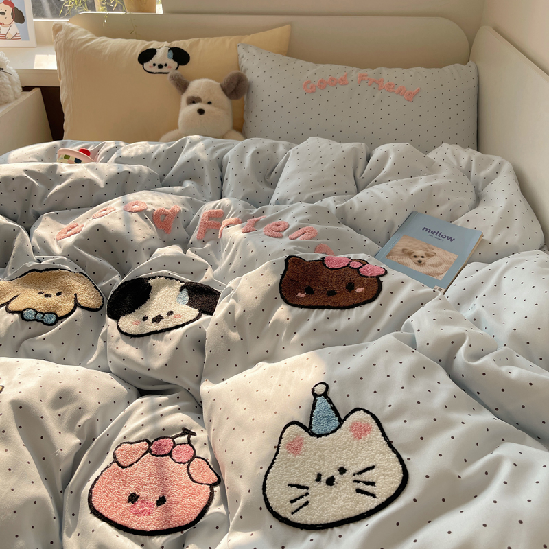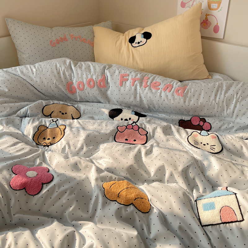 当前位置: 91家纺网 > 商品网购 > 床品套件 > 四件套 > 其它四件套 > 顾里家纺 2025新款韩系童趣毛巾绣云朵棉套件 好友派对蓝
