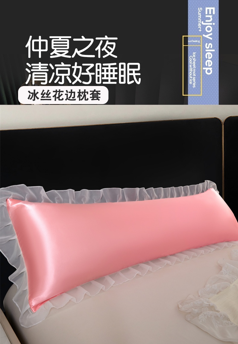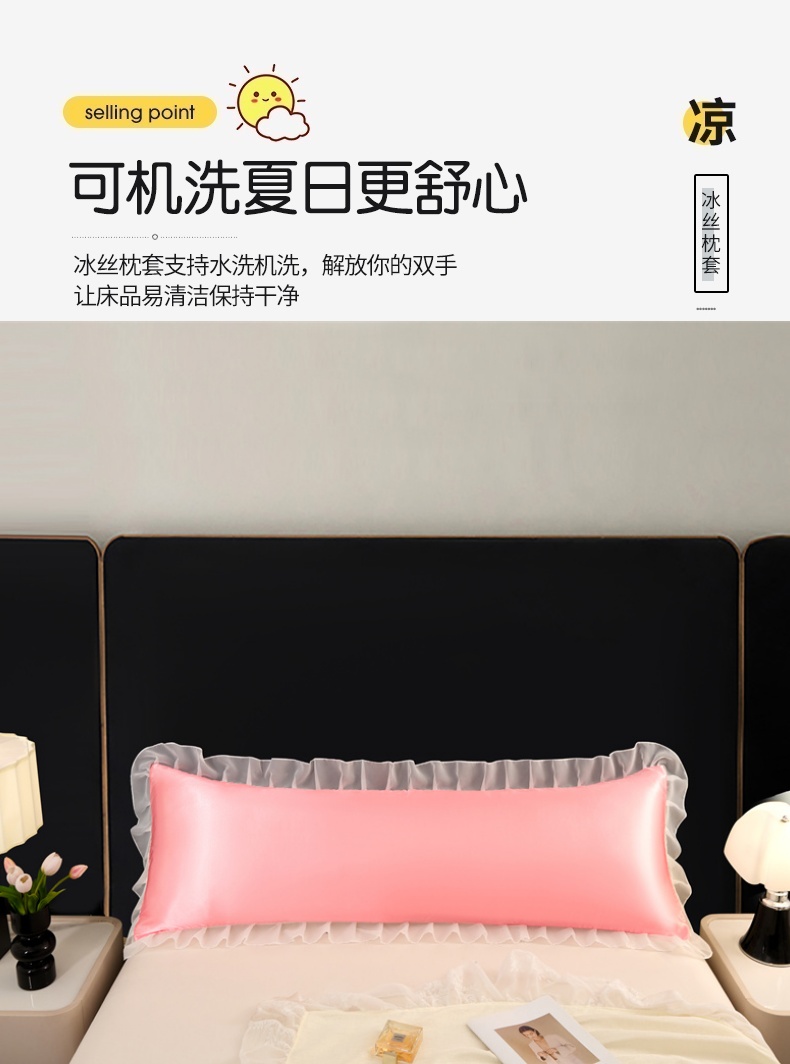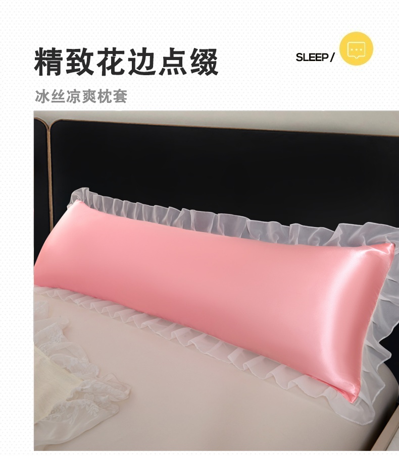 商品名称:梦舒羽 2025新款公主风夏季冰丝枕套双人情侣枕头套加长枕芯套1.5m内胆套 花边款-玉色