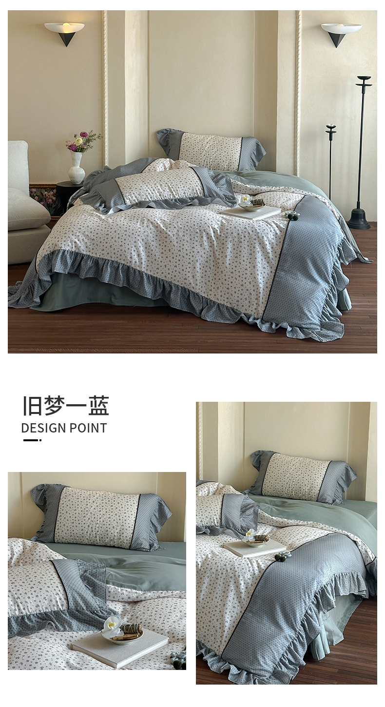 商品名称:(总)名品优仓 2025新款纯棉水洗棉双层纱提花韩版花边四件套 旧梦