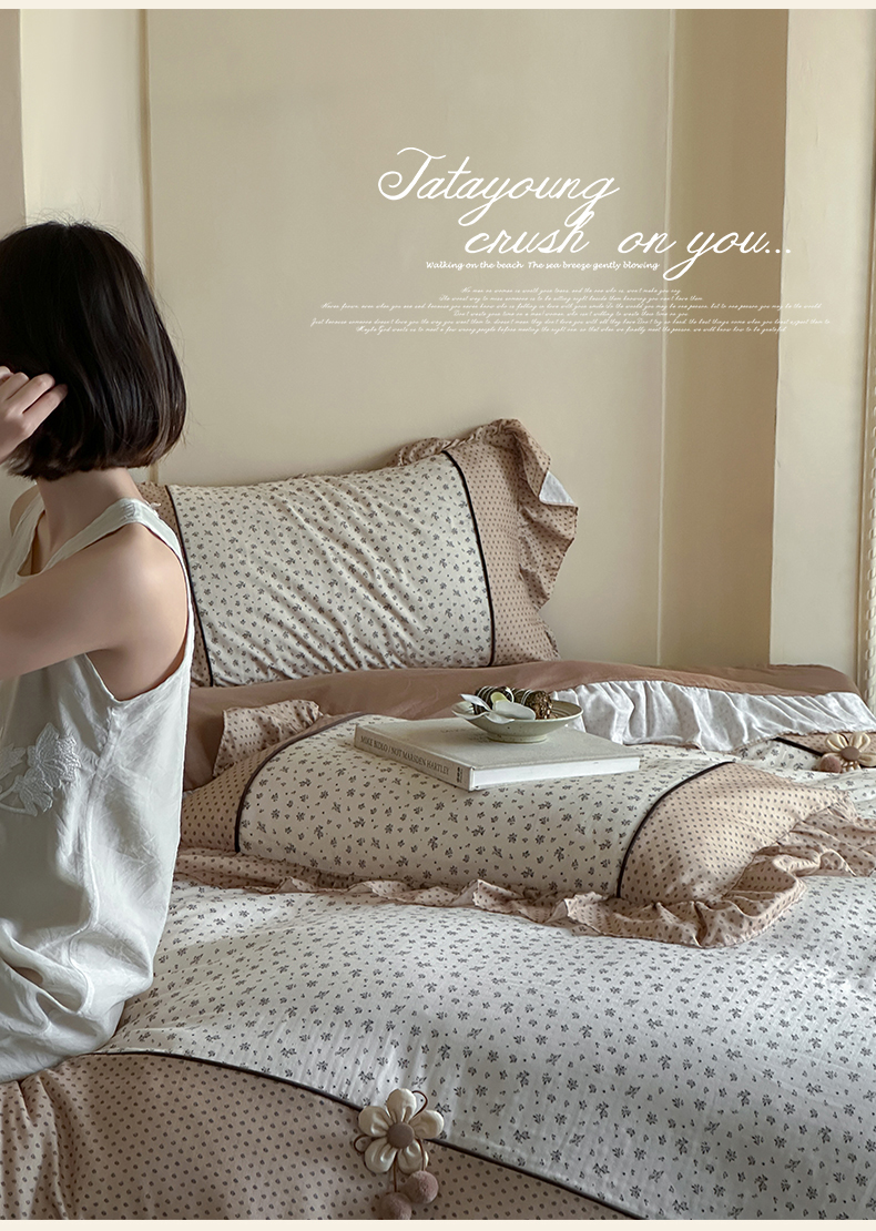 (总)名品优仓 2025新款纯棉水洗棉双层纱提花韩版花边四件套 旧梦