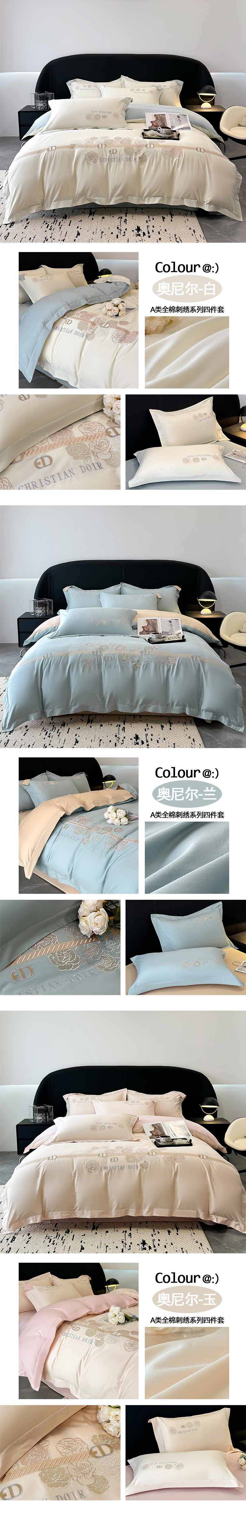 (总)懒猫家纺 高精密40支13374全棉喷气绣花四件套 【带礼盒】-奥尼尔系列