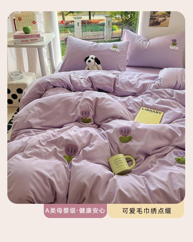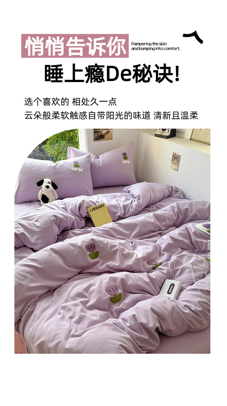 当前位置: 91家纺网 > 商品网购 > 床品套件 > 四件套 > 水洗棉四件套 > 耀达家居 2025新款A类水洗棉毛巾绣四件套 郁金香