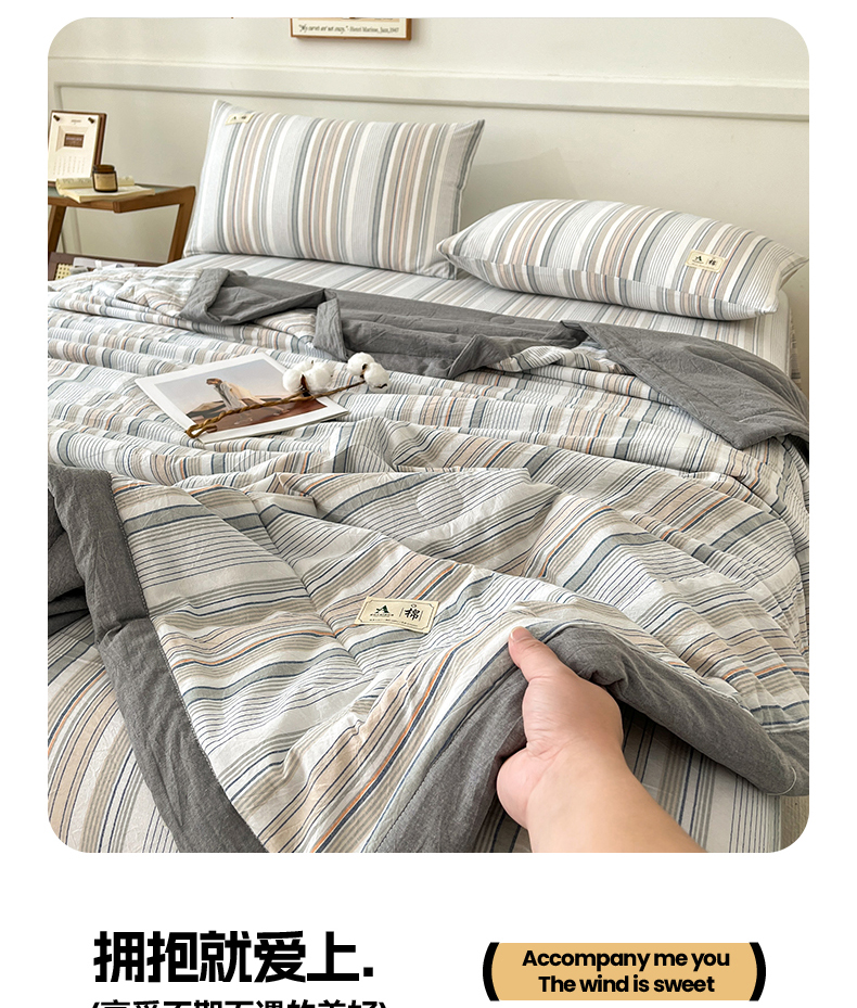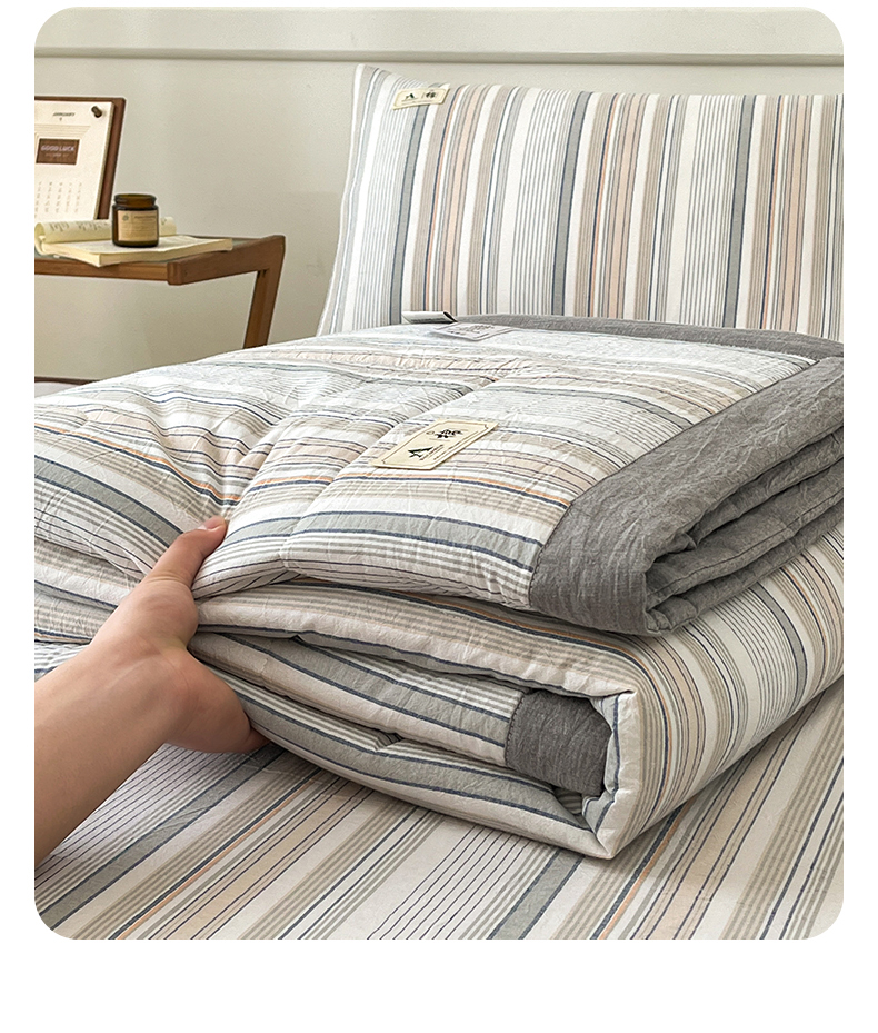当前位置: 91家纺网 > 商品网购 > 床品套件 > 四件套 > 夏被四件套 > 21度C 2025新款色织全棉夏被四件套 沐妍灰