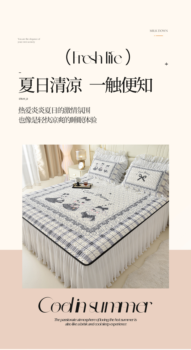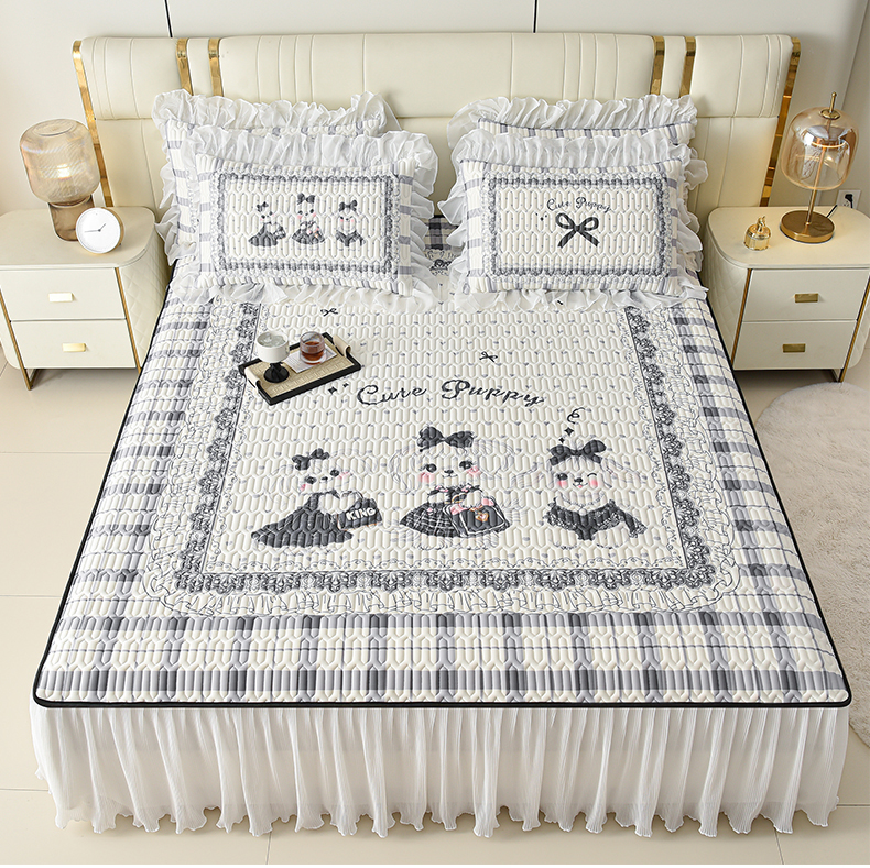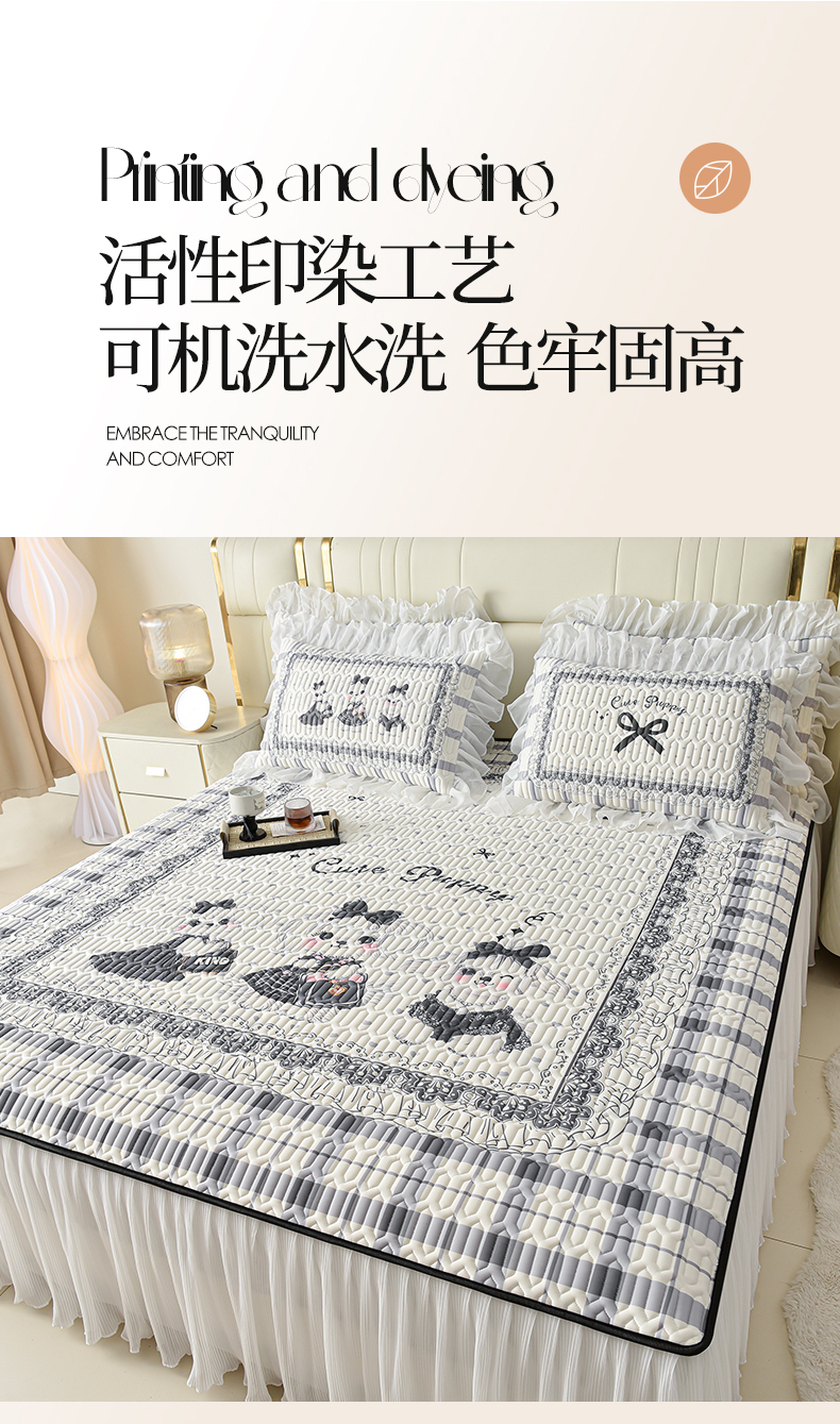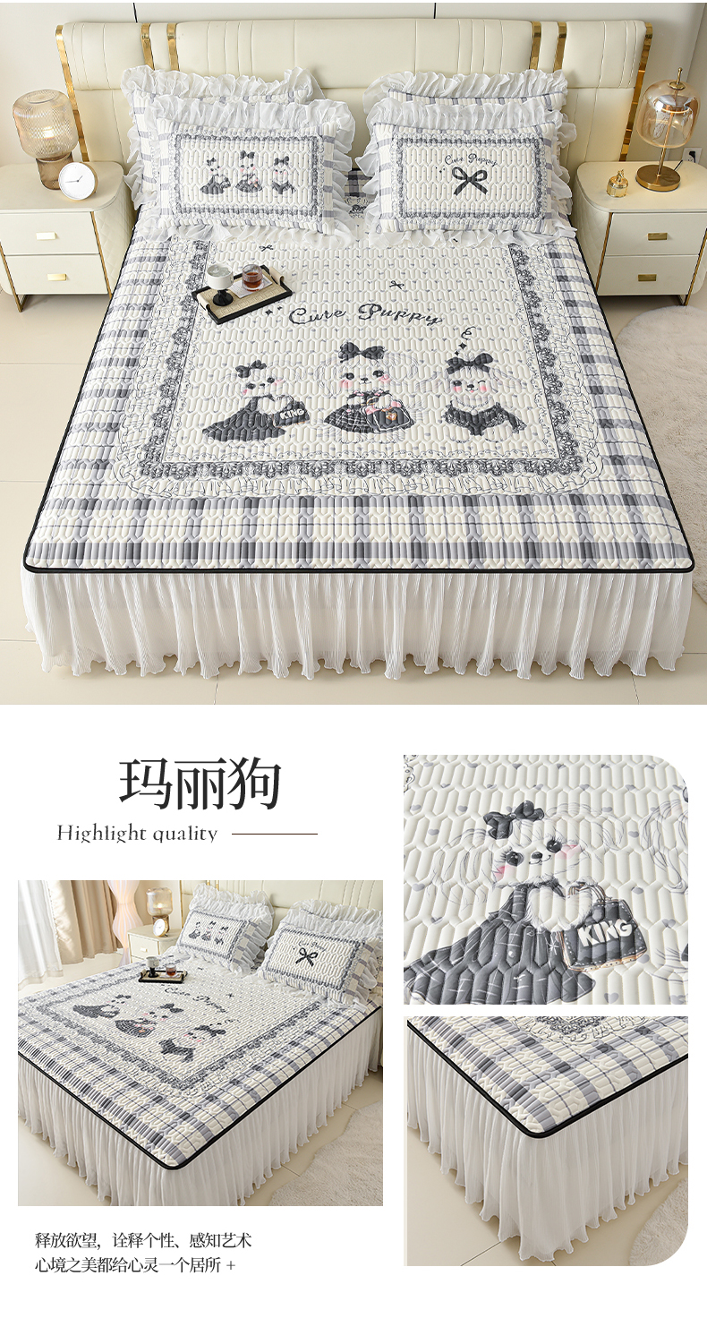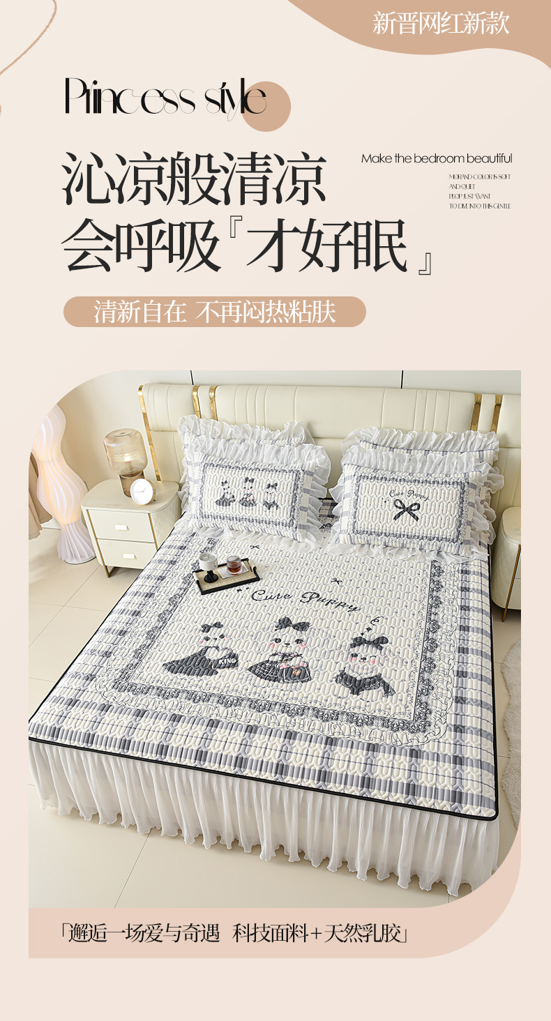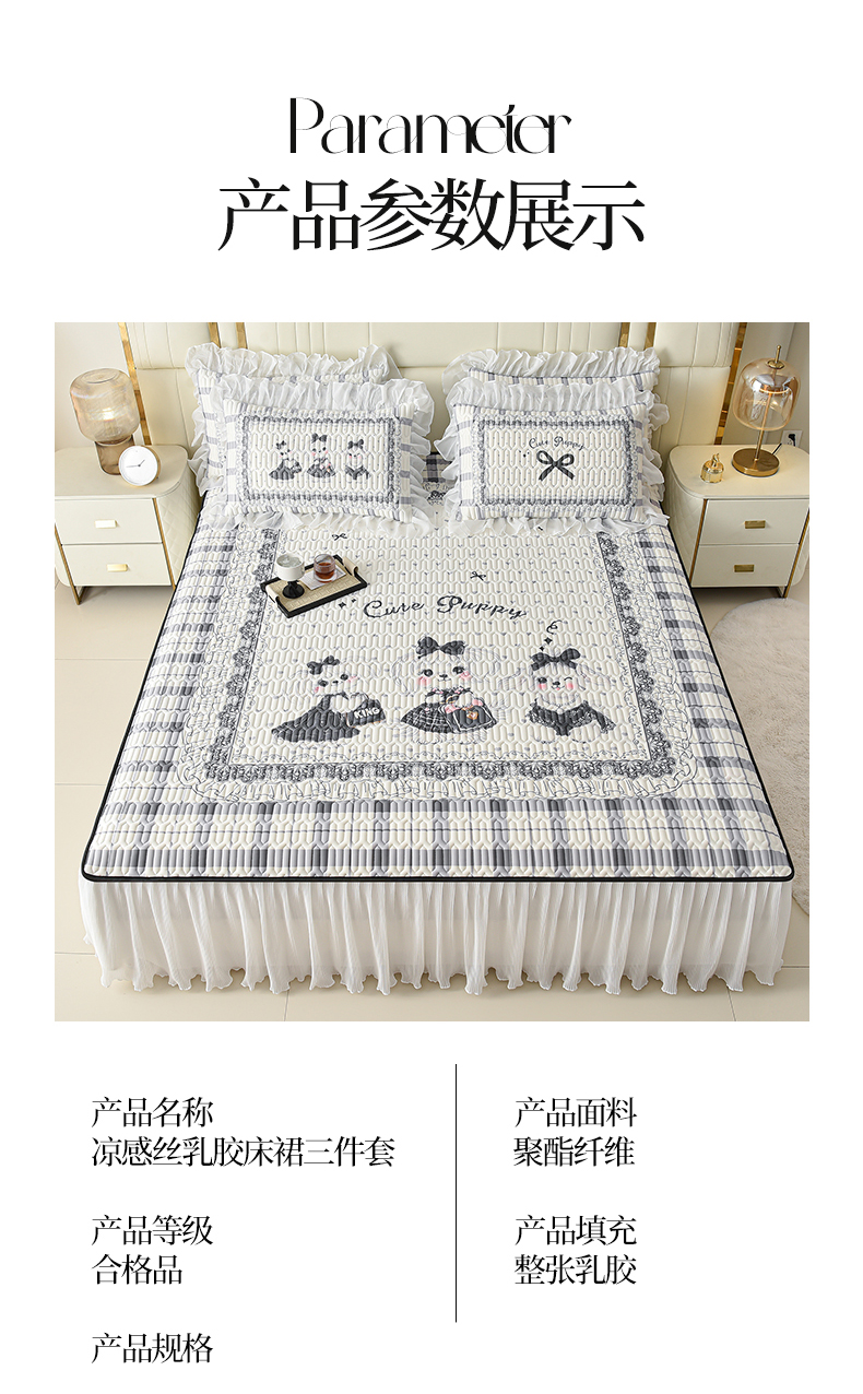 炫拼家纺 2025新款凉感丝印花床裙款乳胶凉席三件套 玛丽狗