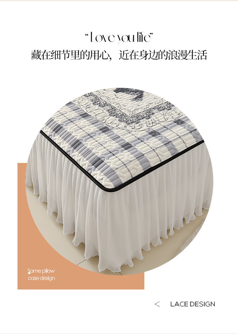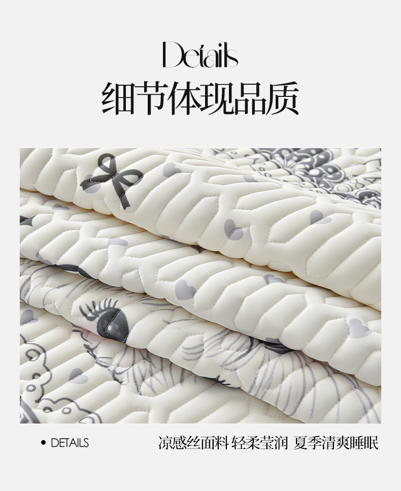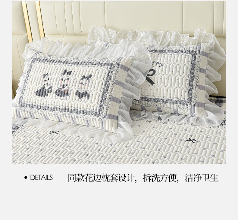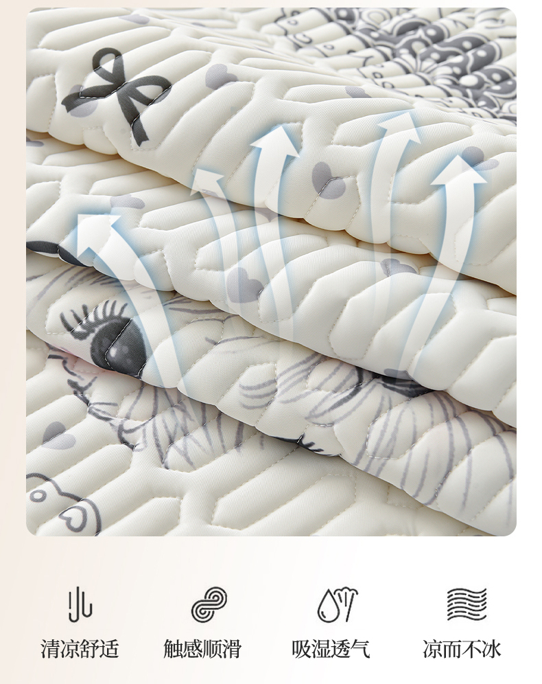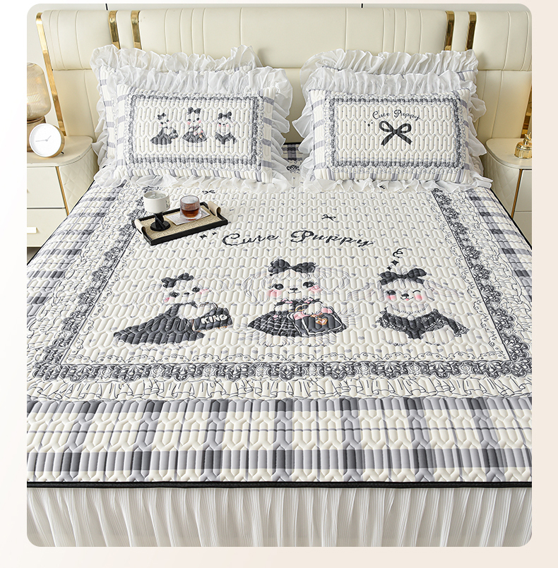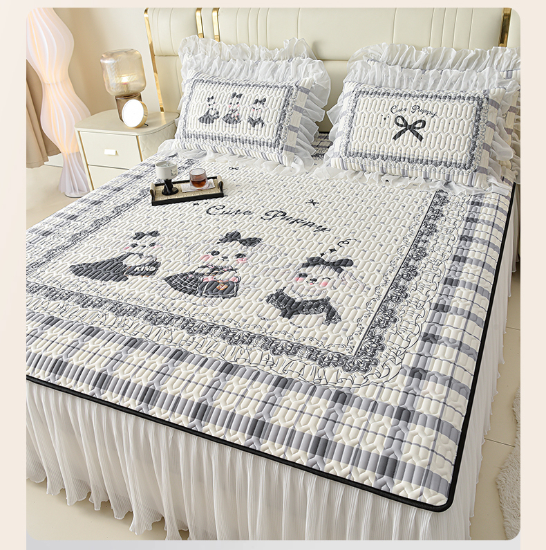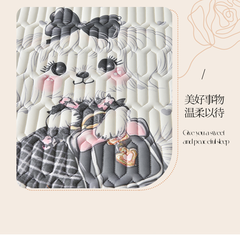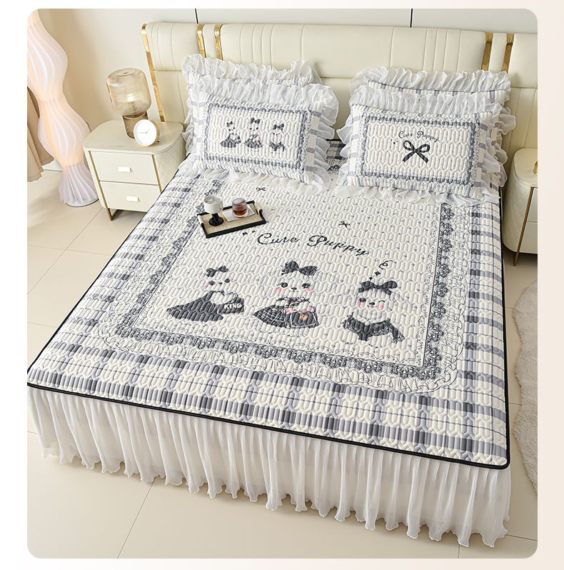 炫拼家纺 2025新款凉感丝印花床裙款乳胶凉席三件套 玛丽狗
