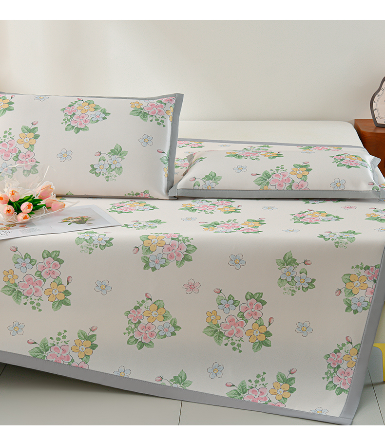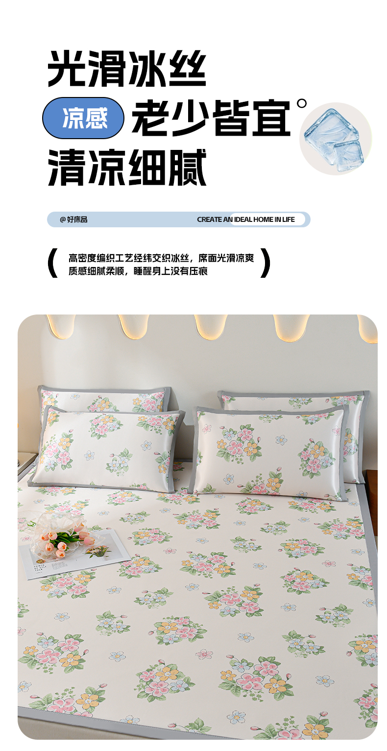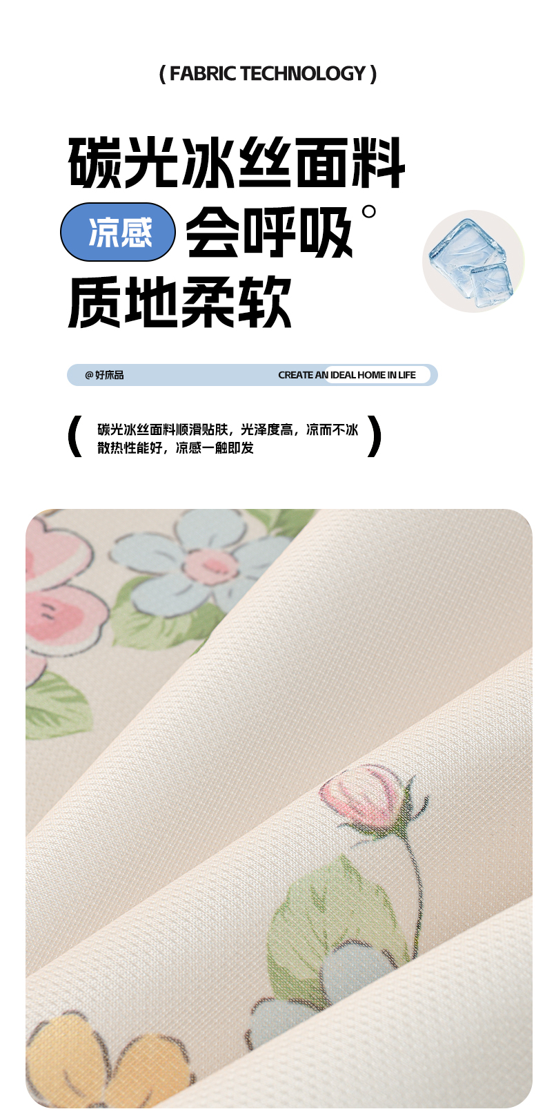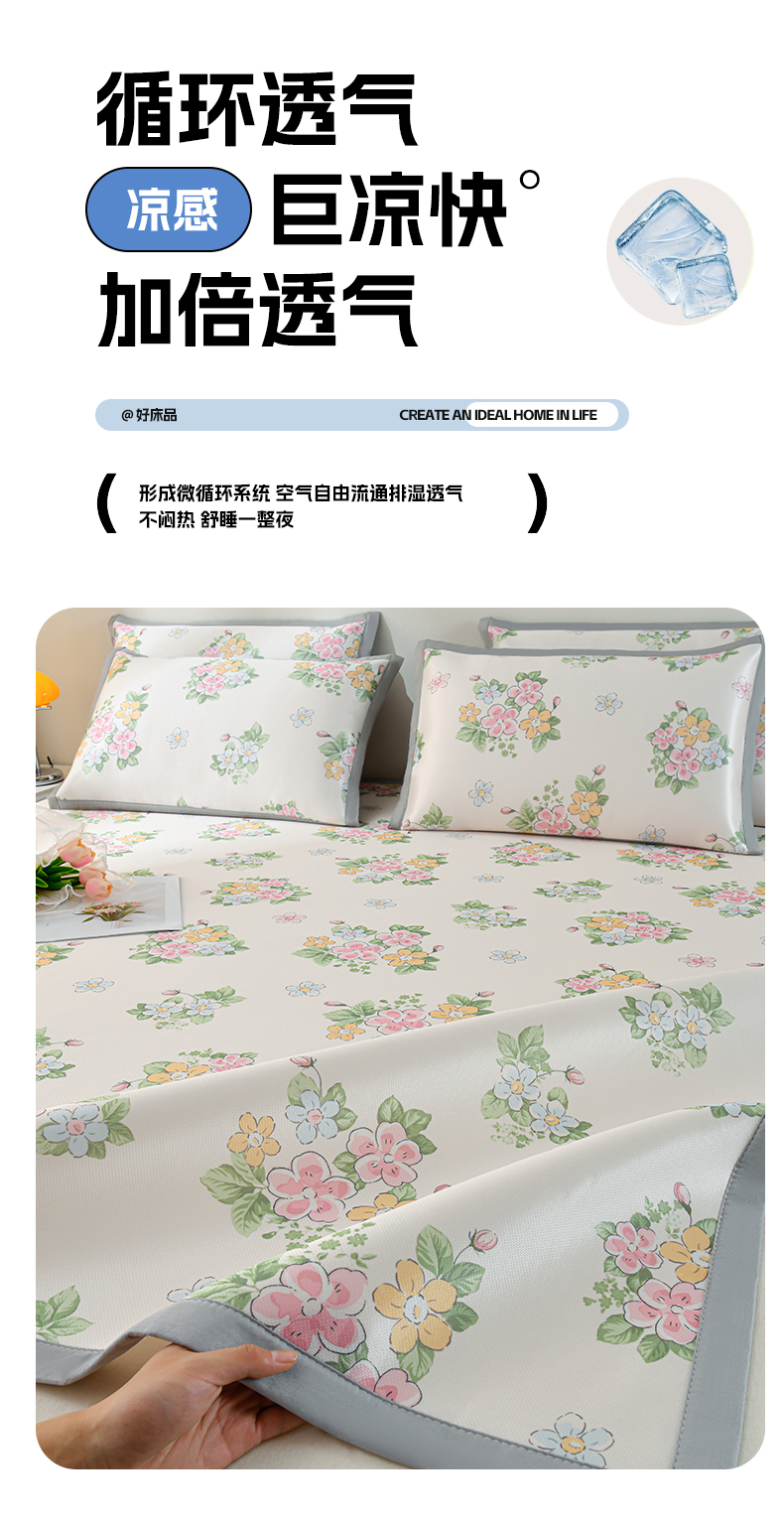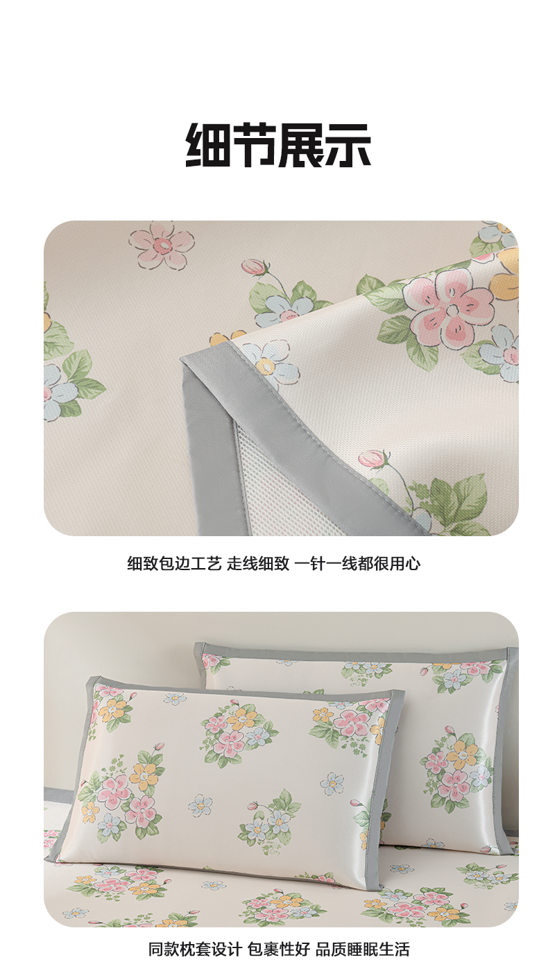 商品名称:简一 2025新款A类碳光印花数码冰丝凉席系列-床单款 满园春色