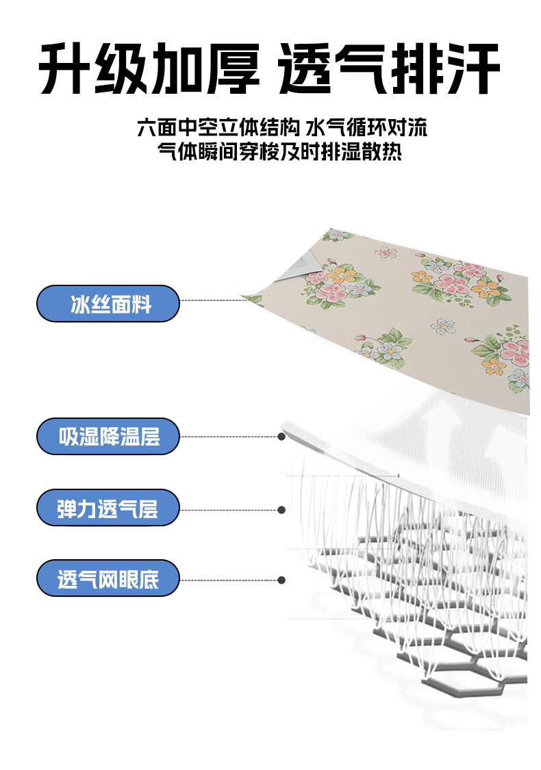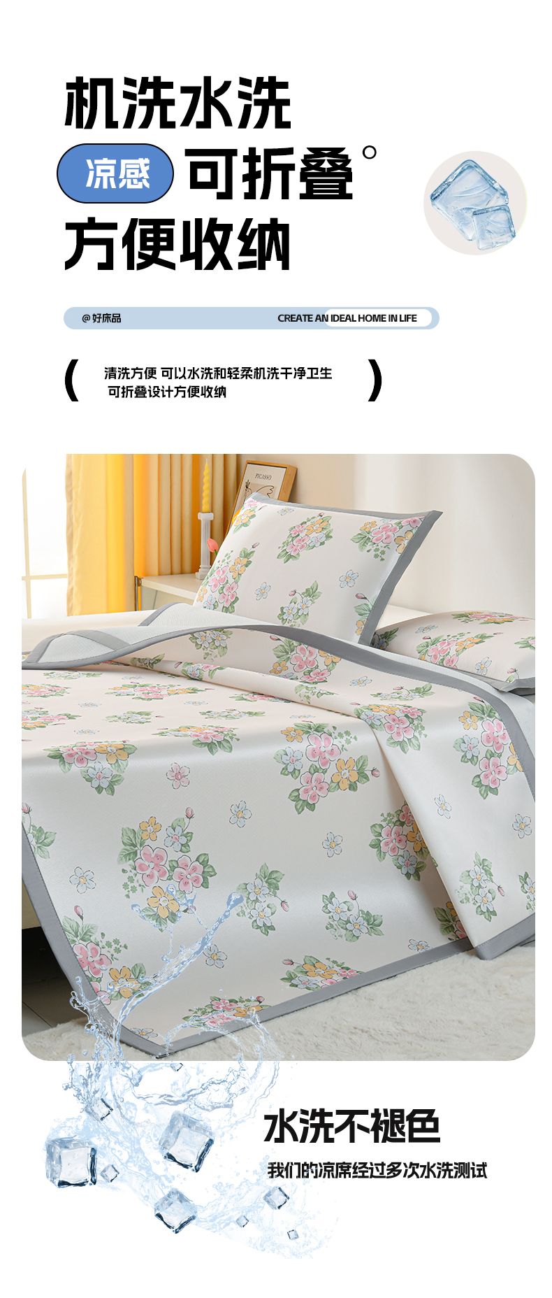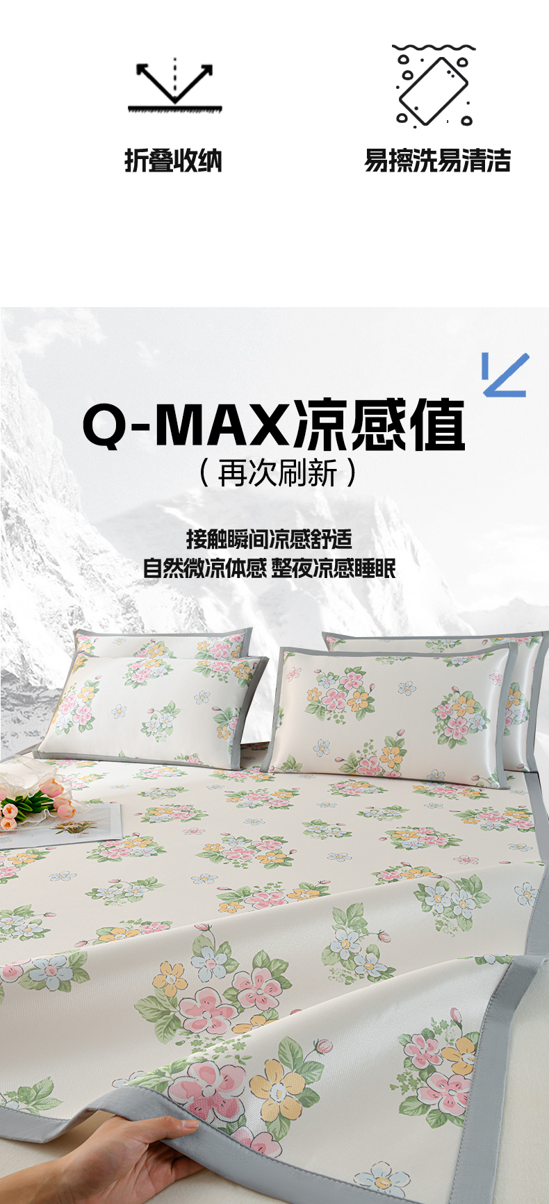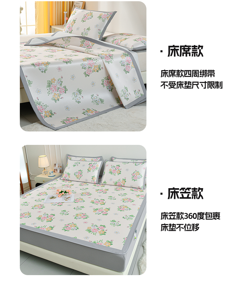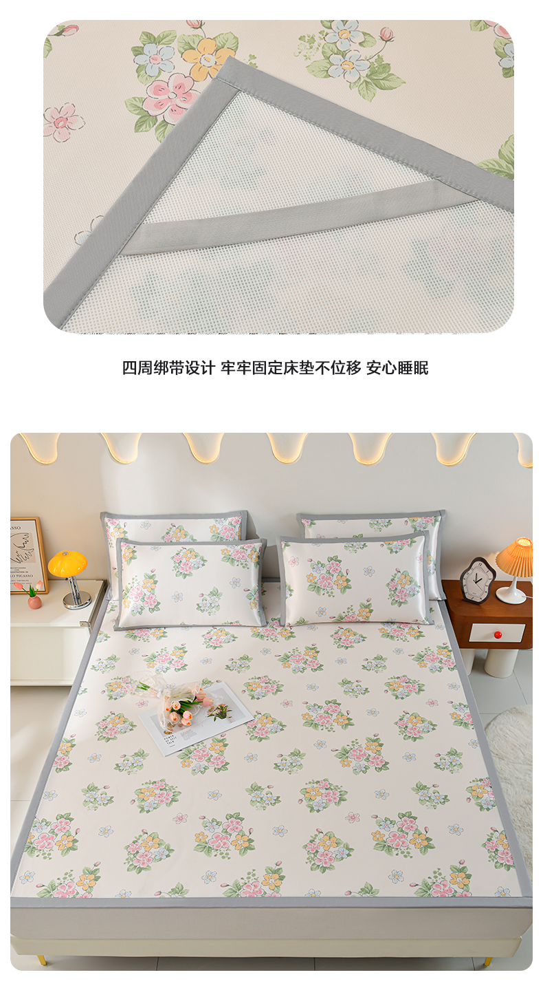 商品名称:简一 2025新款A类碳光印花数码冰丝凉席系列-床单款 满园春色