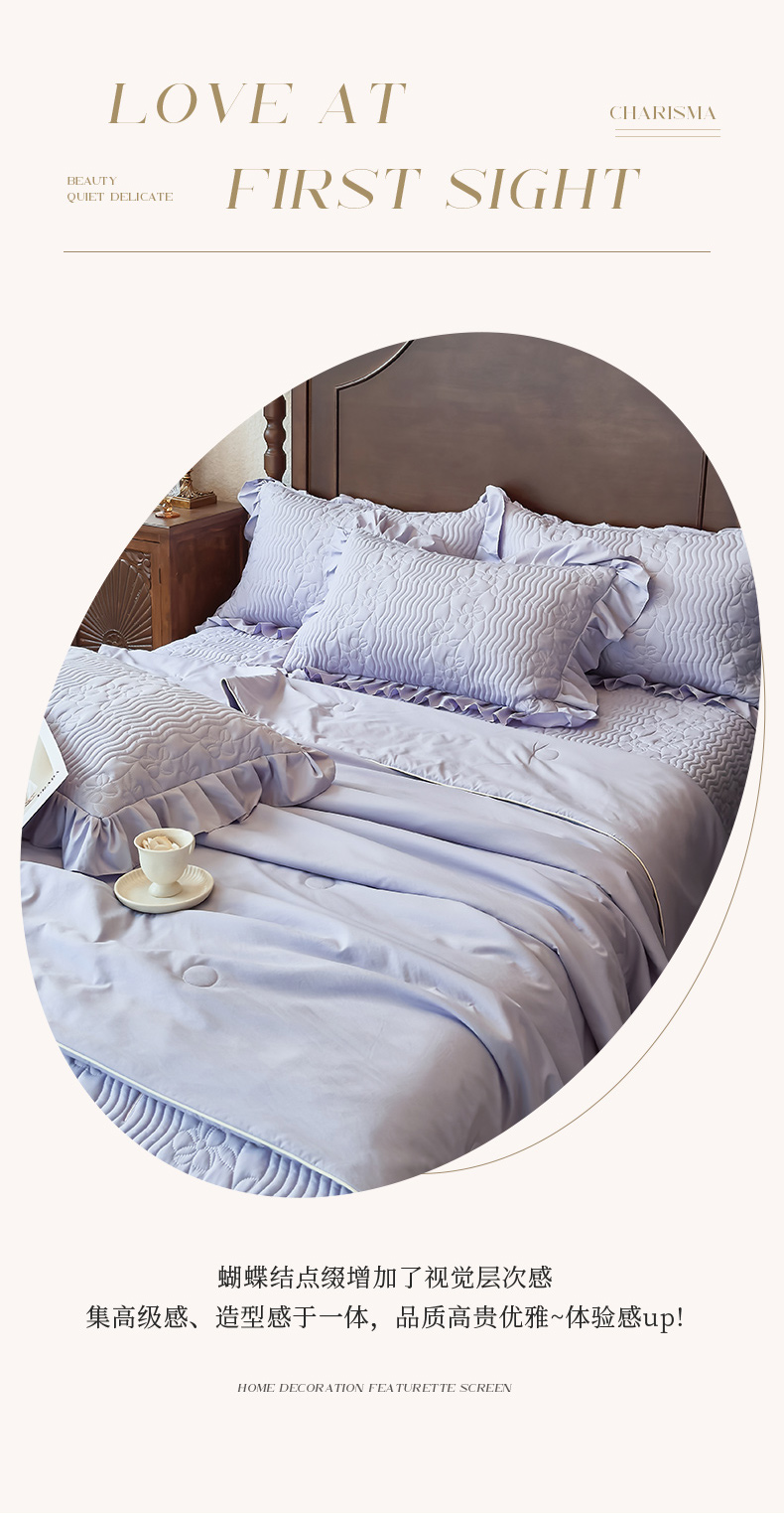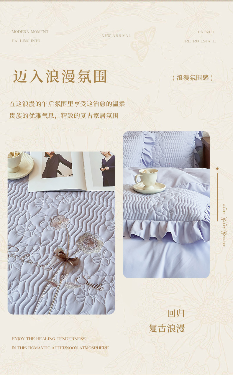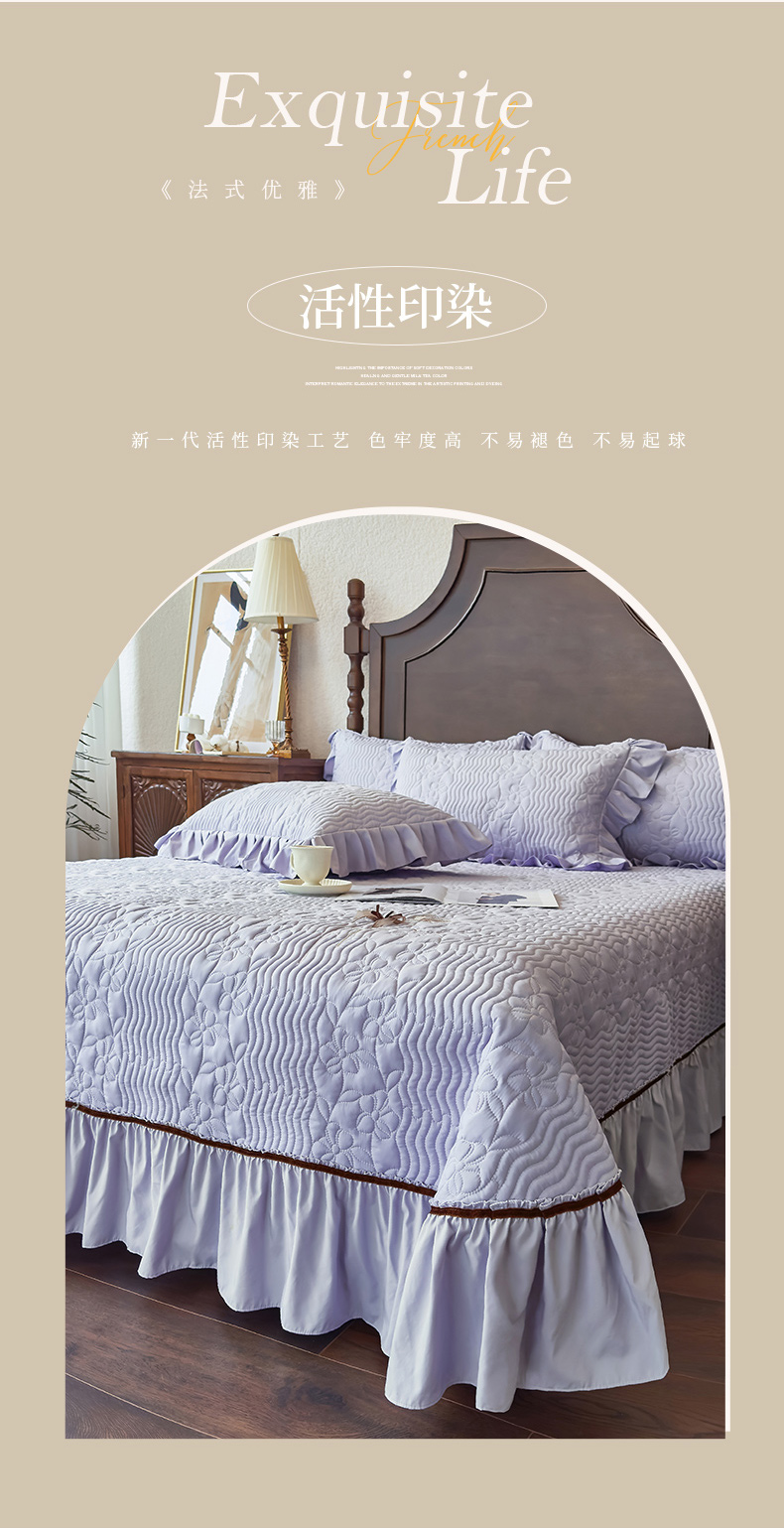 商品名称:(总)乐朵家居 2025新款 花璟枝 天丝缎 夹棉床盖+可加夏被 琉璃紫