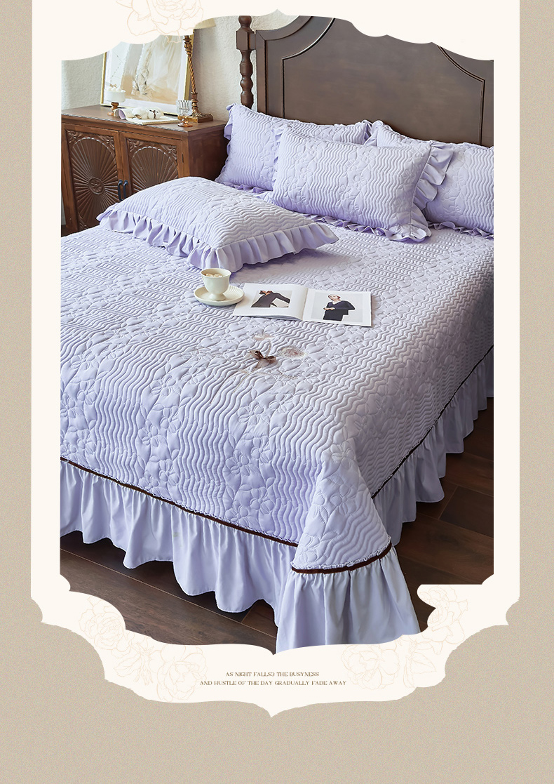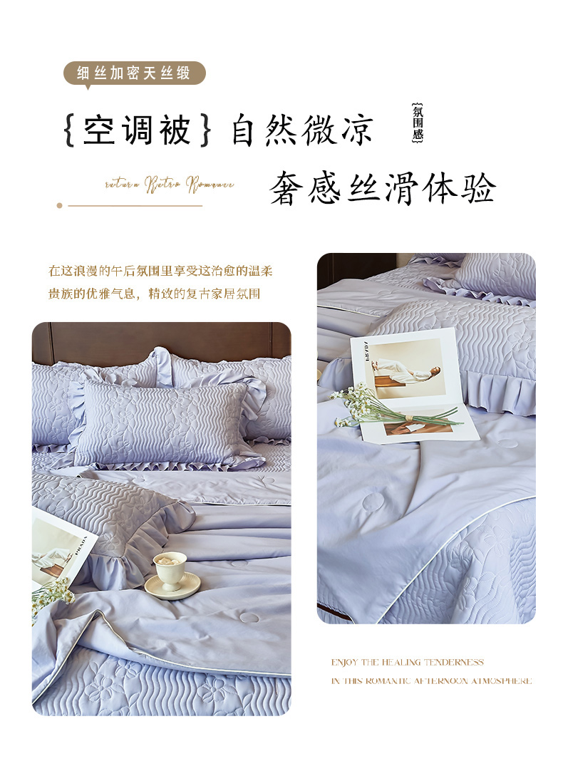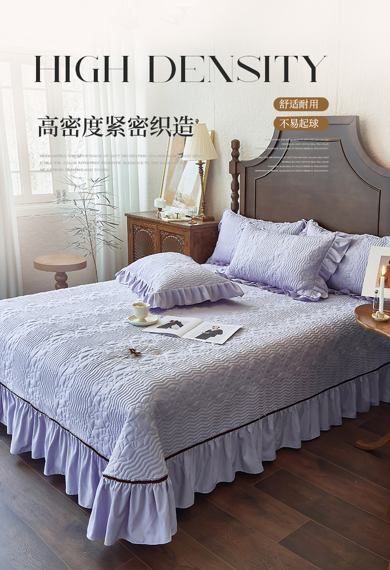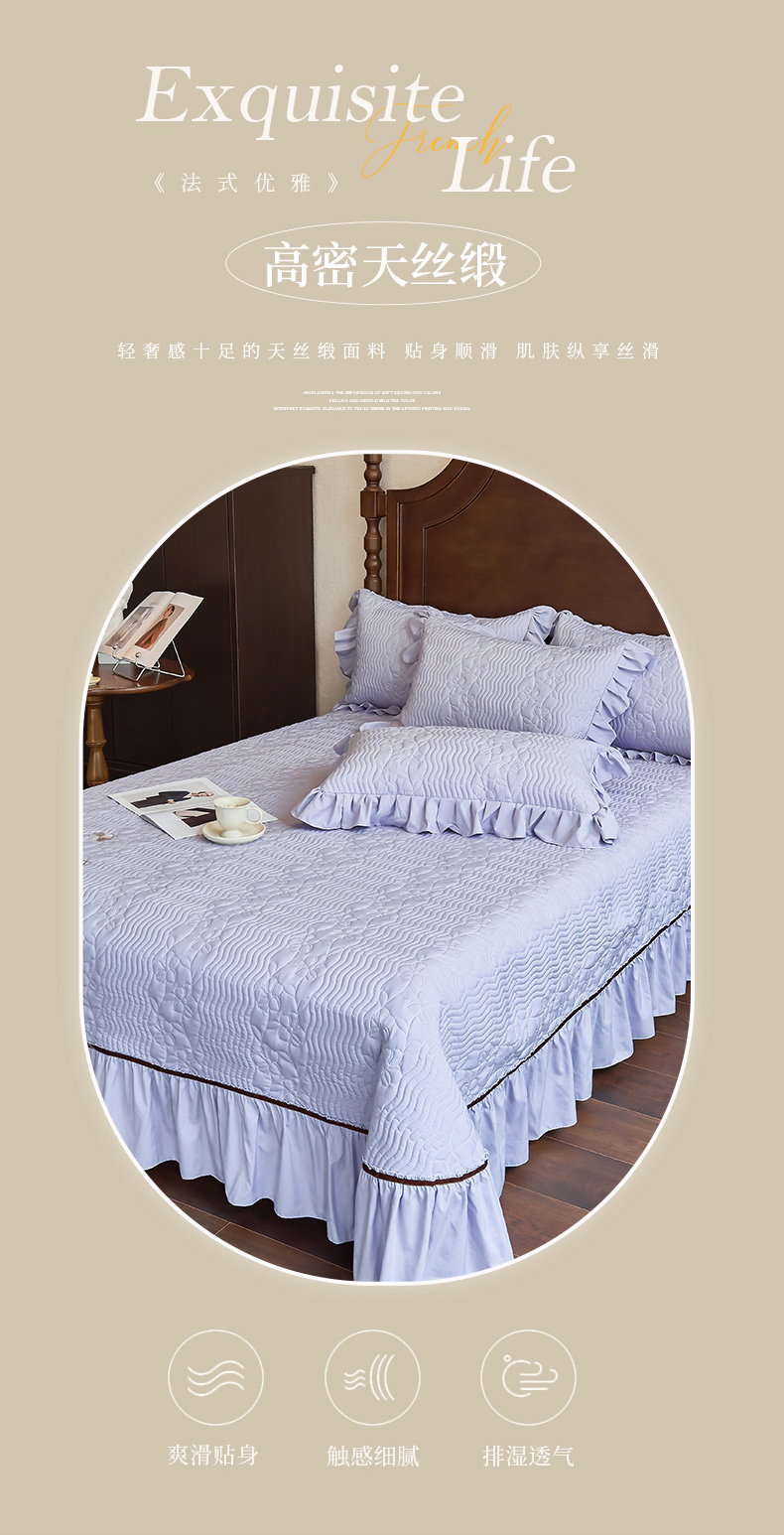 商品名称:(总)乐朵家居 2025新款 花璟枝 天丝缎 夹棉床盖+可加夏被 琉璃紫