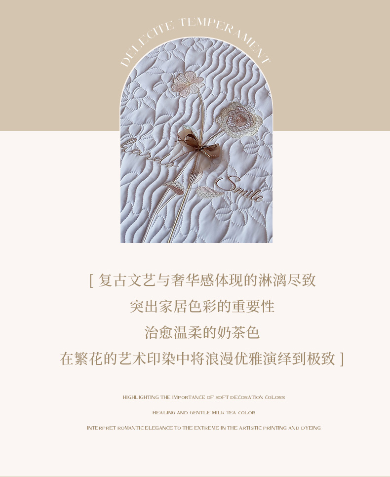 (总)乐朵家居 2025新款 南法庄园 牛奶绒 夹棉床盖四件套,粉玉,奶白