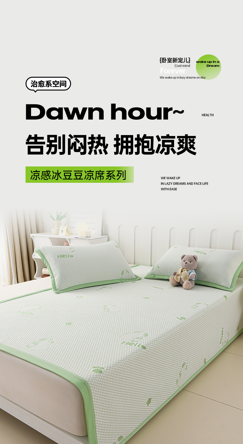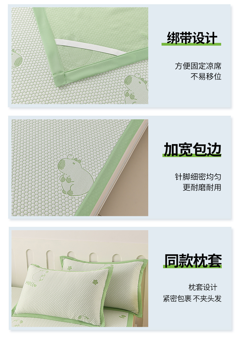 当前位置: 91家纺网 > 商品网购 > 床上用品 > 凉席 > 其他凉席 > 梦之星 2025新款凉豆豆凉席床席款三件套 卡比巴拉床席款-绿
