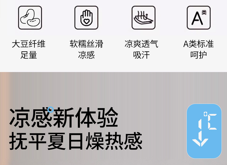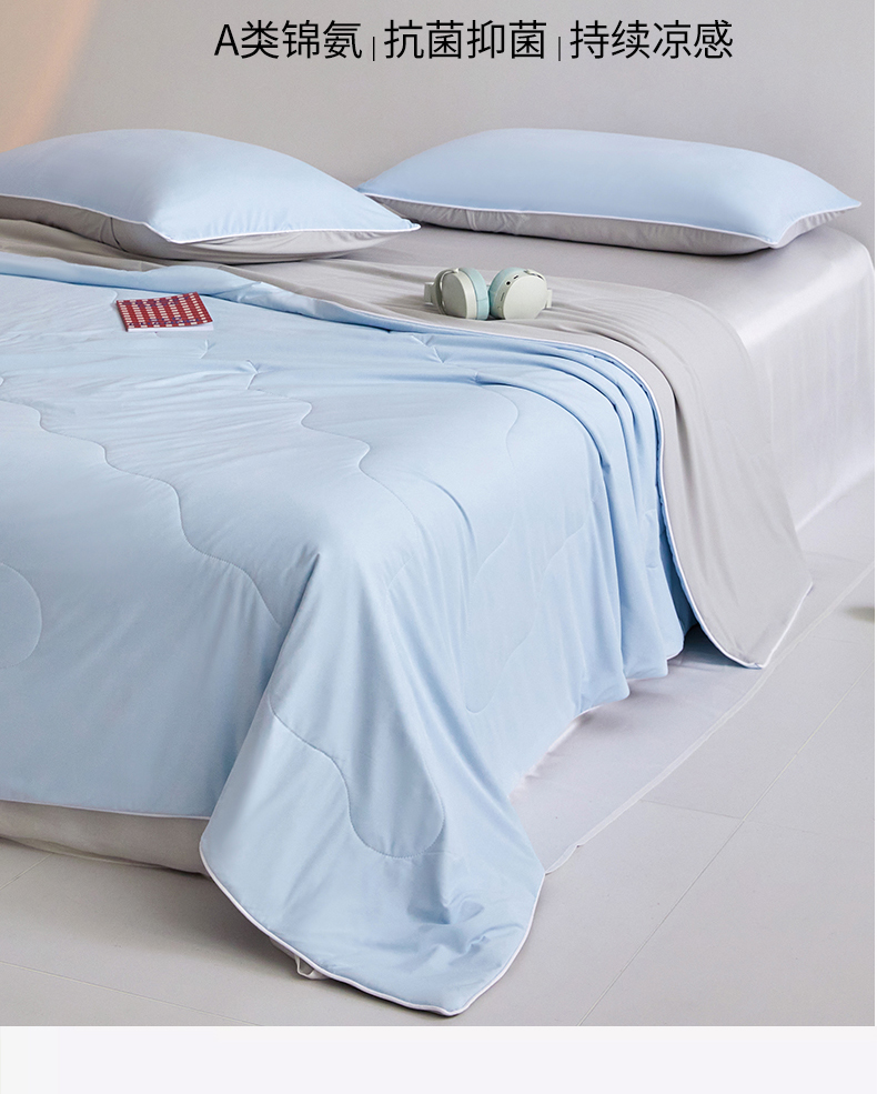 商品名称:头等舱 2025新款4.0版凉感A类锦氨(165克)55大豆抗菌夏被配礼盒 典雅兰拼浅灰