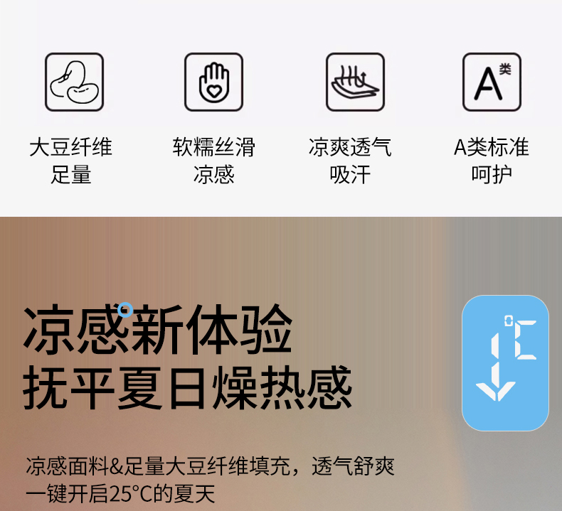 头等舱 2025新款4.0版凉感A类锦氨(165克)55大豆抗菌夏凉被夏被配礼盒模特图 典雅兰拼黄绿