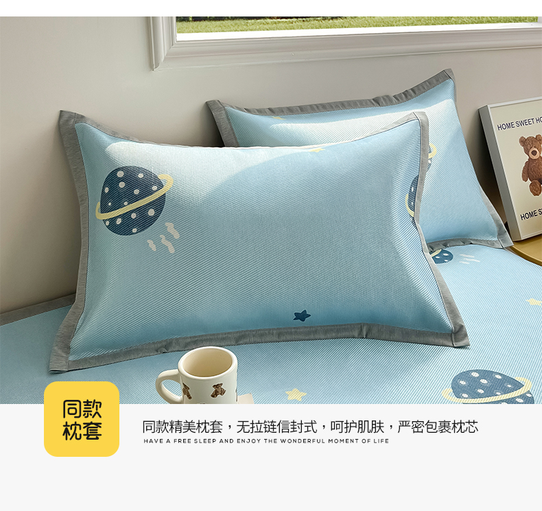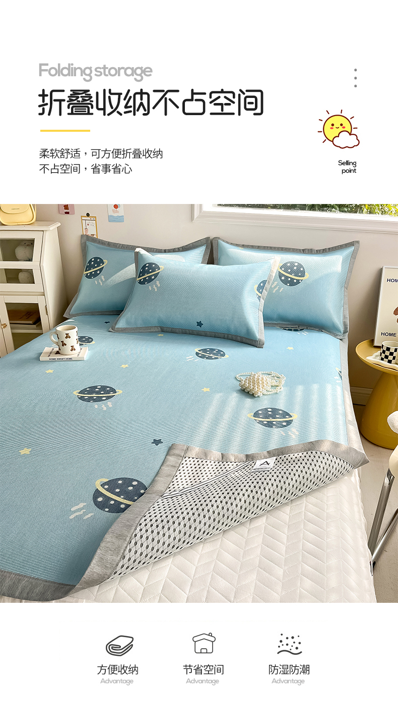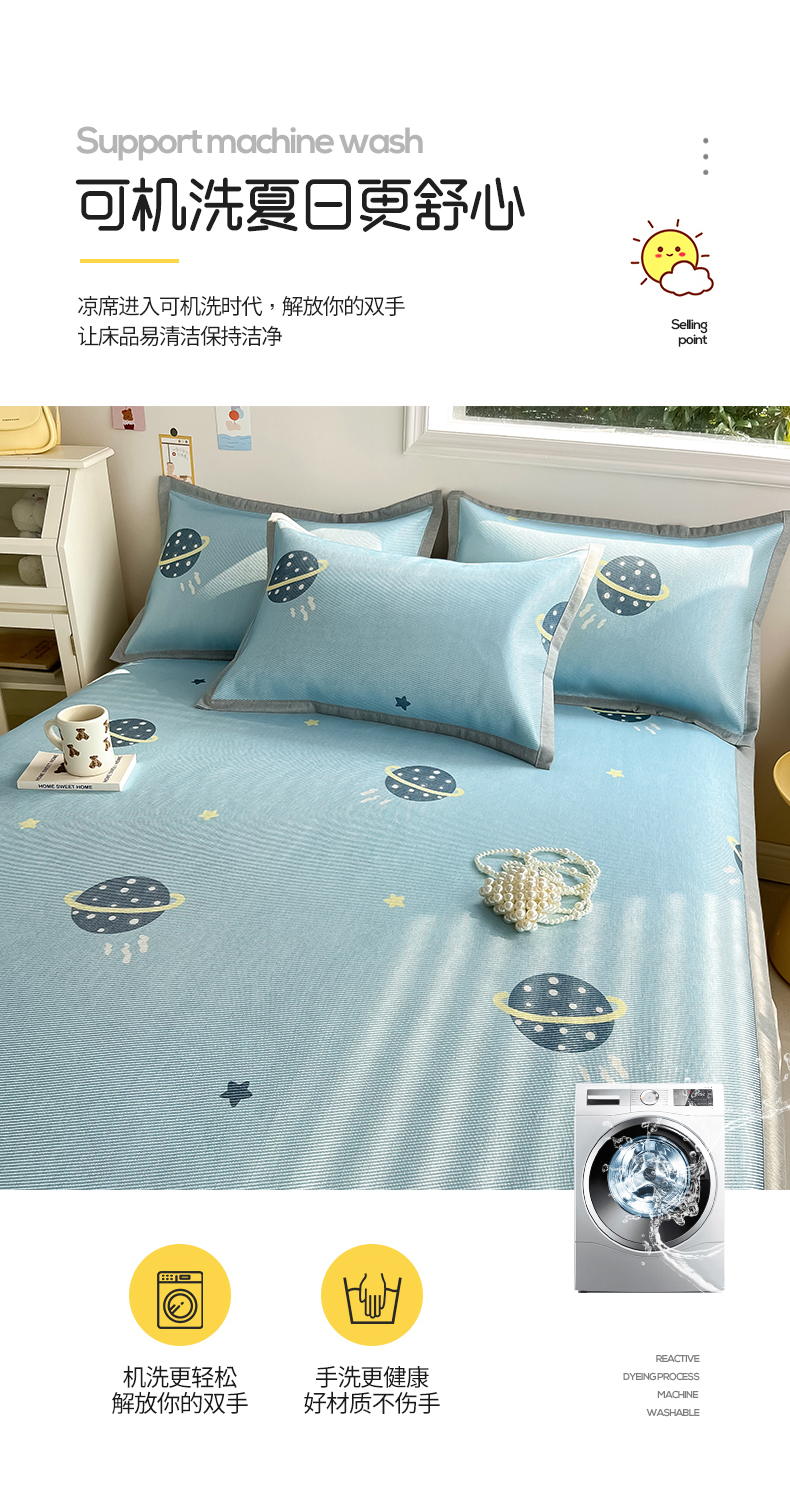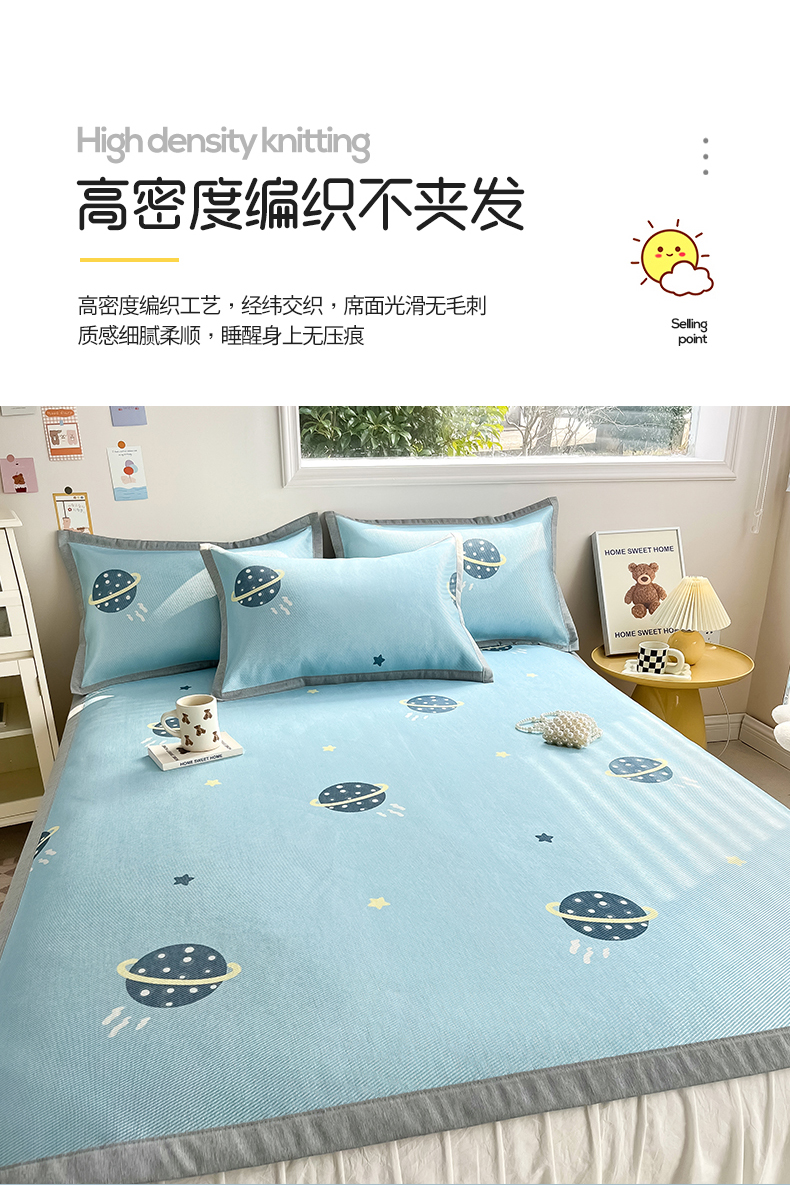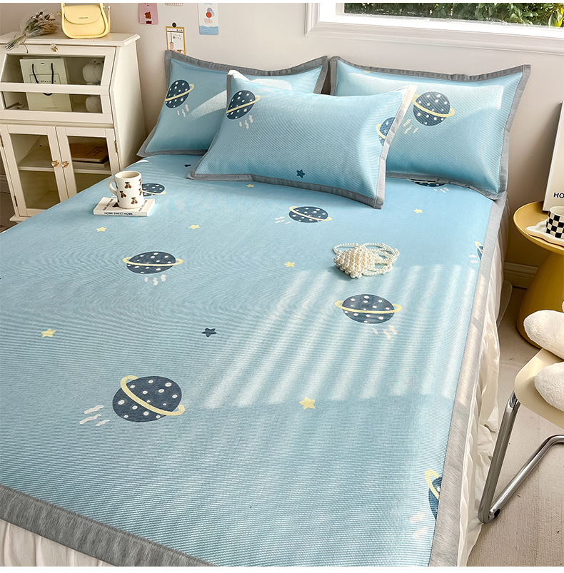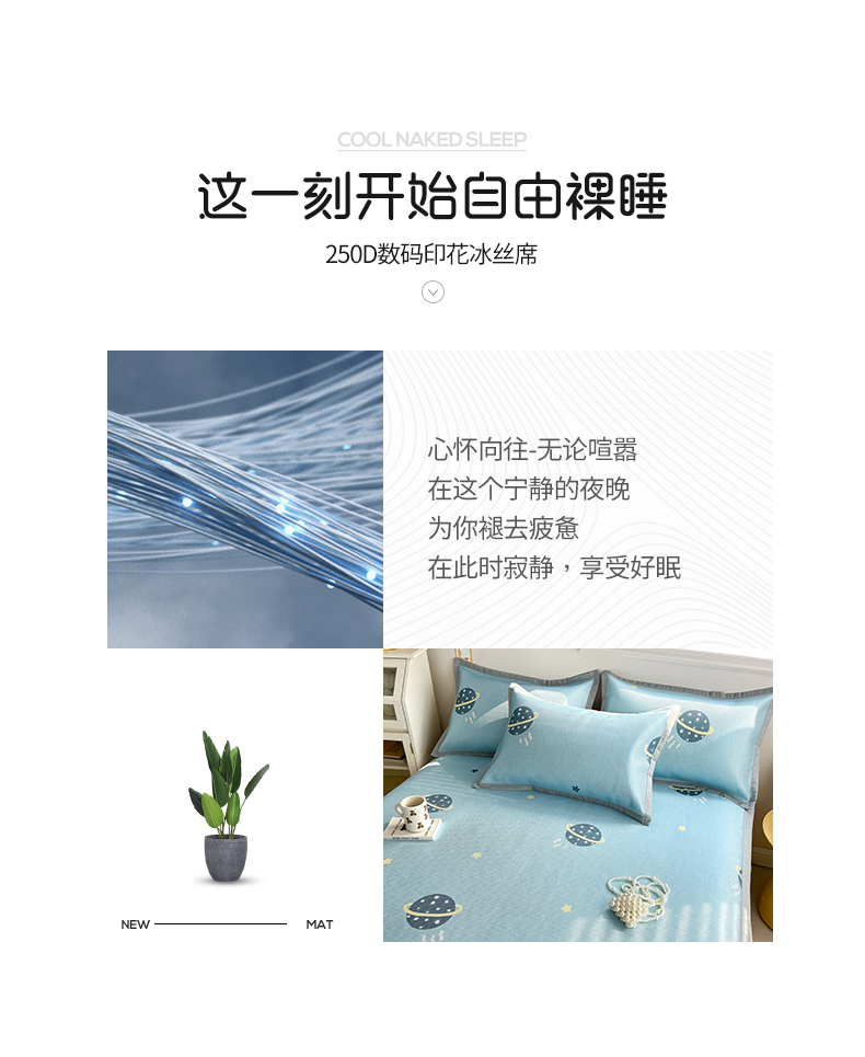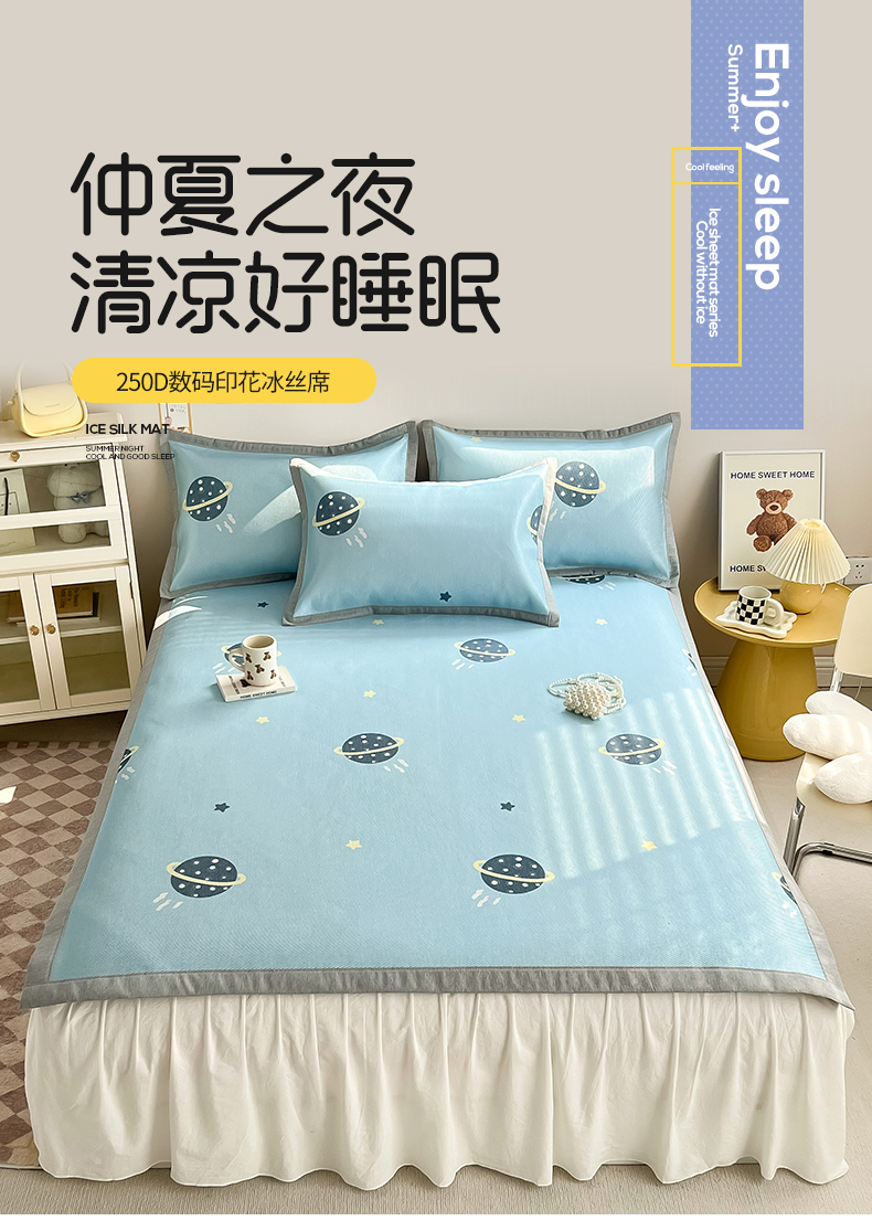 商品名称:懒猫家纺 2025春夏新款250D数码印花冰丝席凉席席子 探索星球