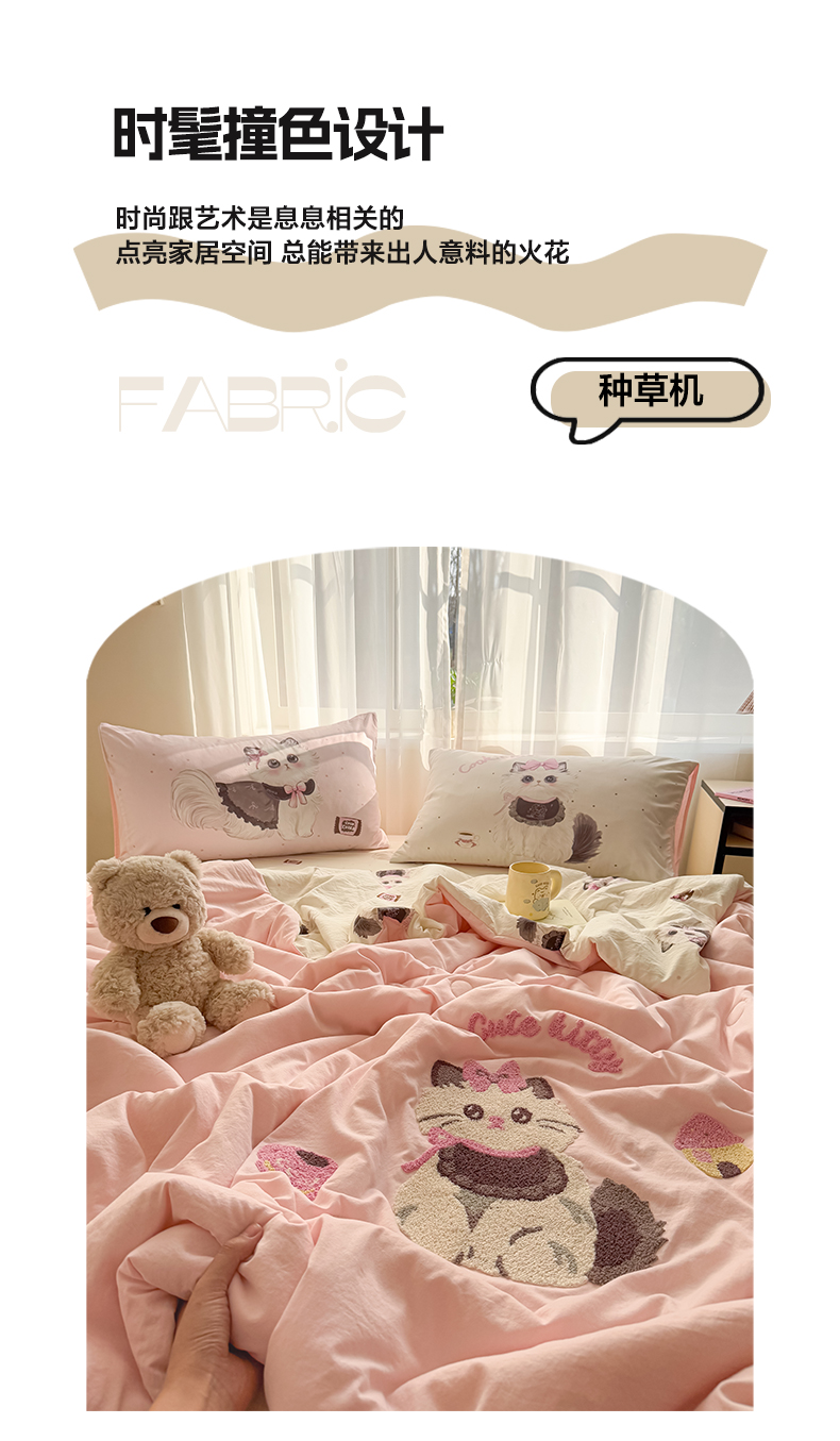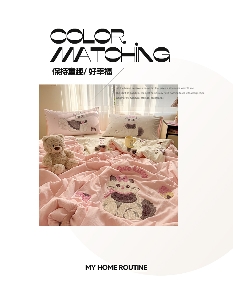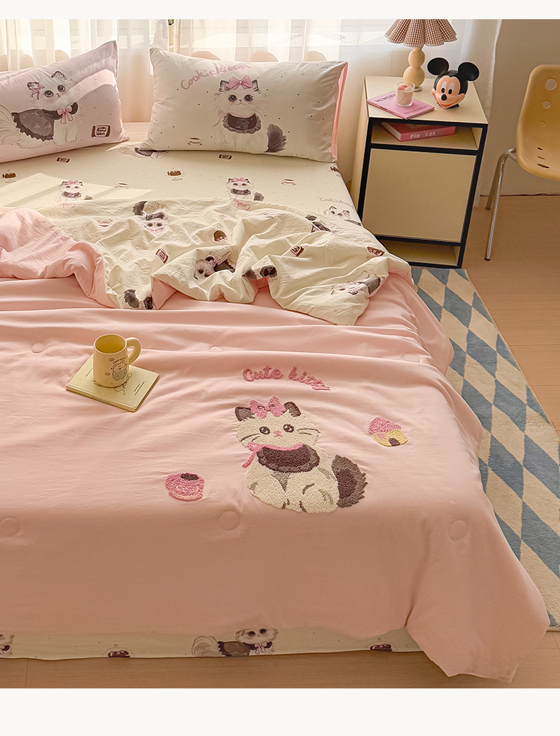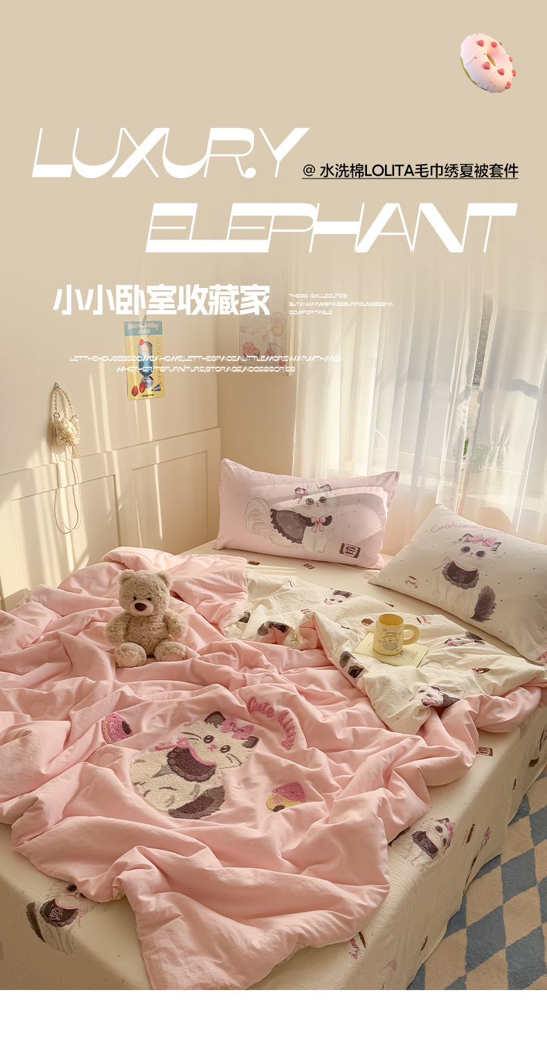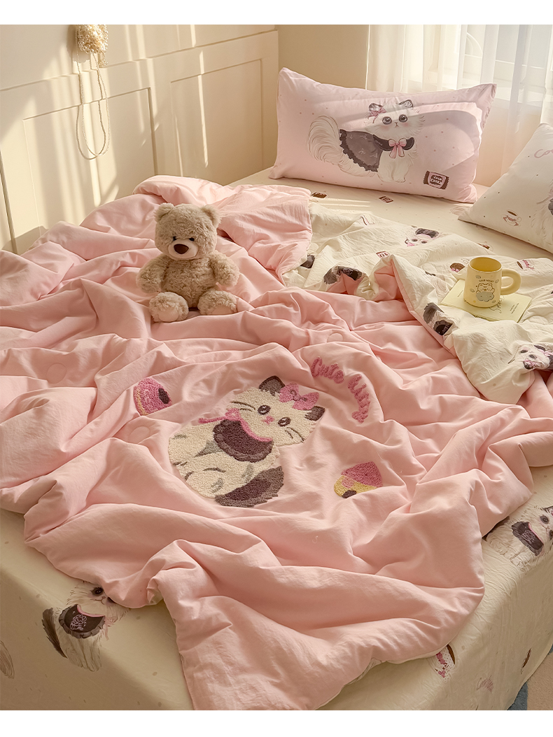 贝扬思 2025新款Lolita毛巾绣夏被套件 草莓布偶猫