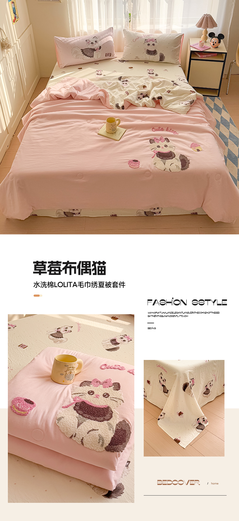 商品名称:贝扬思 2025新款Lolita毛巾绣夏被套件 草莓布偶猫