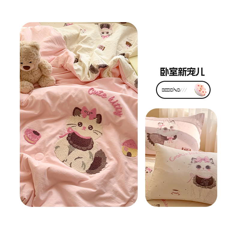 (总)贝扬思 2025新款Lolita毛巾绣夏被套件 ,草莓布偶猫,脆梨曲奇熊,蓝莓布偶猫,糯米熊猫团,小狗脆啵啵,小熊布朗尼