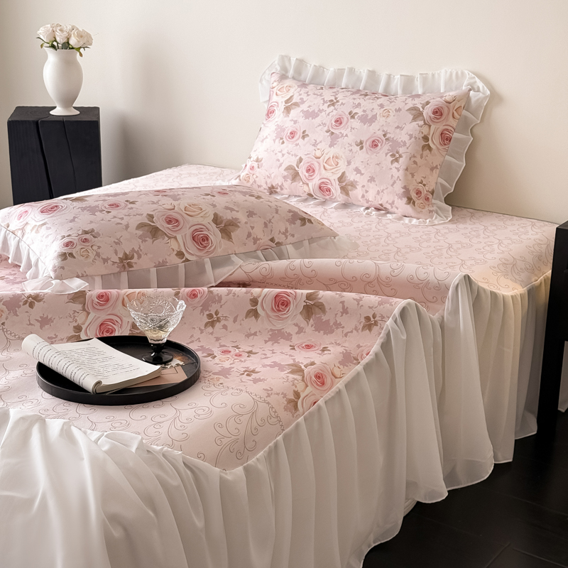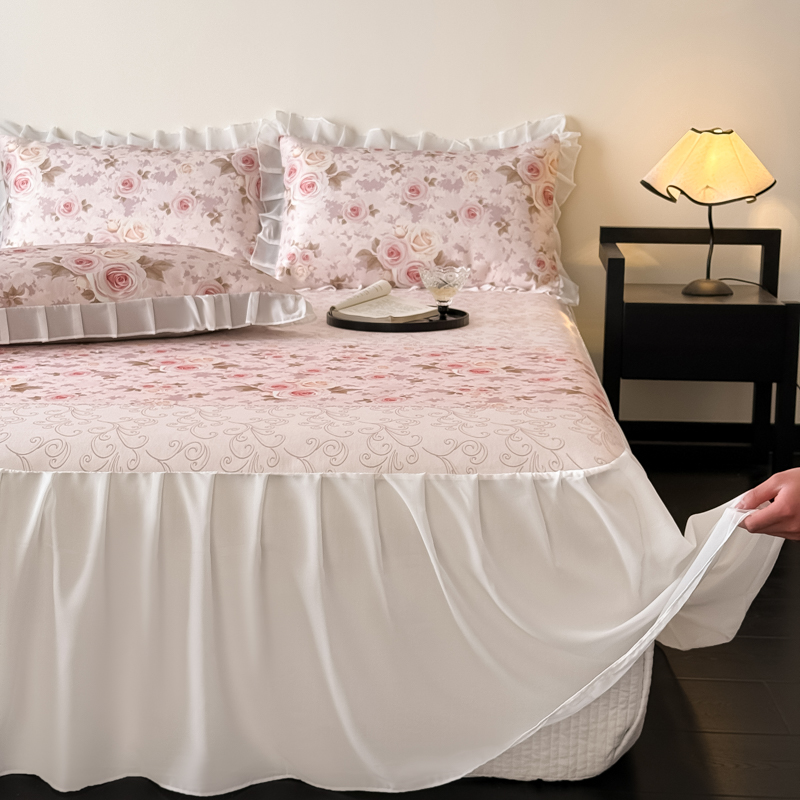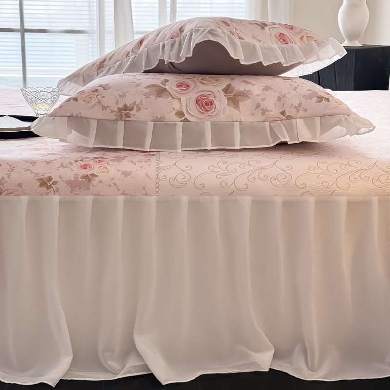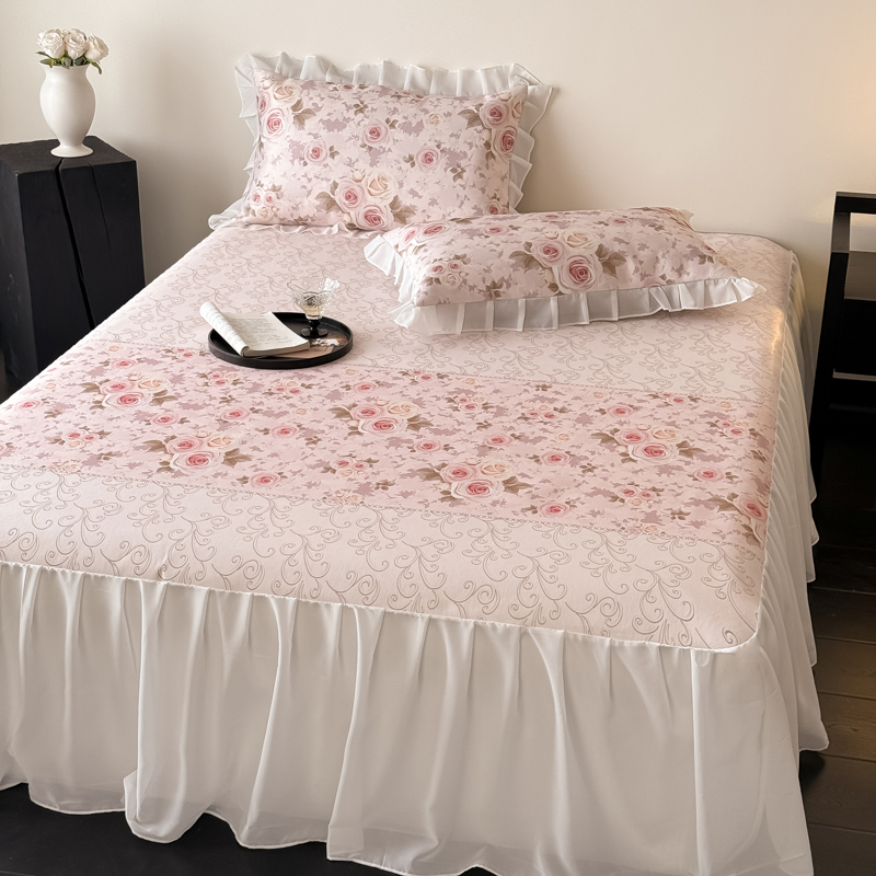 典曼家纺 2025春夏新款高精密800D数码印花冰丝雪纺床裙款凉席席子 花田