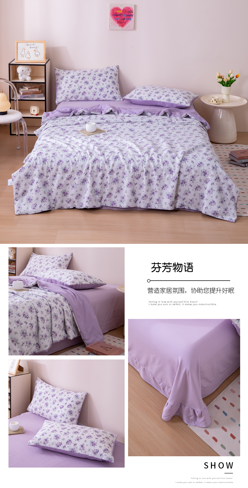 商品名称:南北家居 2025新款针织棉双层纱夏被四件套 芬芳物语