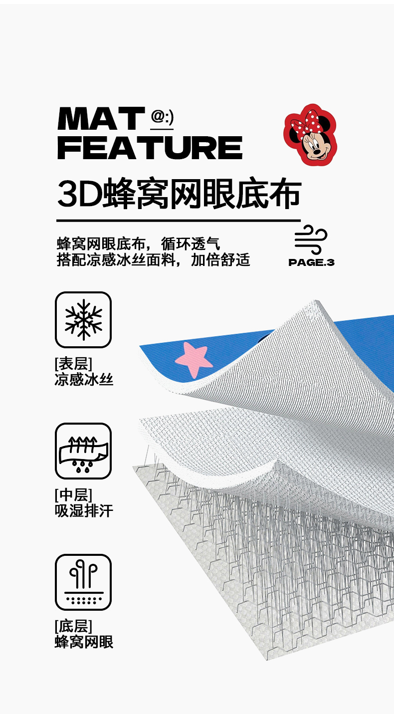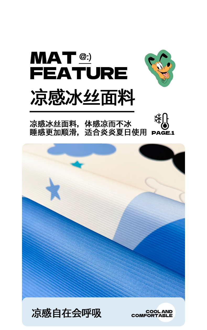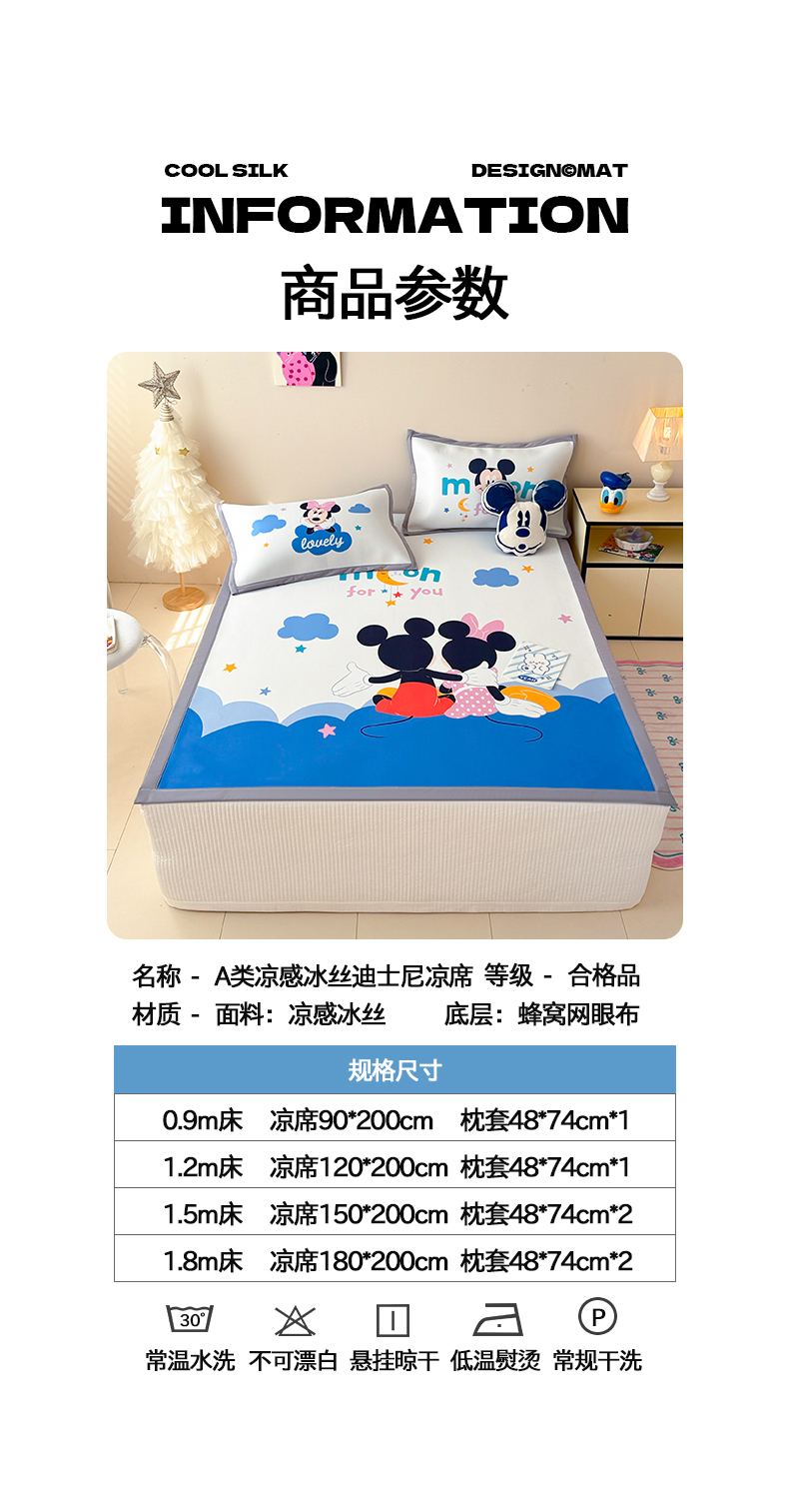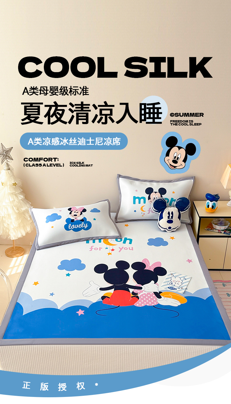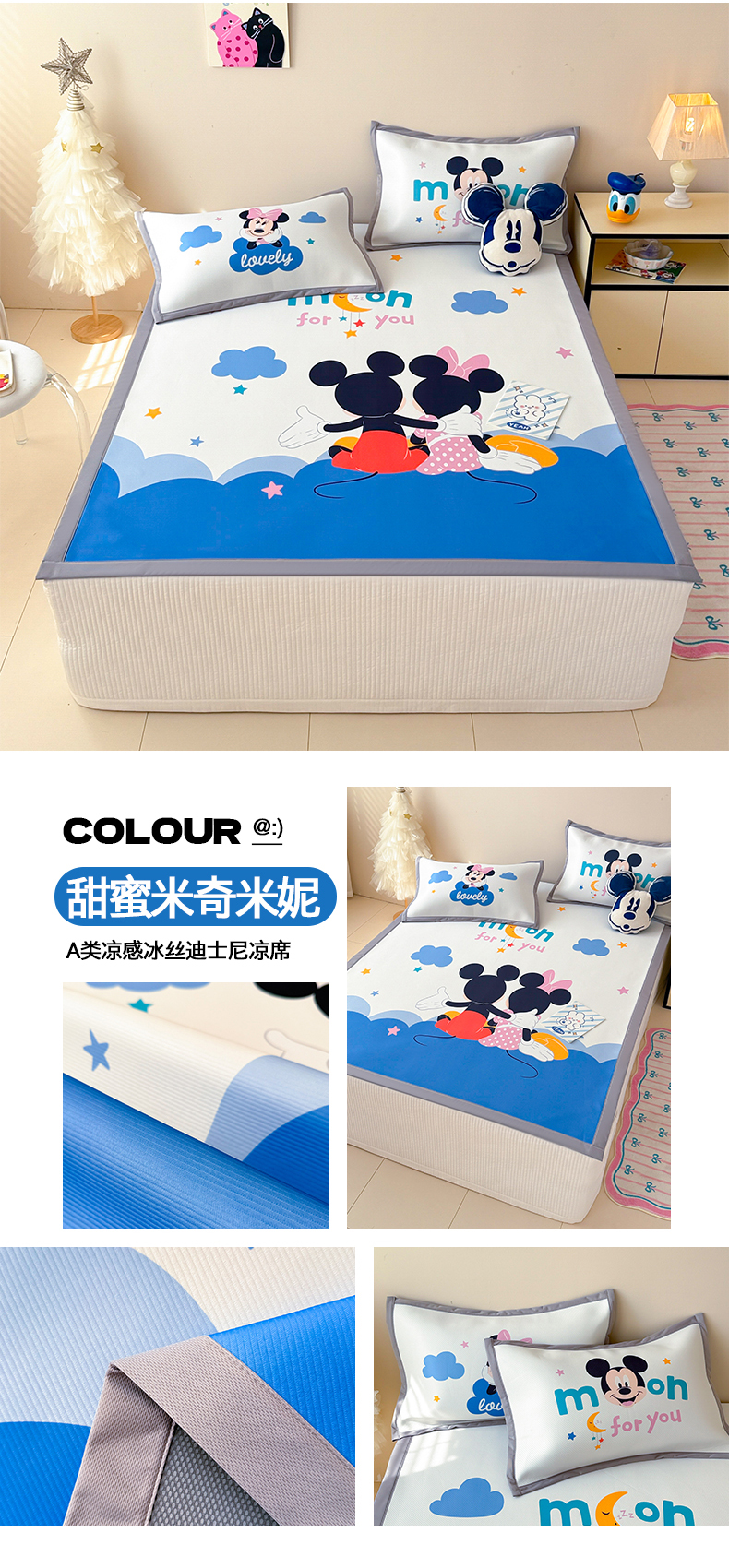 商品名称:典曼家纺 2025春夏新款A类凉感冰丝迪士尼凉席席子 甜蜜米奇米妮