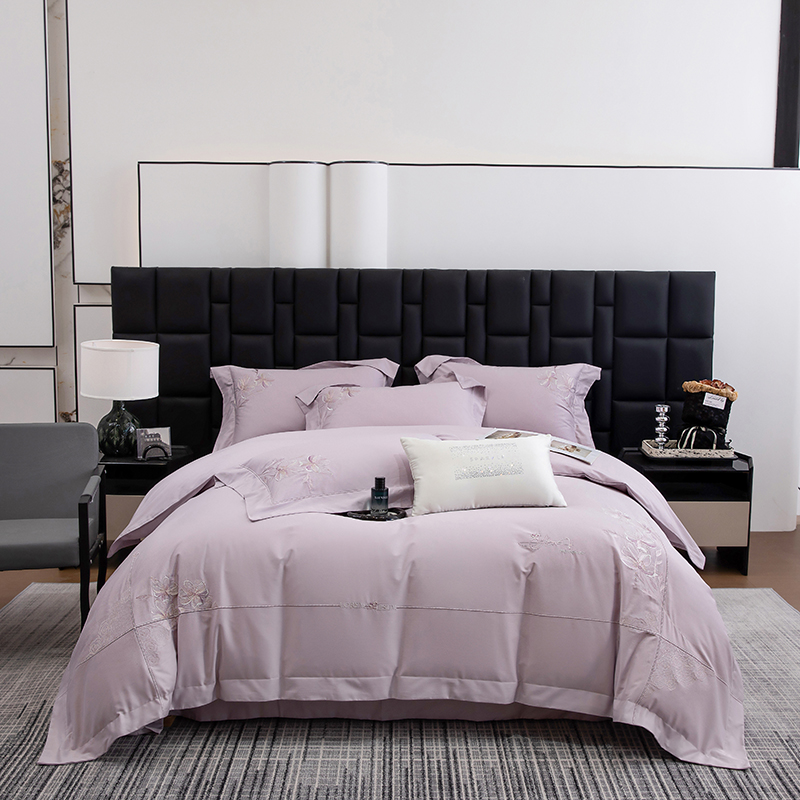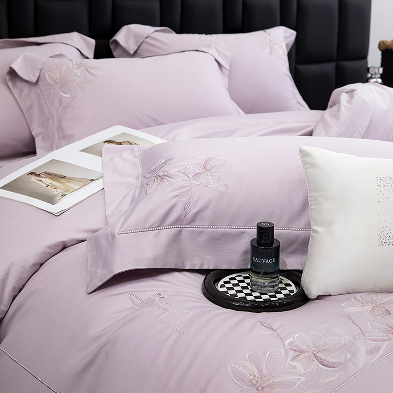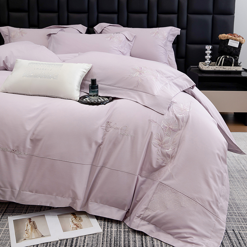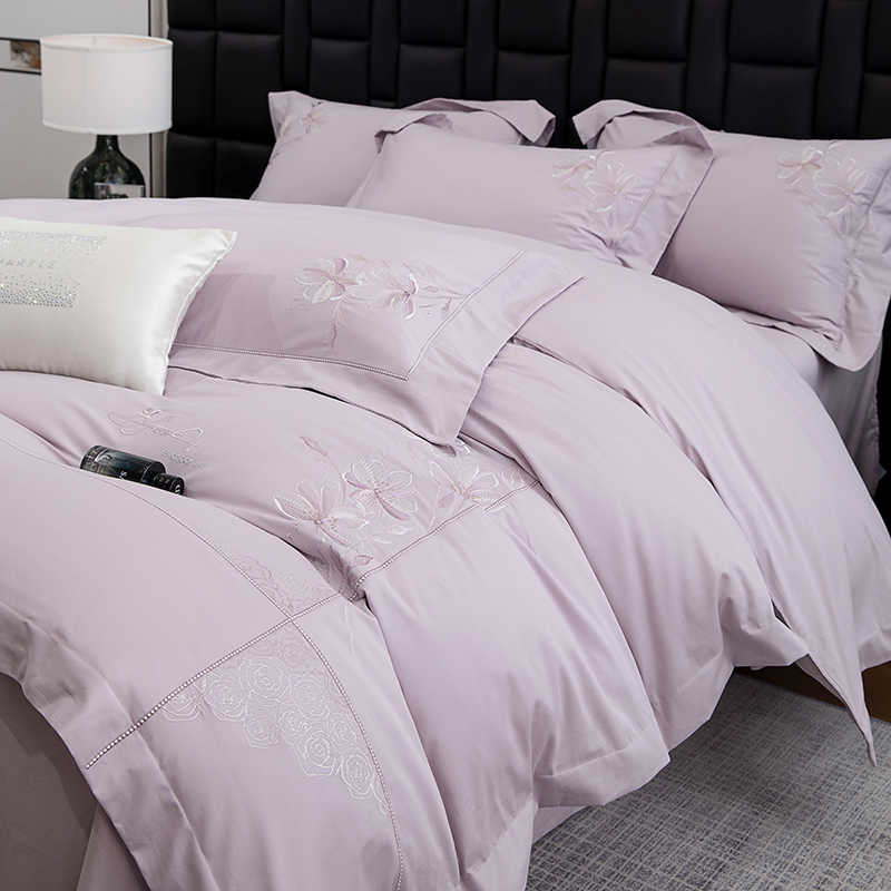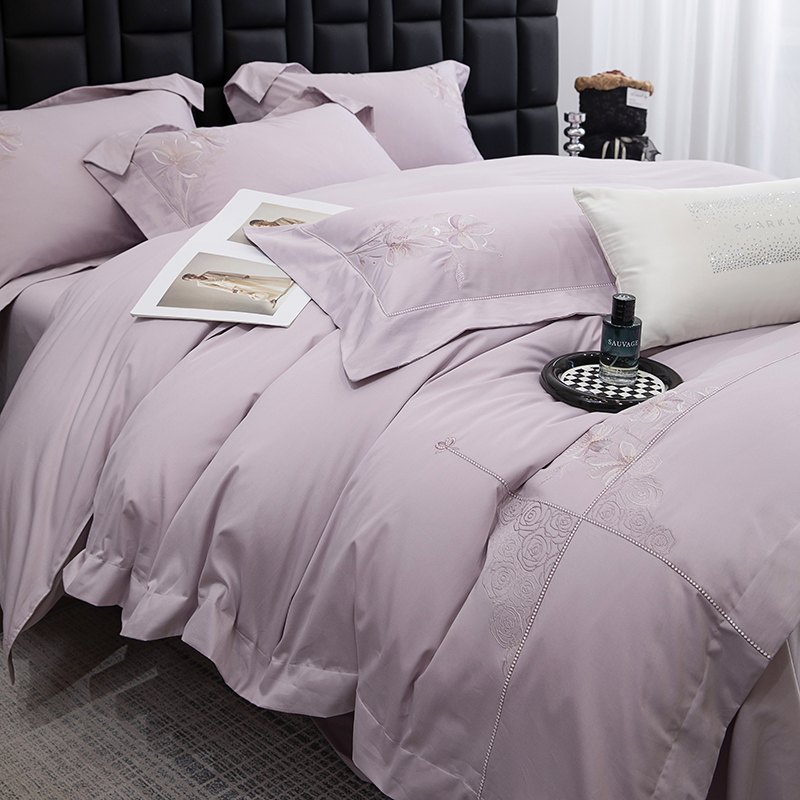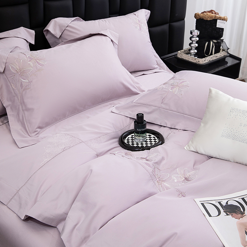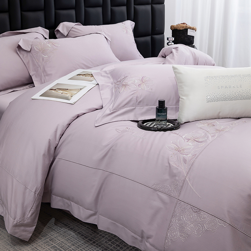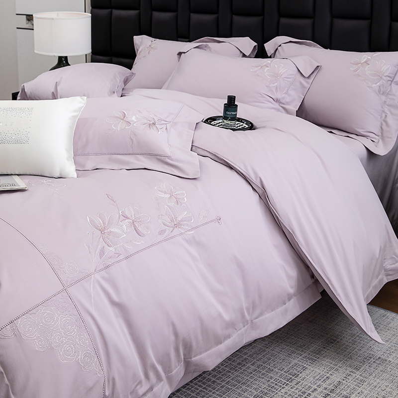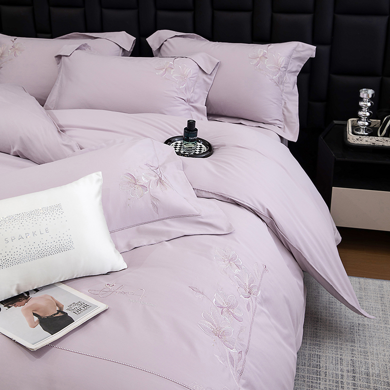 商品名称:张公子婚庆馆 2025新款120支新疆长绒棉居家绣花工艺系列四件套—花雾 风信紫