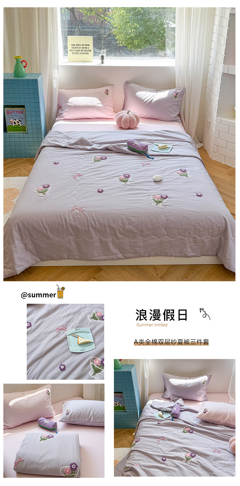 (总)TT.one 塔塔家居 2025新款全棉双层纱贝壳边夏被系列,半夏,草莓酱·蓝,晨露,春和日丽,春日派对,花序,茉香,南岛日记,趣味豆豆,睡睡熊,素予,小樱桃