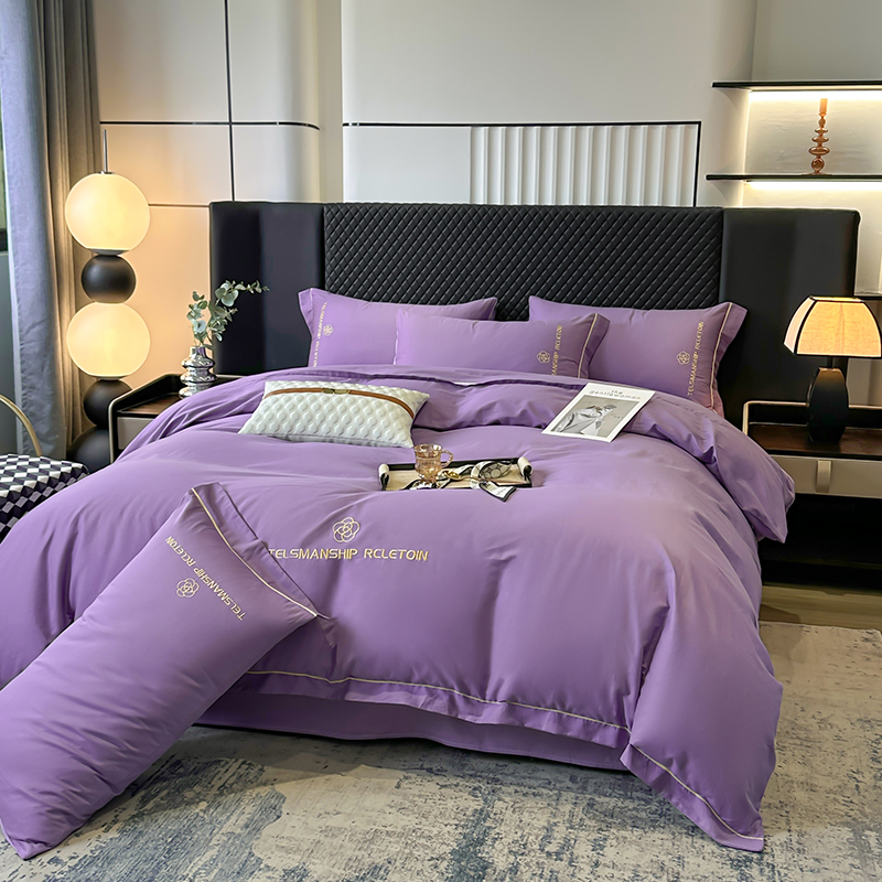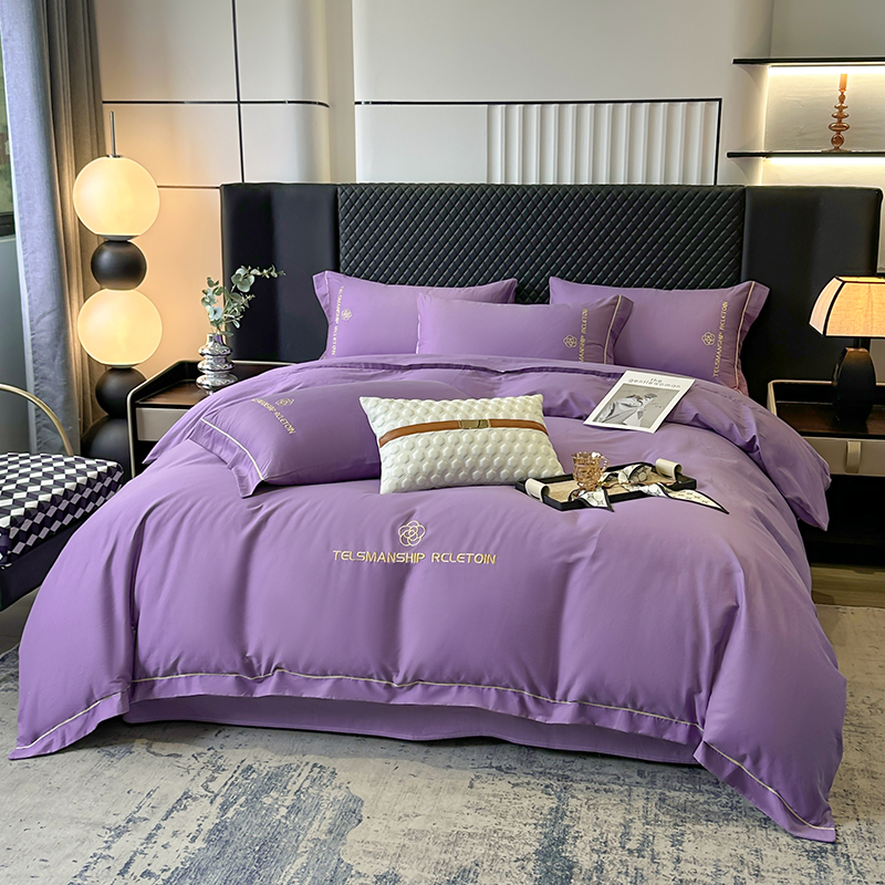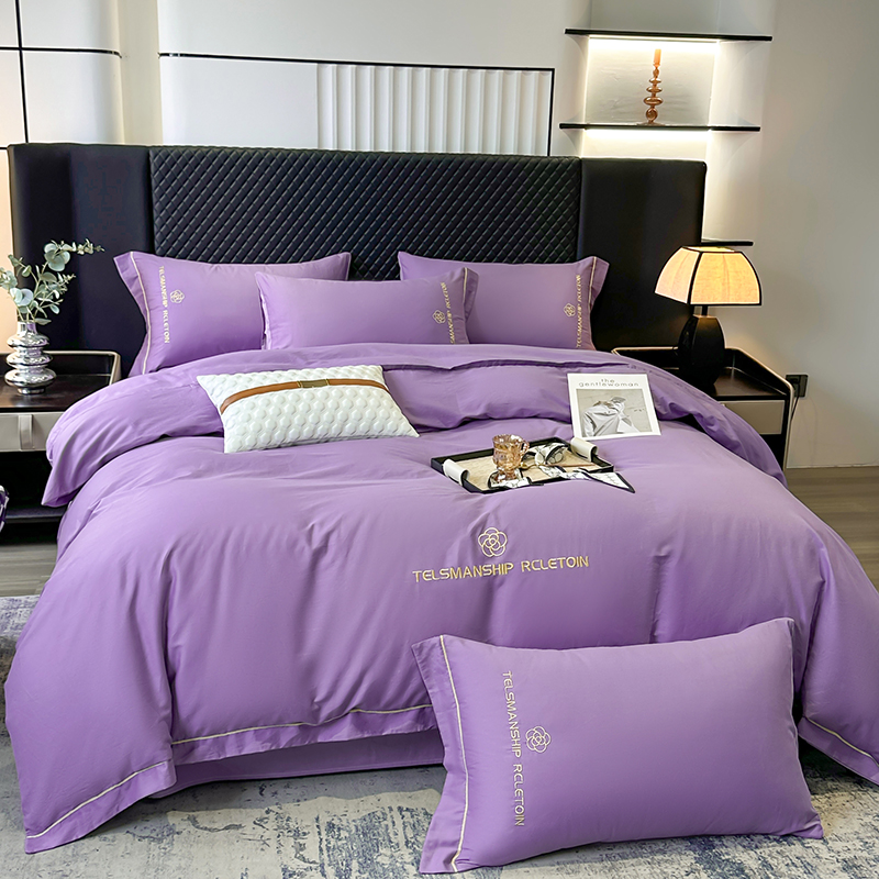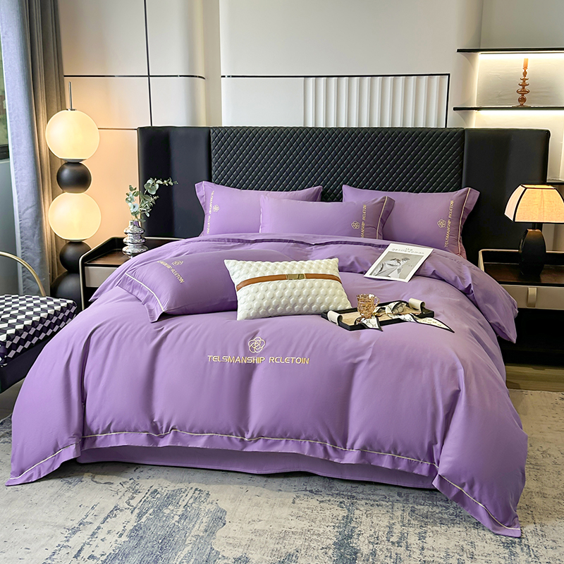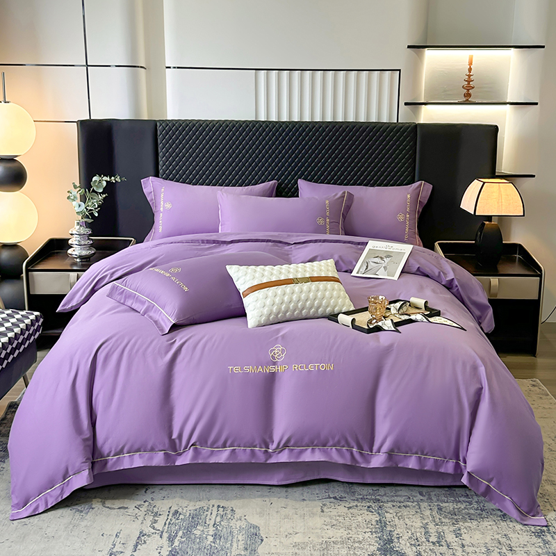 当前位置: 91家纺网 > 商品网购 > 床品套件 > 四件套 > 全棉普通四件套 > 宇彬家纺 2025直播新款13374全棉纯棉母婴级压线一字绣纯色刺绣四件套全棉纯棉贡缎新疆长绒字母款铂金系列 茶花-典雅紫