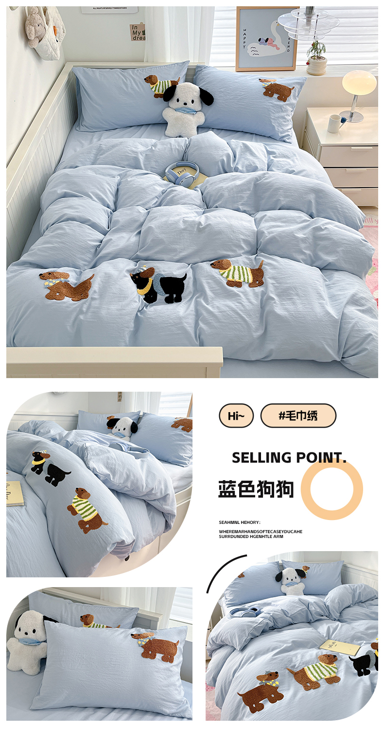 商品名称:港岛妹妹 2025新款毛巾绣 四件套 毛巾绣-蓝色狗狗