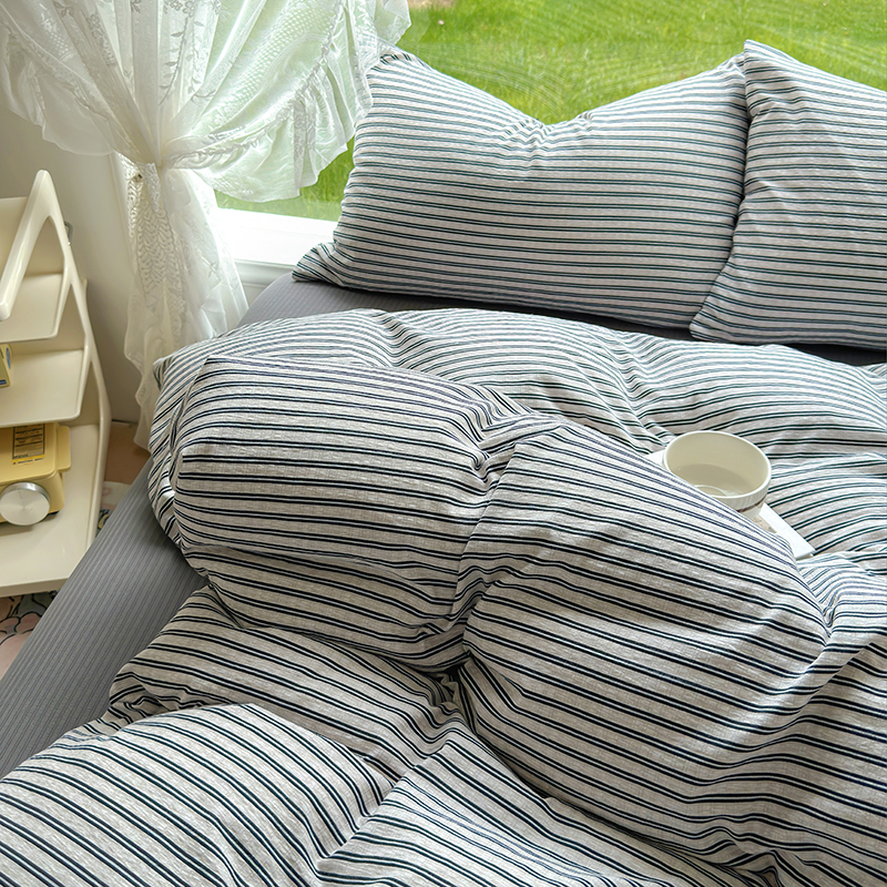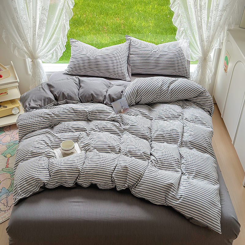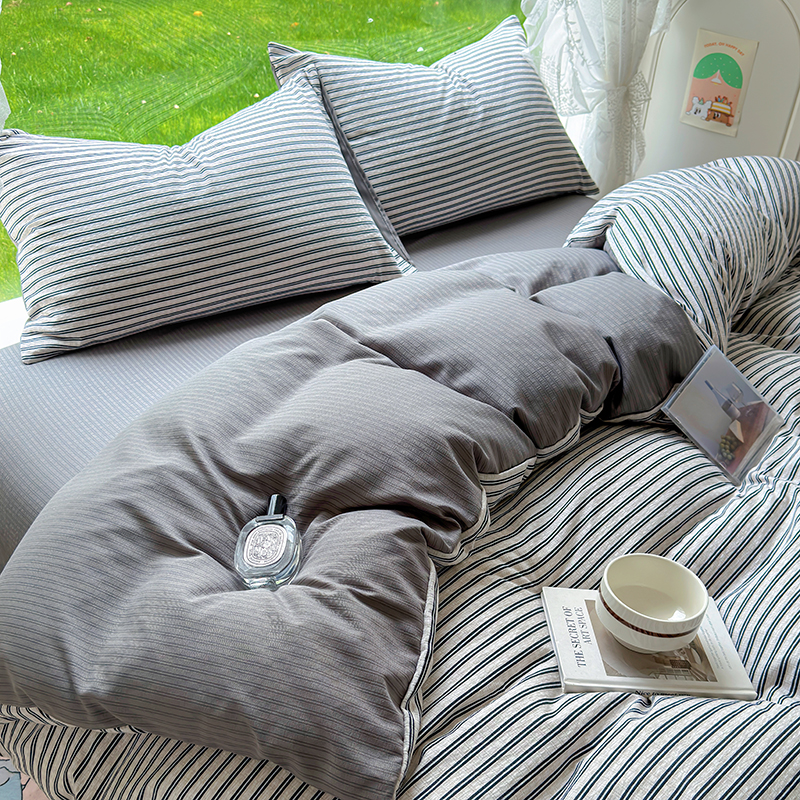 王朝国际 2026新款直播热款有氧提花有氧双层纱碎花单被套 黑条