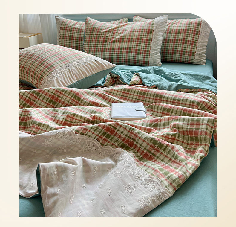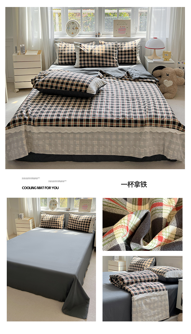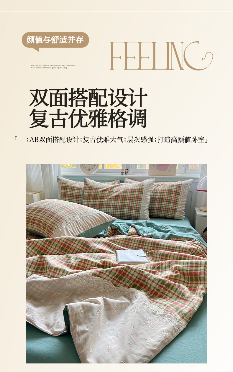 (总)妖妖家纺 2025新款加厚全棉花边牛奶绒格子四件套,醋莓浆果,海川之境,焦糖松果,轻氧绿松,银灰流光,鸢尾之约