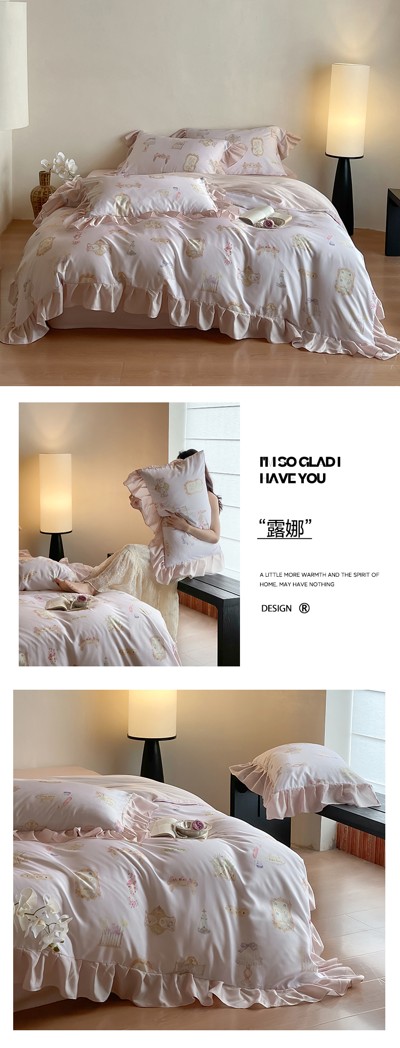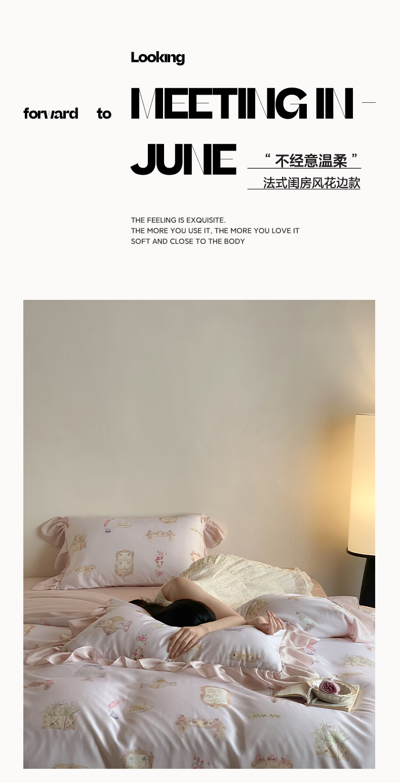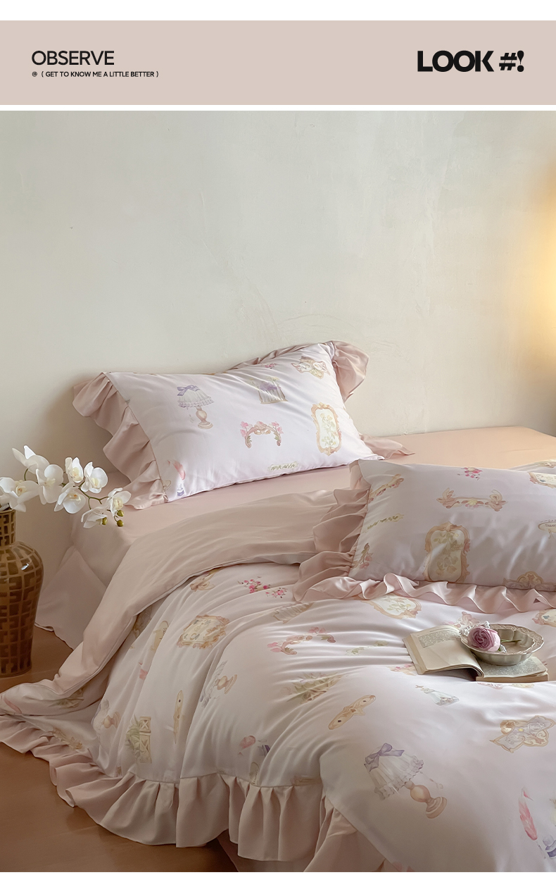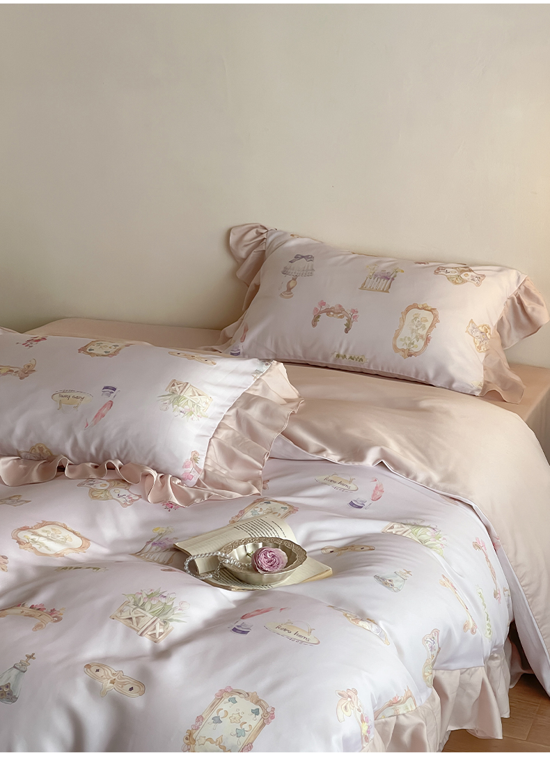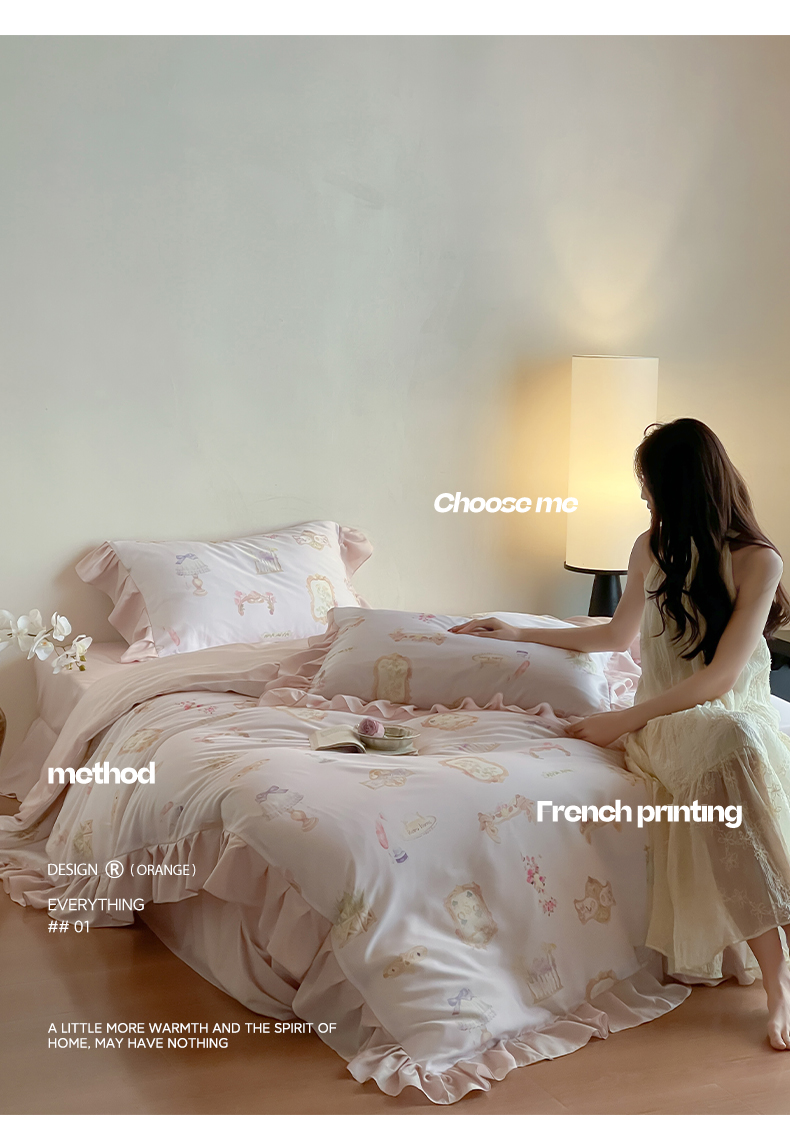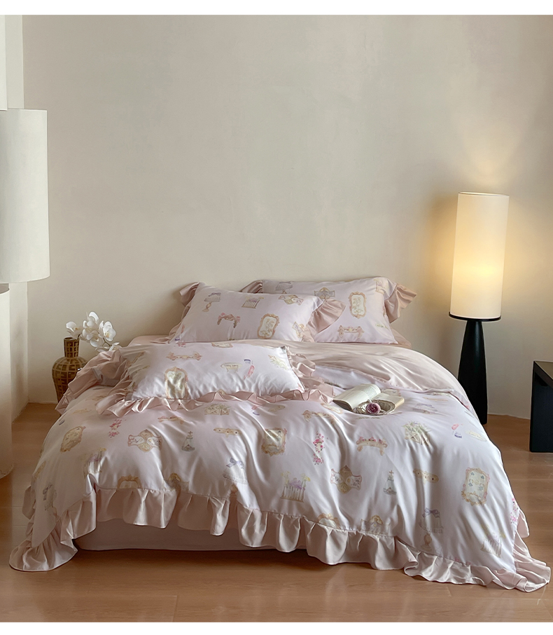(总)卡巴伦家纺 2025新款天丝四件套-法式闺房风雪纺花边款【不得低于(店铺折后/券后) 标准:249元】,赫本,清风玉露,如愿-粉,如愿-兰,奢香-粉,奢香-兰