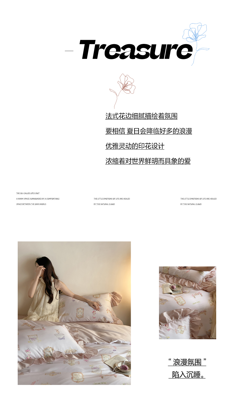 商品名称:卡巴伦家纺 2025新款天丝四件套-法式闺房风花边款【不得低于(店铺折后/券后)标准:249元】 露娜