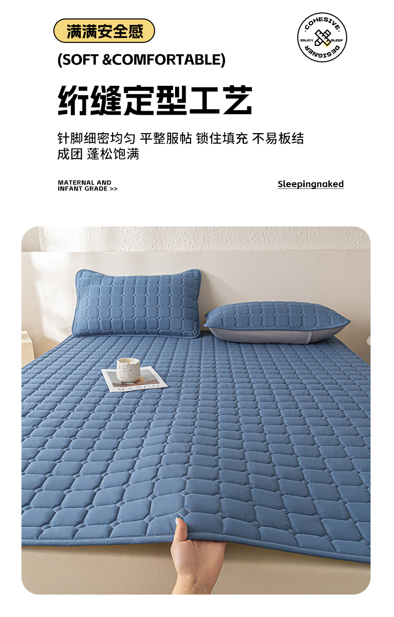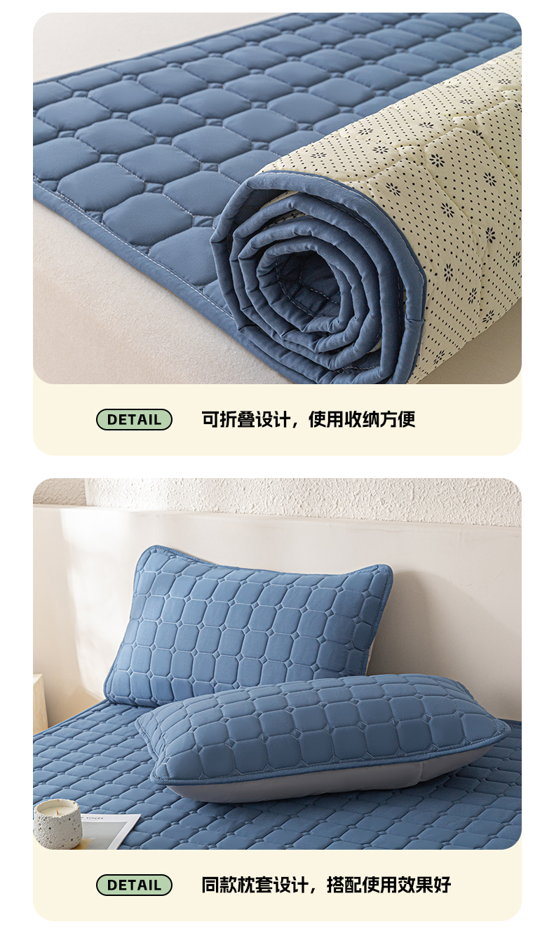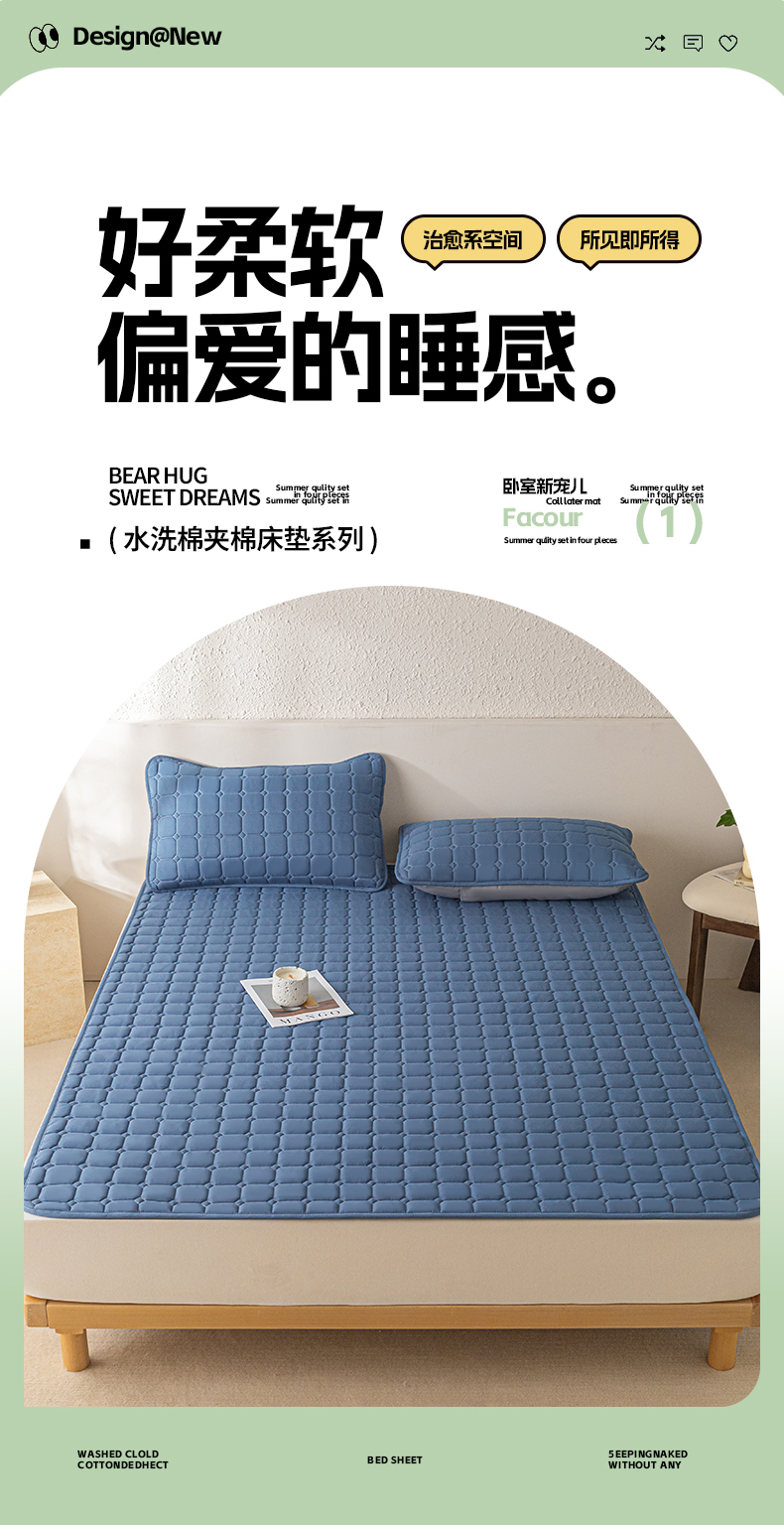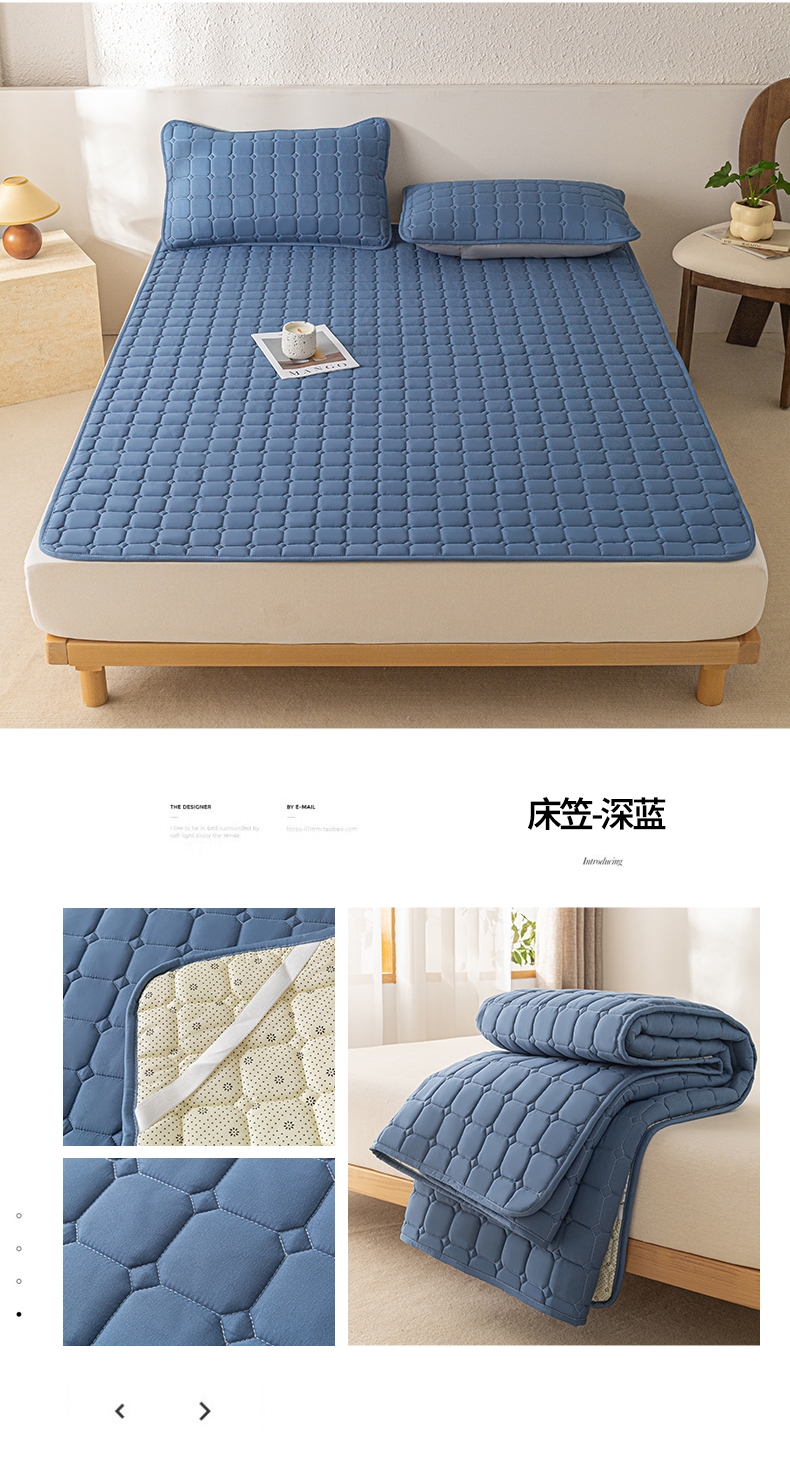 商品名称:欧邦 2025春夏新款四季款无印风纯色水洗棉床褥榻榻米床垫 床笠-深蓝